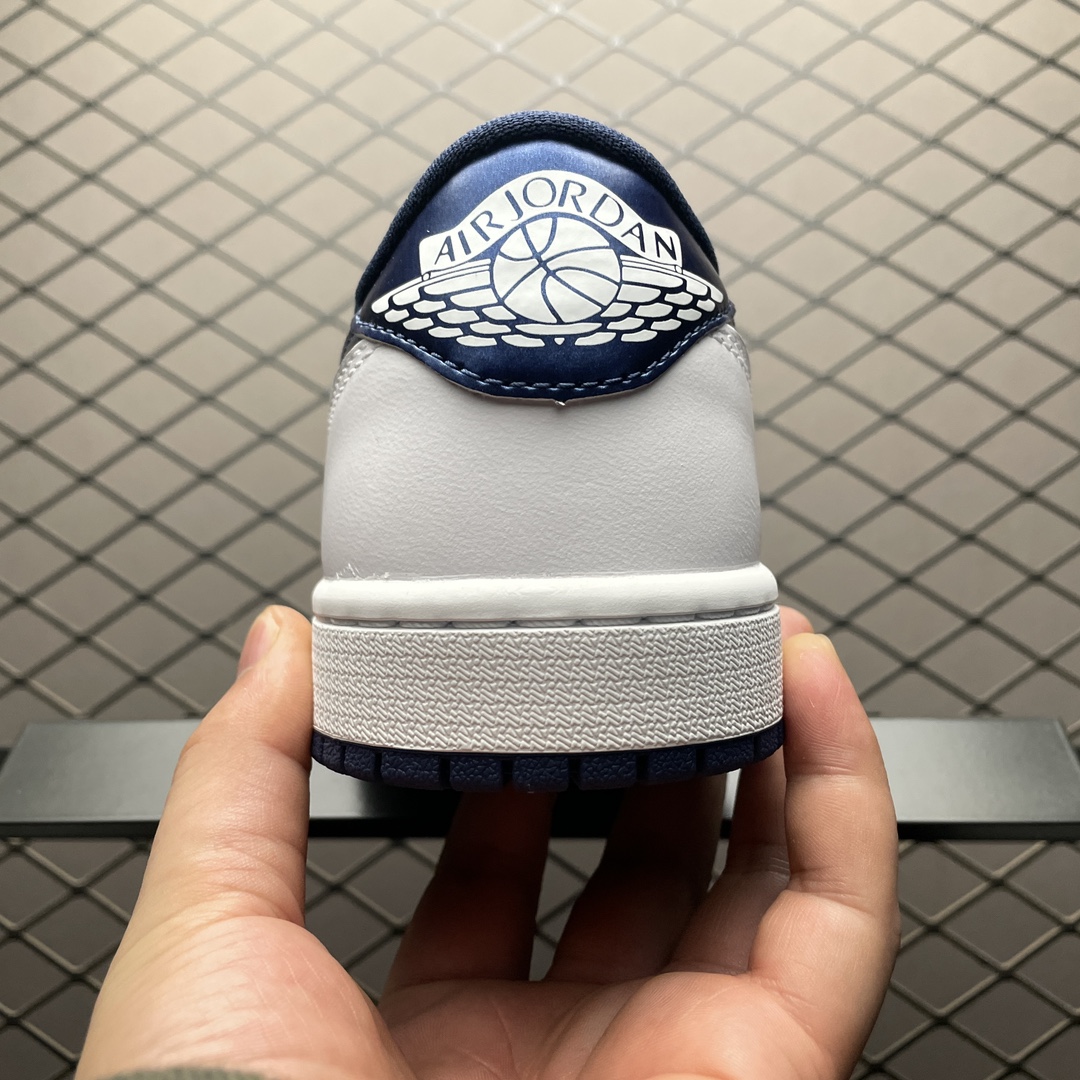Le logo « Air Jordan » est apposé sur le talon et le logo classique de Nike, le swoosh, se trouve sur les côtés de la chaussure. La languette et les lacets conservent un design épuré en blanc, maintenant l’accent sur les panneaux métalliques bleus. La semelle intermédiaire est également blanche et est équipée de la technologie Air pour un confort accru, tandis que la semelle extérieure est fabriquée en caoutchouc robuste pour une meilleure adhérence et durabilité.