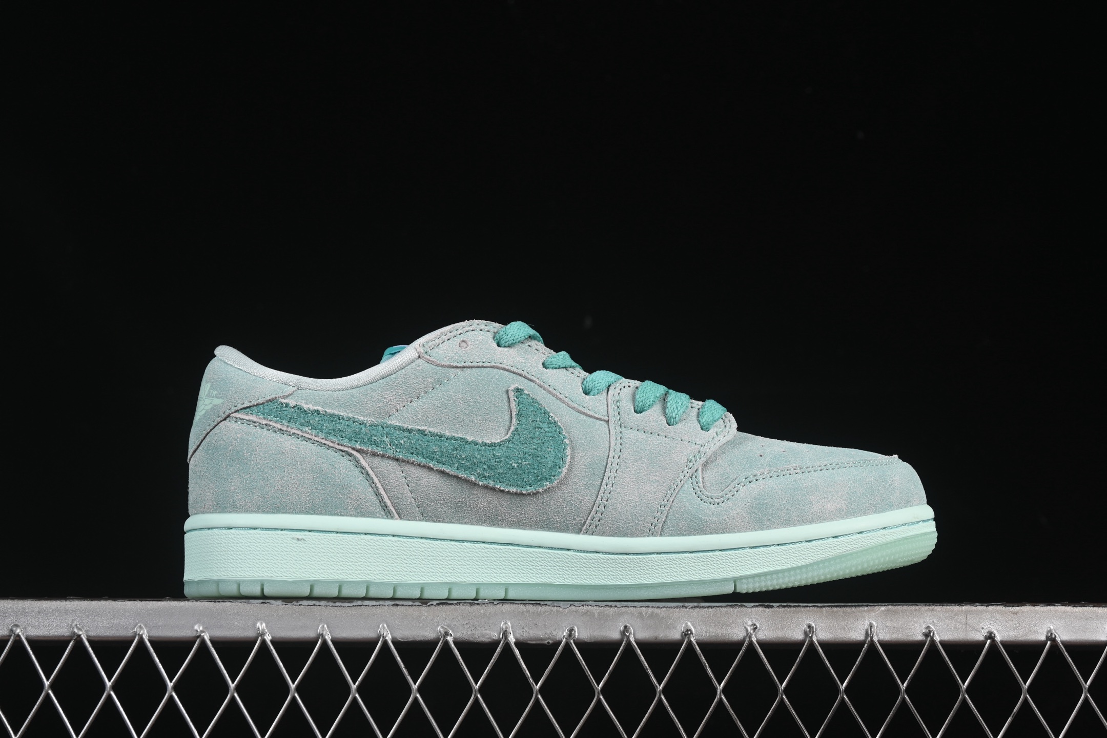 La Jordan 1 Retro Low OG Washed Teal HQ8111-300 est une sneaker qui incarne l’élégance et le style intemporel de la marque Jordan. Cette version basse de la célèbre Air Jordan 1 se distingue par sa palette de couleurs unique et rafraîchissante. La teinte « Washed Teal » domine l’empeigne, offrant une nuance de bleu-vert subtile et sophistiquée qui attire immédiatement le regard.