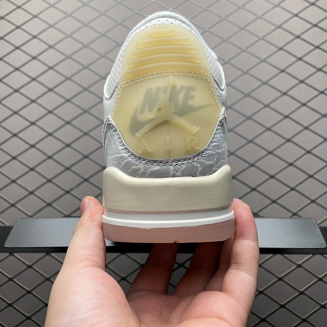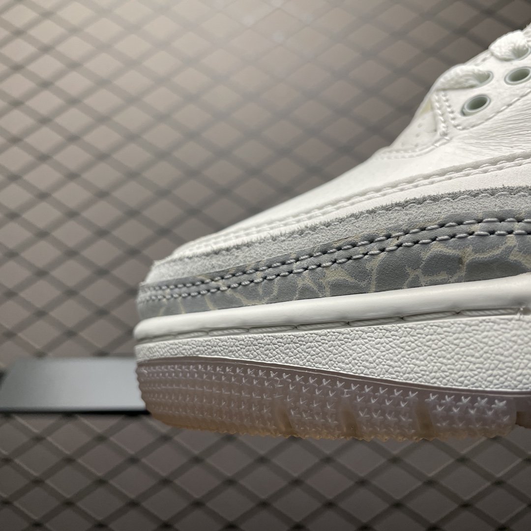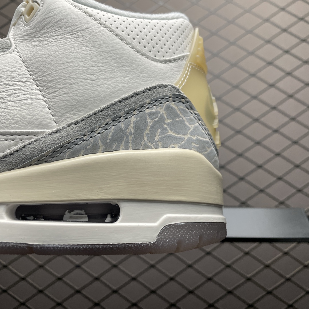 Les détails emblématiques de la Jordan 3, tels que le motif éléphant imprimé sur certaines parties de la chaussure, ajoutent une touche d’originalité et restent fidèles à l’esthétique traditionnelle de la Jordan 3. Les perforations stratégiquement placées améliorent la respirabilité, tandis que le système de laçage assure un ajustement sécurisé et personnalisable.