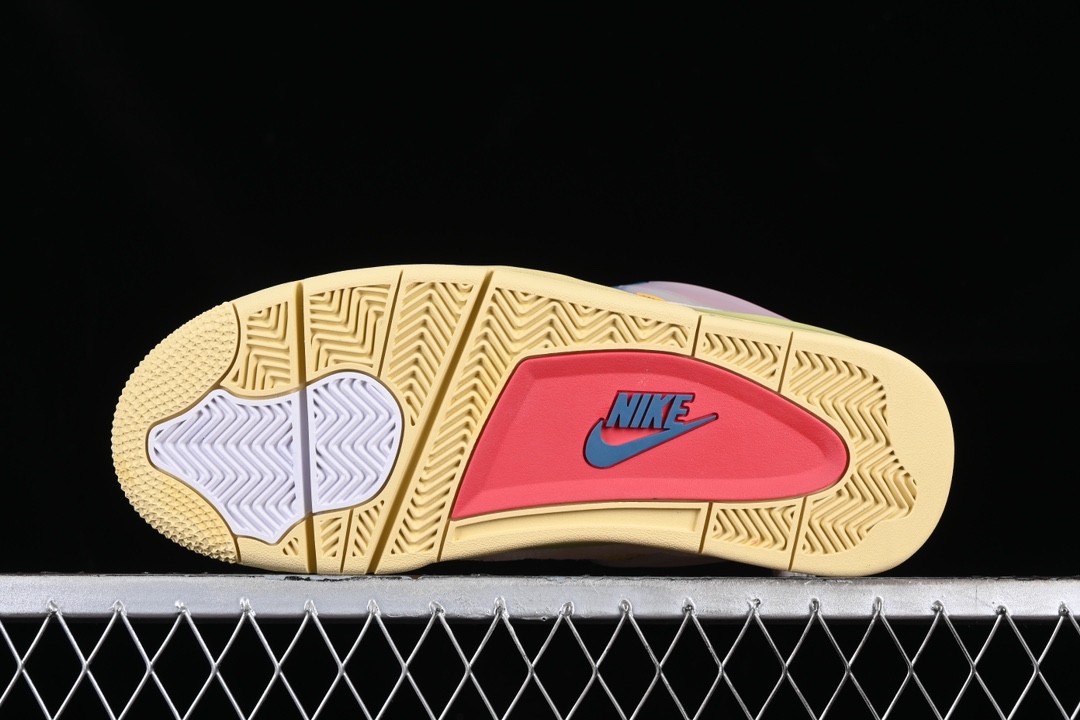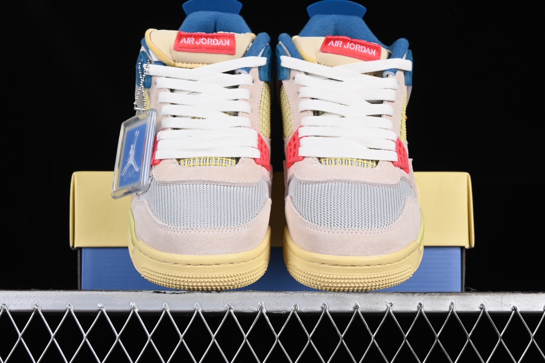 La Jordan 4 Retro Union Guava Ice DC9533-800 est une paire de baskets de la marque Jordan. Elle présente une combinaison de couleurs unique, avec une base principalement de couleur « Guava Ice » (rose pâle) et des accents de couleur « Light Bone » (beige clair) et « Brigade Blue » (bleu marine). La tige de la chaussure est en cuir de haute qualité, offrant durabilité et confort. On retrouve également des détails en daim sur le talon et les côtés pour ajouter une touche de texture. La semelle intermédiaire est dotée de la technologie Air-Sole pour un amorti optimal, tandis que la semelle extérieure en caoutchouc offre une adhérence supérieure. Ces baskets sont à la fois élégantes et fonctionnelles, idéales pour les amateurs de sneakers à la recherche d’un modèle original et de qualité.