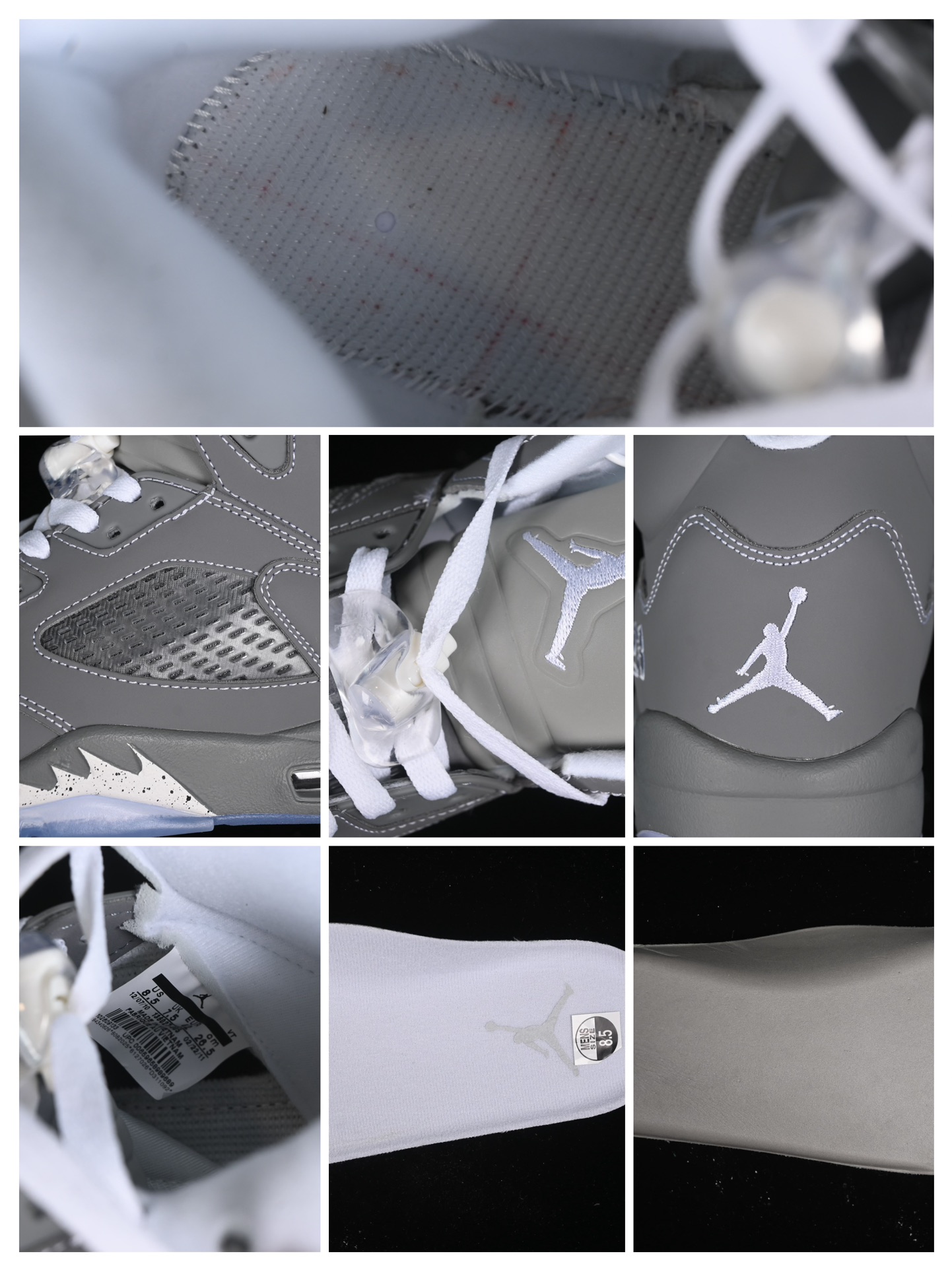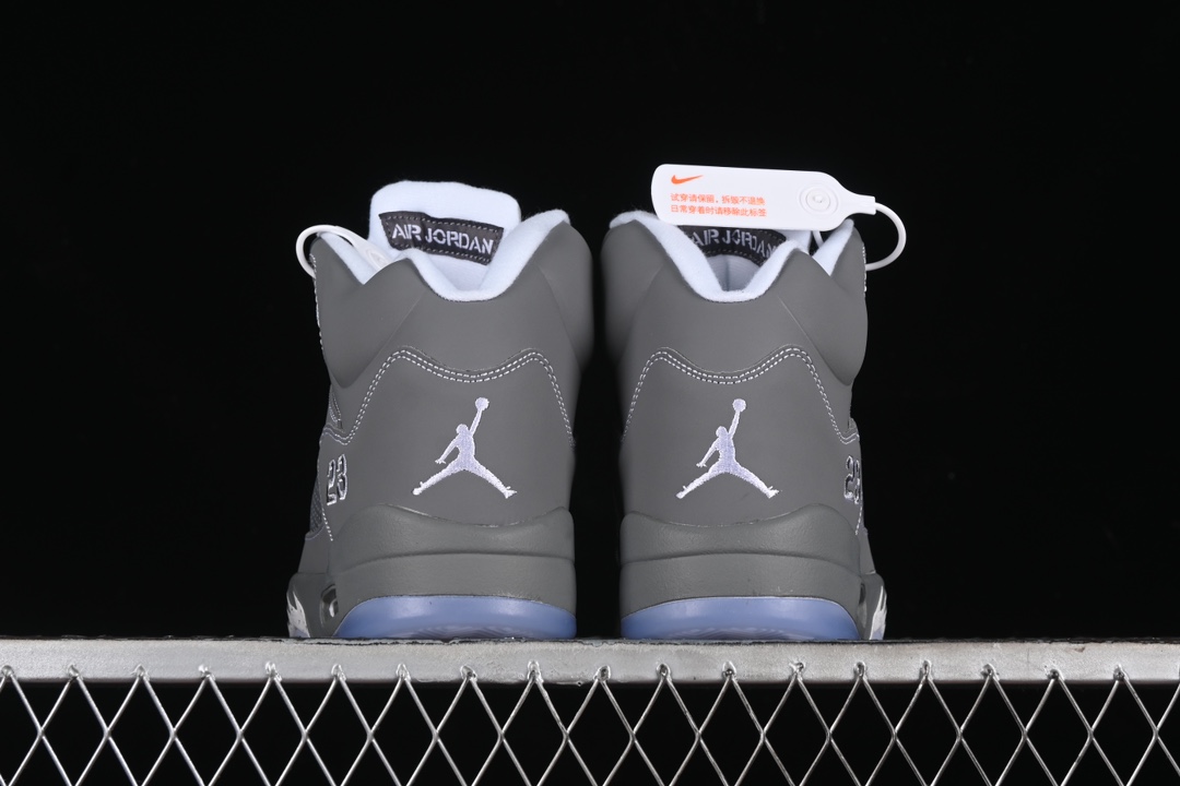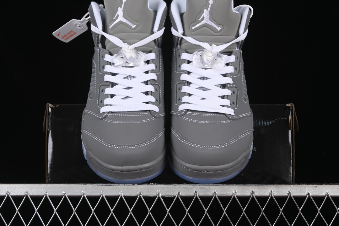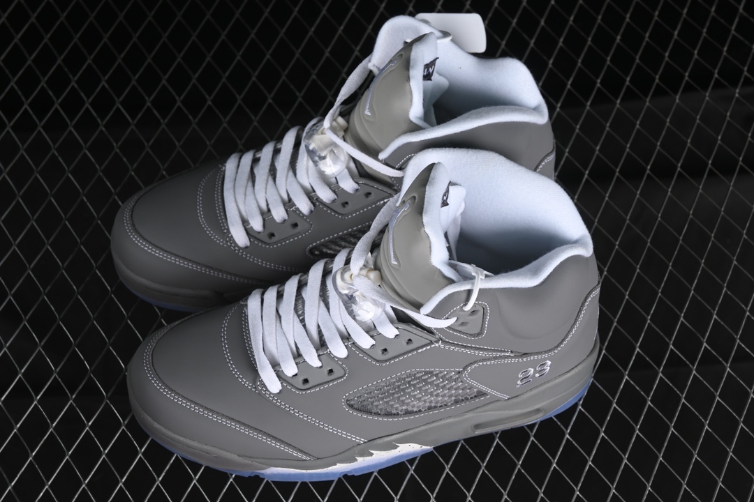 Les caractéristiques emblématiques de la Jordan 5, telles que le filet en mesh translucide sur les panneaux latéraux et la languette réfléchissante argentée, sont présentes, renforçant l’identité visuelle unique de ce modèle. La semelle intermédiaire est dotée d’un amorti Air visible au talon, garantissant un confort optimal et une performance supérieure. Les accents de couleur blanche et noire sur la semelle extérieure en caoutchouc complètent le design, offrant à la fois traction et durabilité.