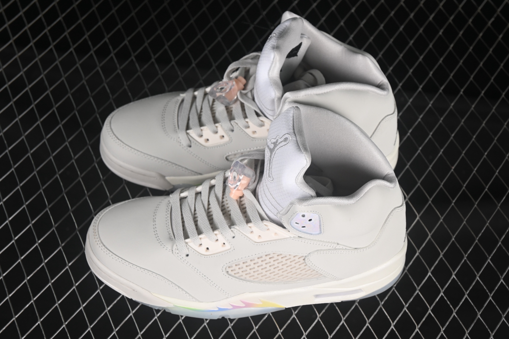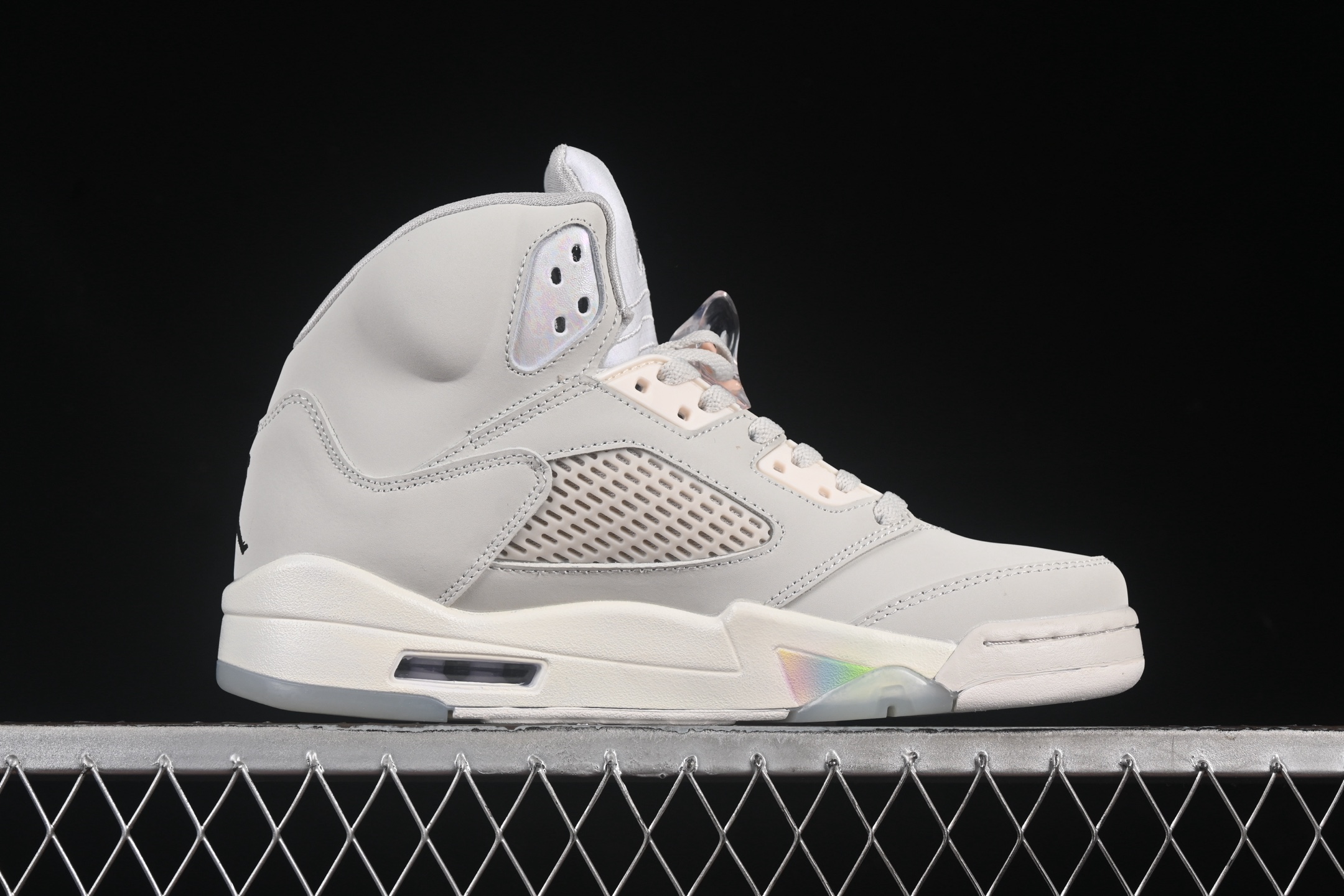 Les éléments emblématiques de la Jordan 5, tels que le filet latéral translucide et la languette réfléchissante, sont présents, rehaussant le design tout en conservant l’héritage de la marque. La semelle intermédiaire est équipée de l’unité Air-Sole, assurant un amorti optimal et un confort supérieur lors de la marche ou des activités sportives.
