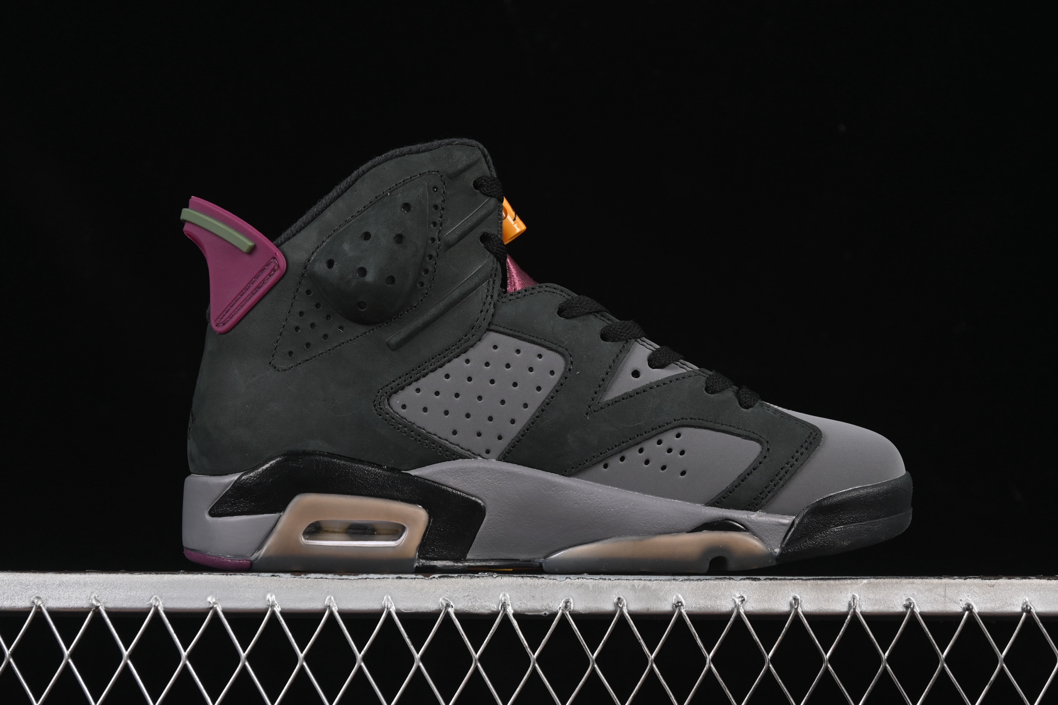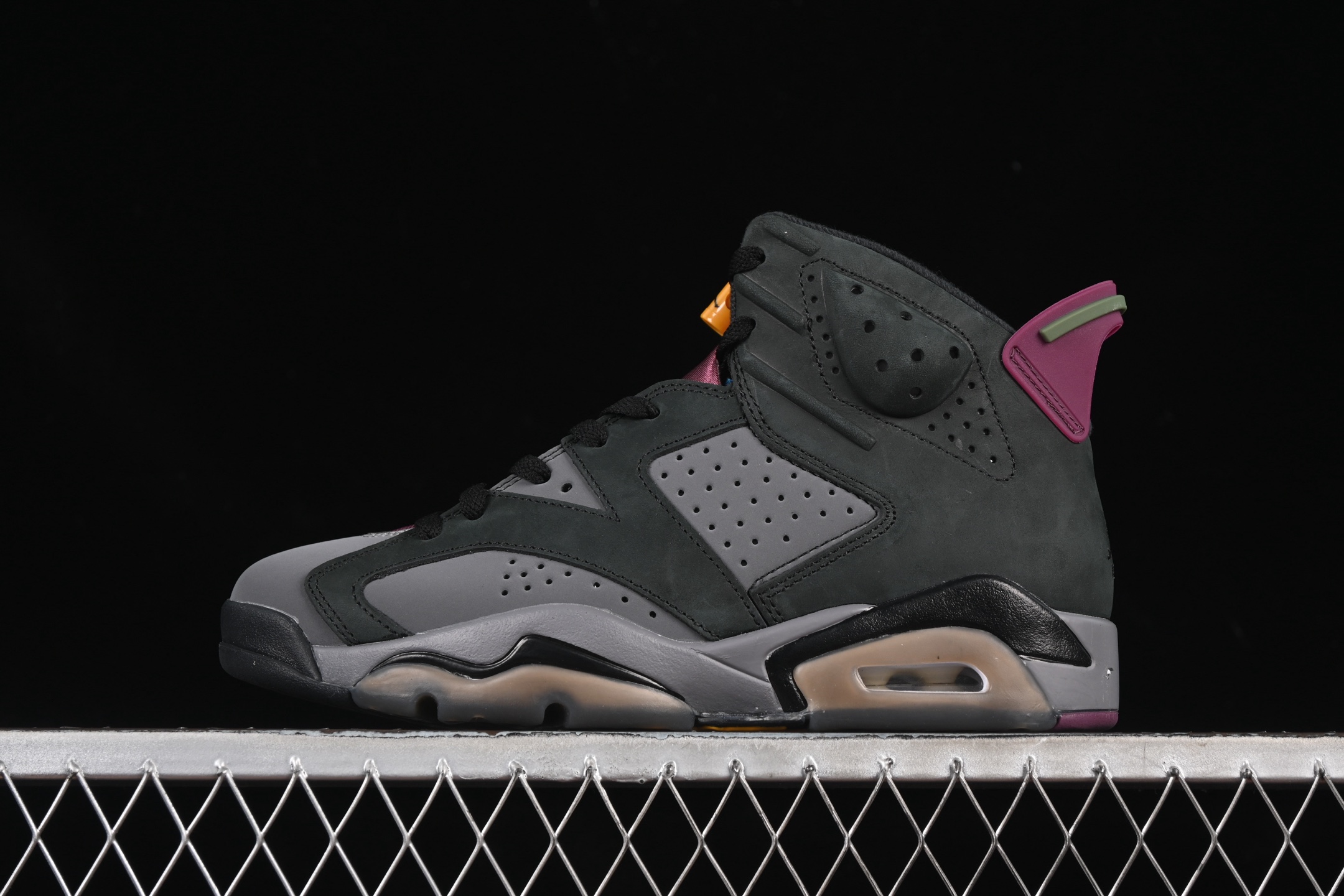La Jordan 6 Retro Bordeaux est dotée d’une semelle intermédiaire en polyuréthane avec une unité Air visible au talon, offrant un amorti supérieur et un confort optimal pour un usage quotidien ou des performances sportives. La semelle extérieure en caoutchouc assure une adhérence et une durabilité exceptionnelles sur diverses surfaces. Les perforations stratégiquement placées sur la tige garantissent une respirabilité accrue, tandis que le système de laçage unique assure un ajustement sécurisé et personnalisé.