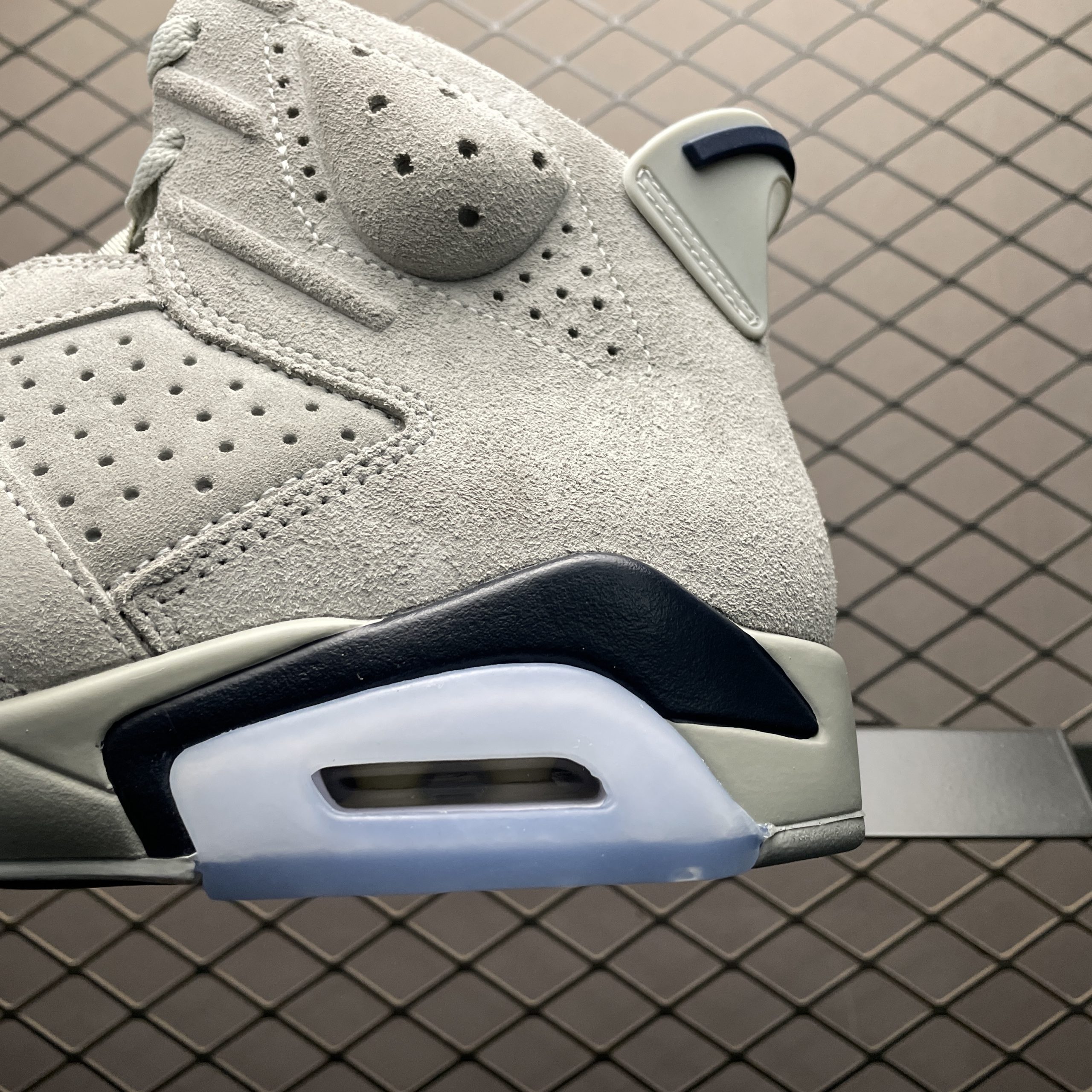 Les Jordan 6 Retro Georgetown CT8529-012 se distinguent également par des éléments de design iconiques, tels que le spoiler arrière en forme de boucle et le système de laçage unique avec un verrouillage en plastique, qui ajoutent à la fois fonctionnalité et style. Le logo Jumpman, emblème de la marque, est subtilement apposé sur la languette et le talon, affirmant l’authenticité et l’héritage de la chaussure.