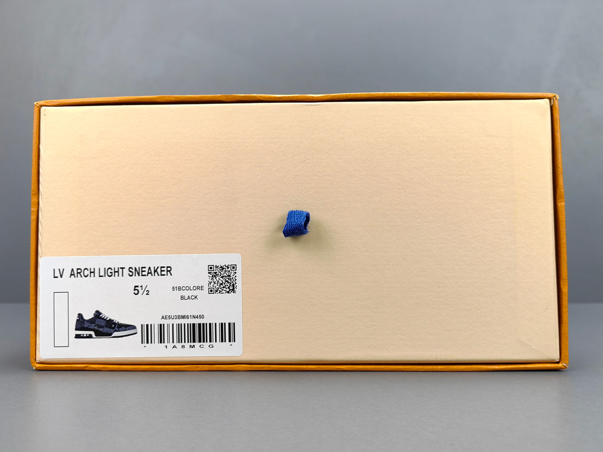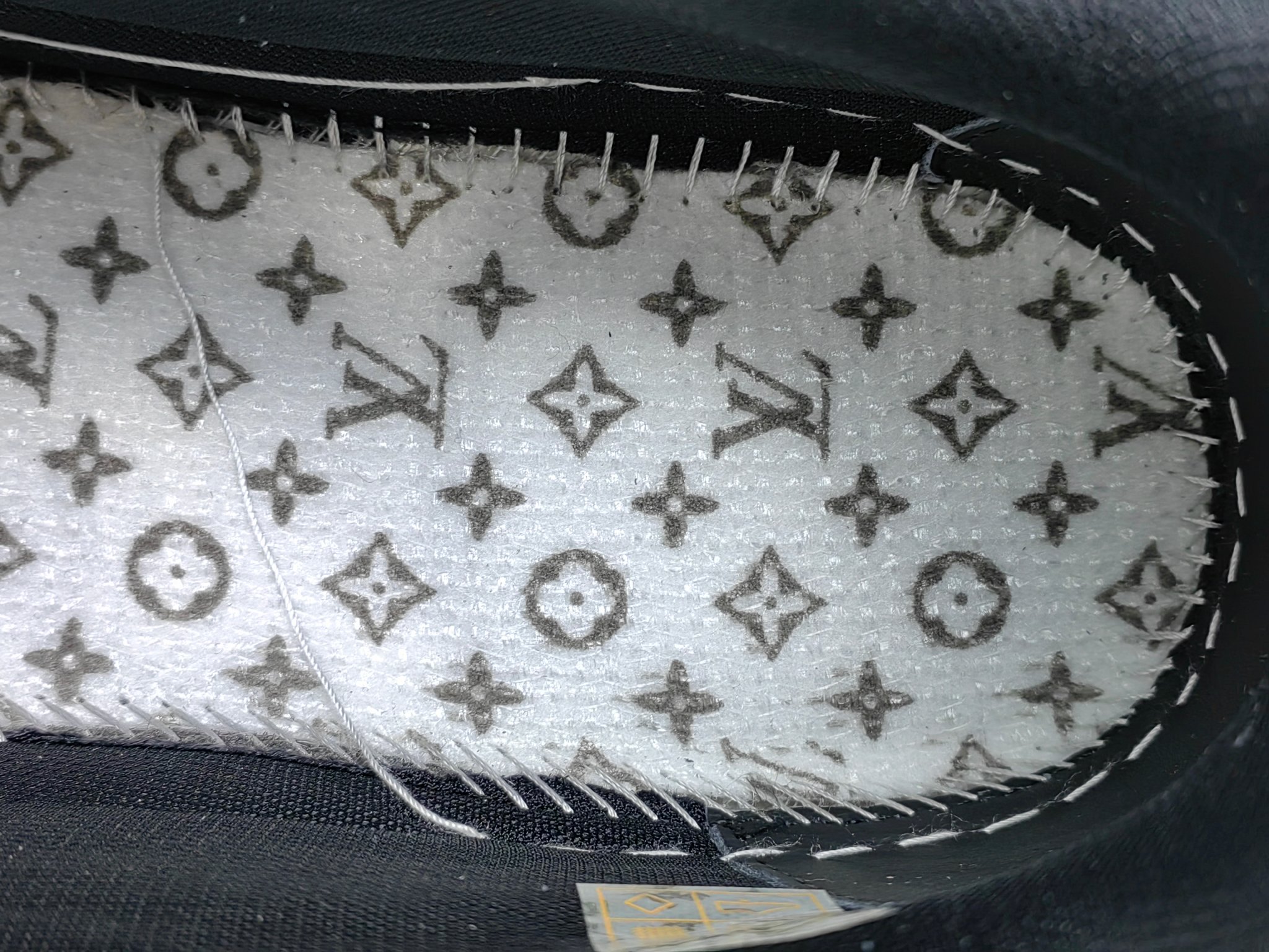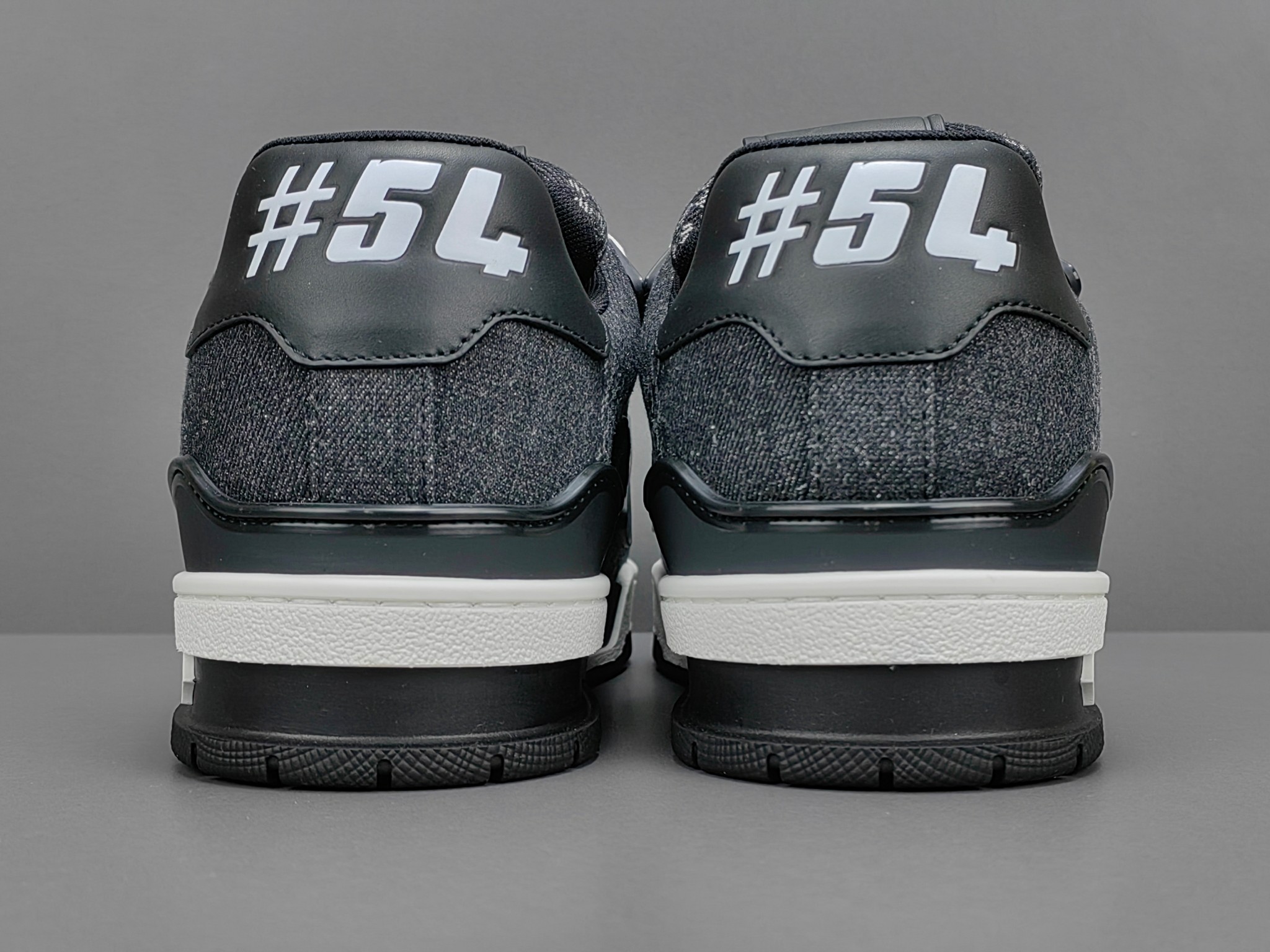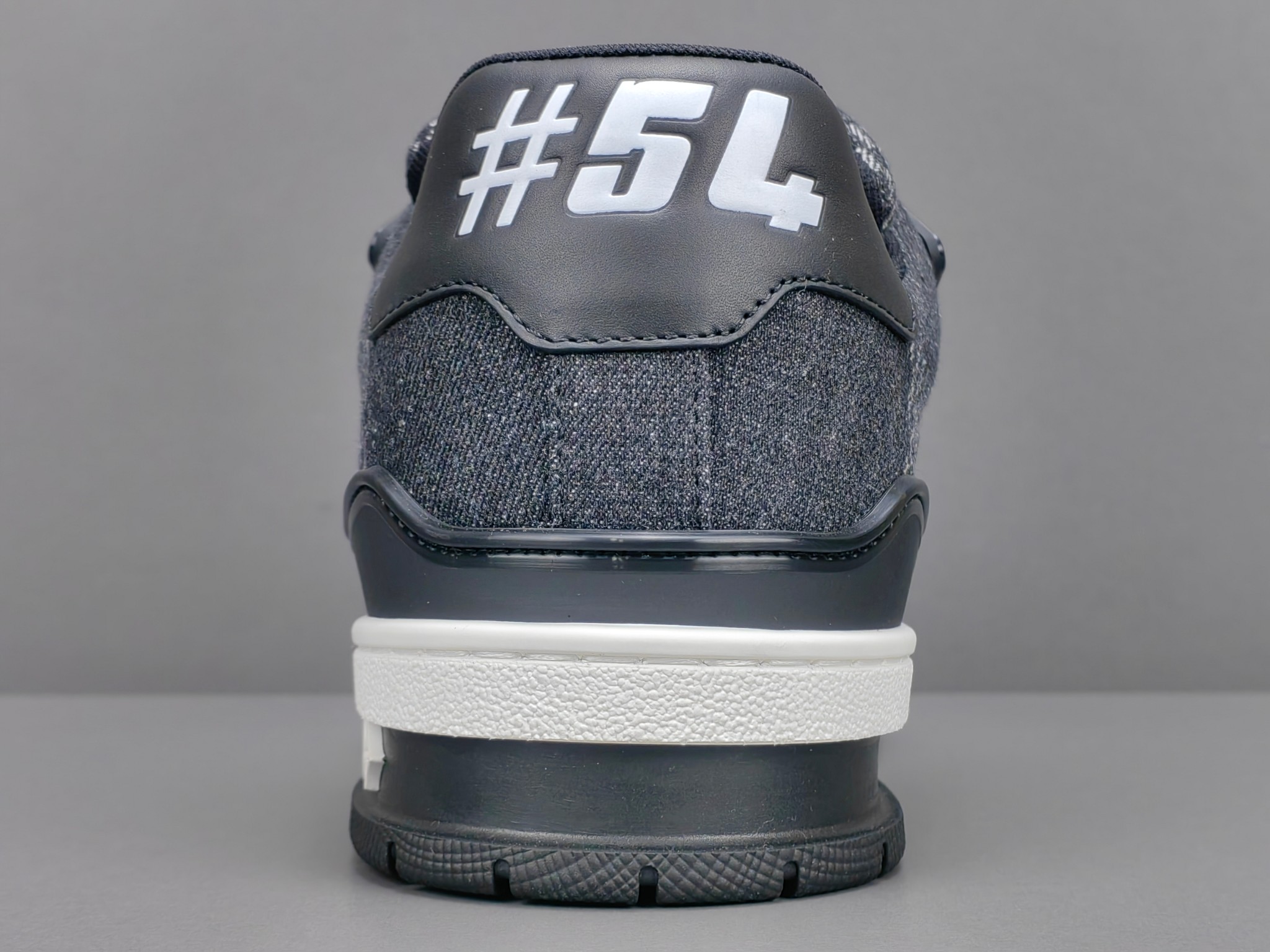 La tige de la sneaker est confectionnée en denim Damier 3D noir, un motif emblématique de Louis Vuitton revisité avec une texture tridimensionnelle qui apporte profondeur et caractère à la chaussure. Ce matériau innovant est non seulement esthétique, mais aussi résistant, garantissant une durabilité exceptionnelle.