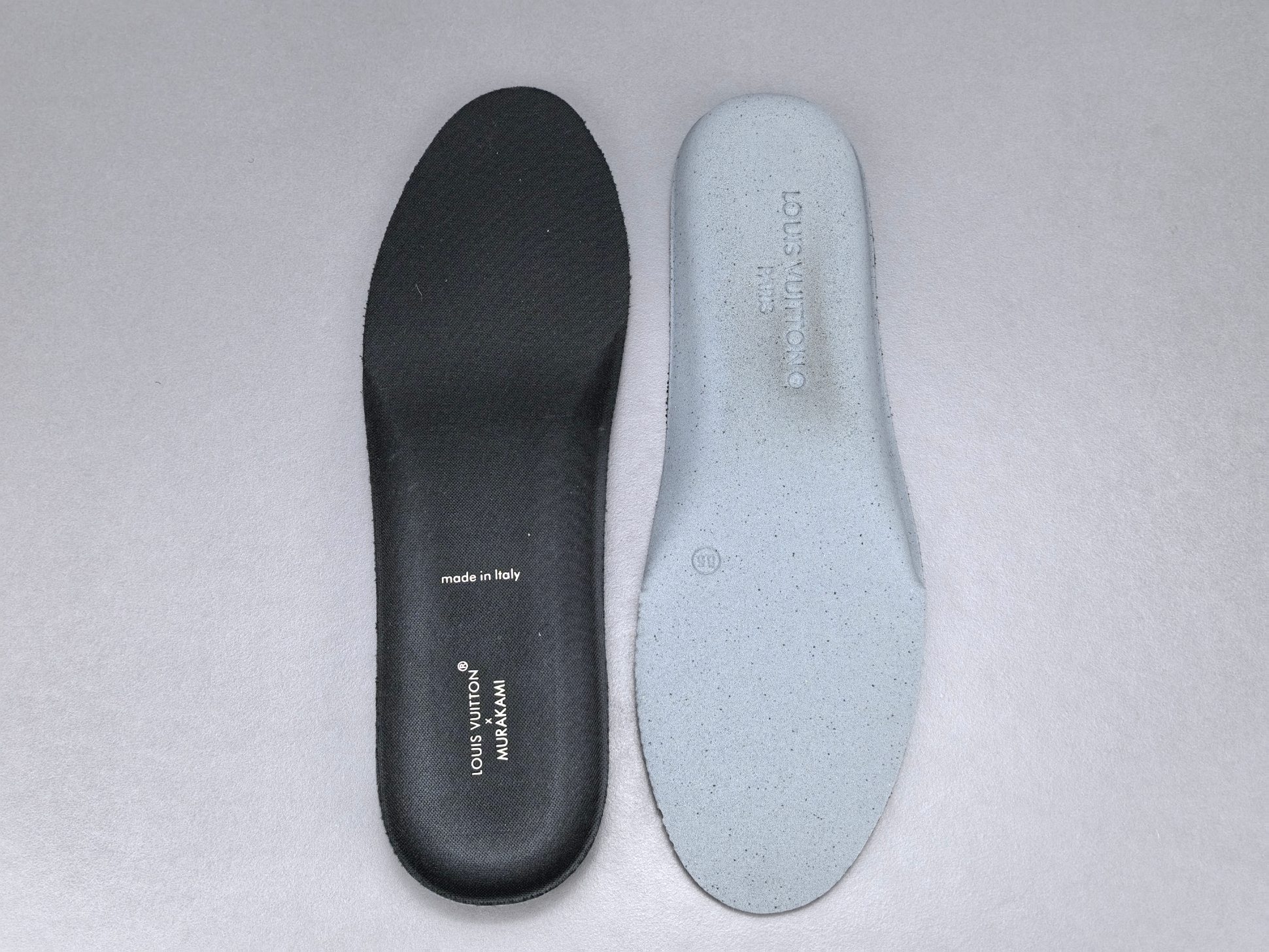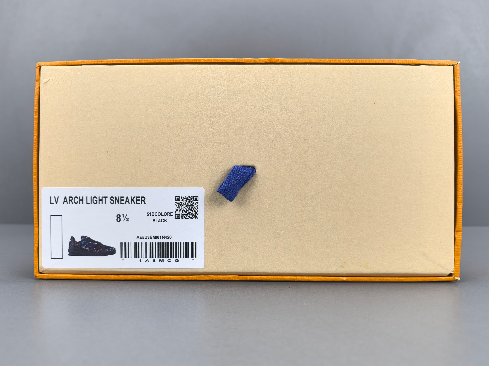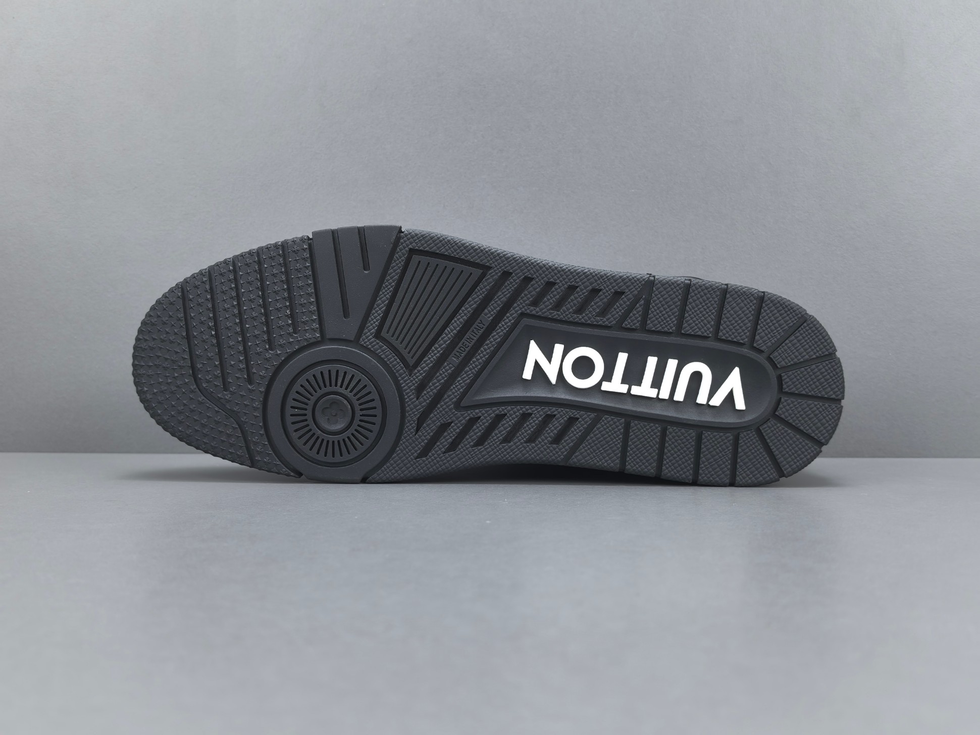 Les détails de finition incluent le logo LV emblématique sur le côté et la languette, ainsi que des lacets noirs qui complètent l’esthétique épurée de la chaussure. Chaque paire est numérotée, soulignant son caractère exclusif et sa valeur en tant que pièce de collection.