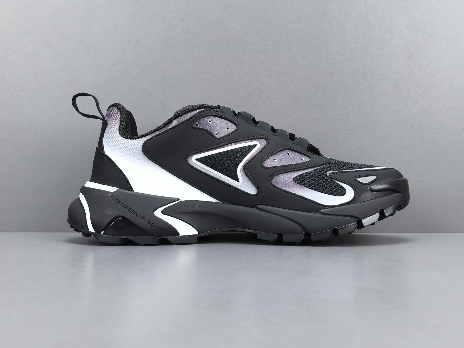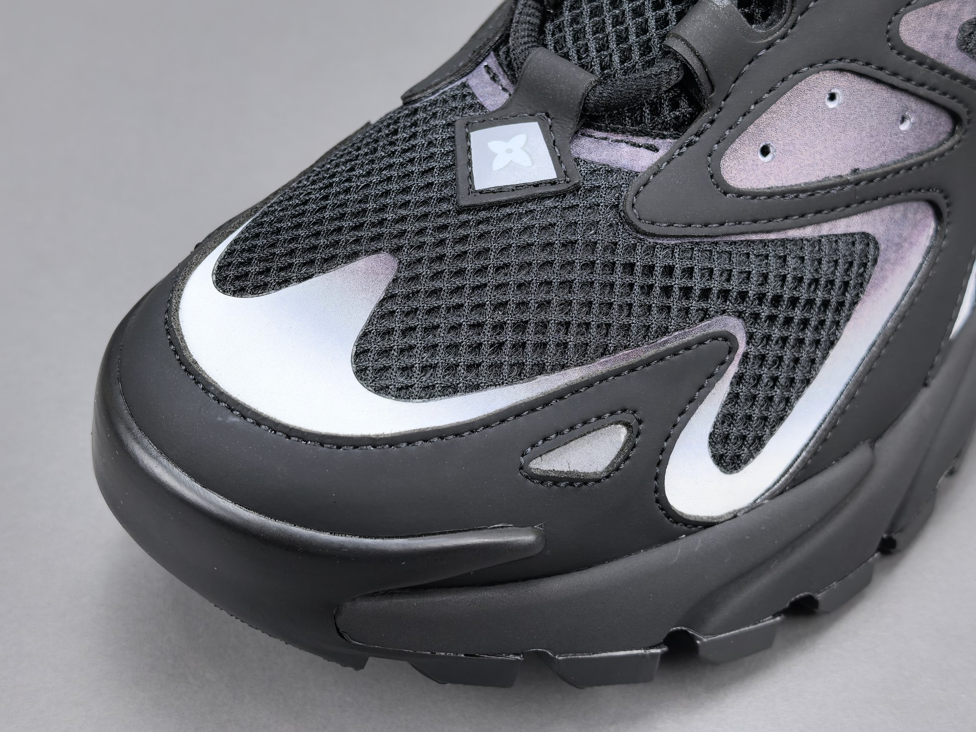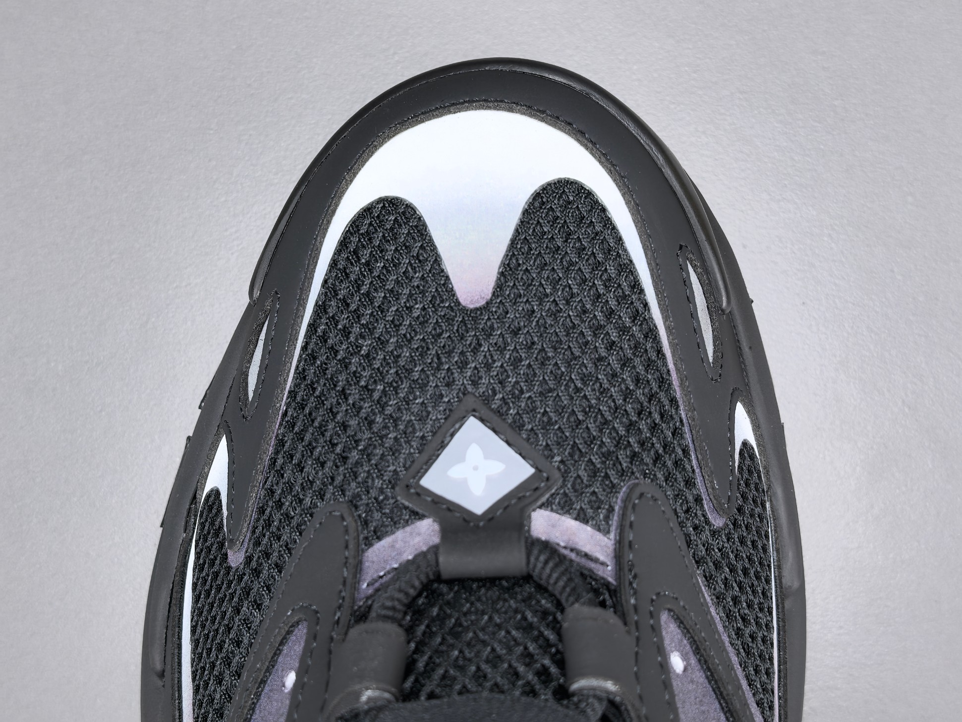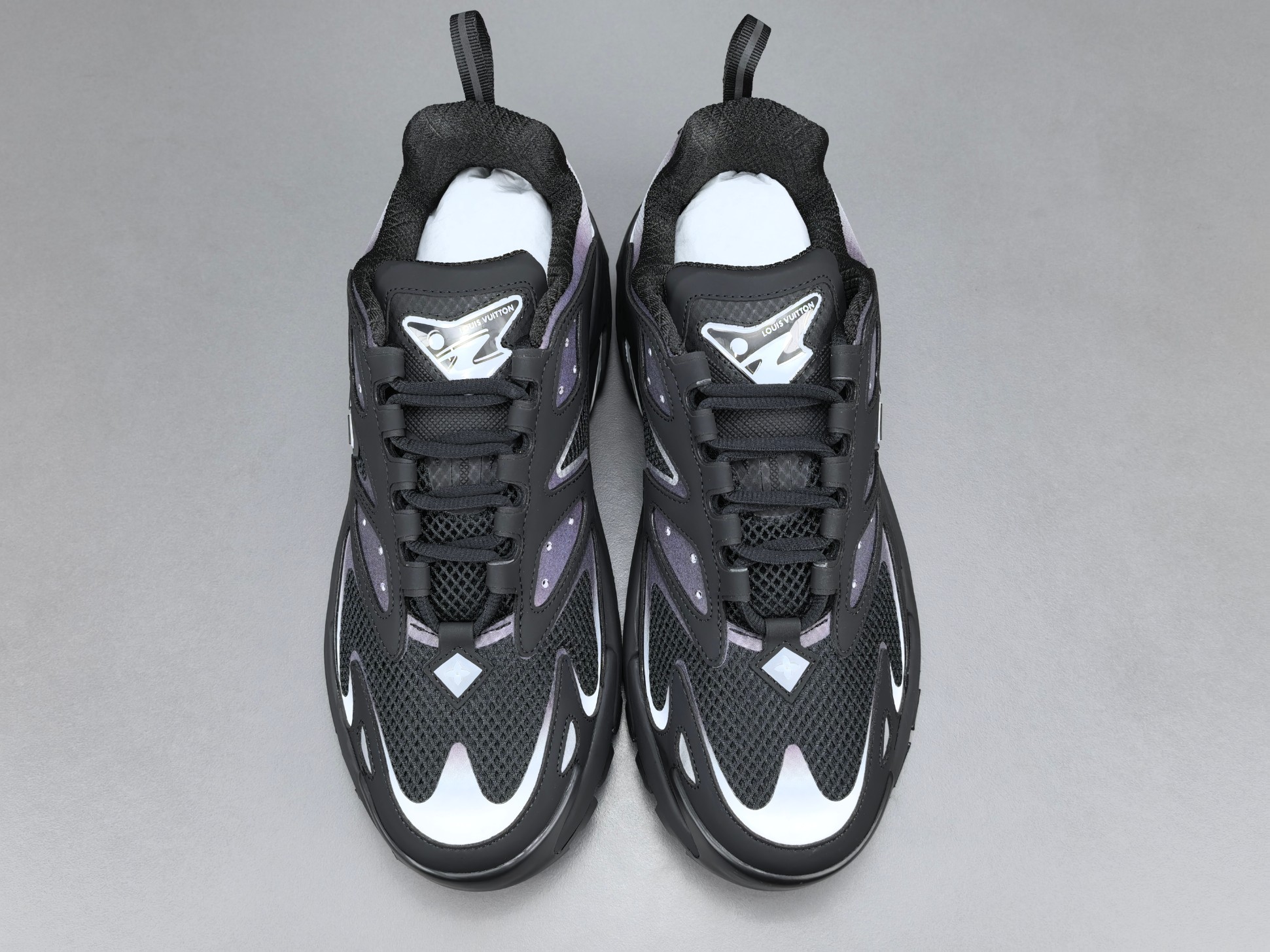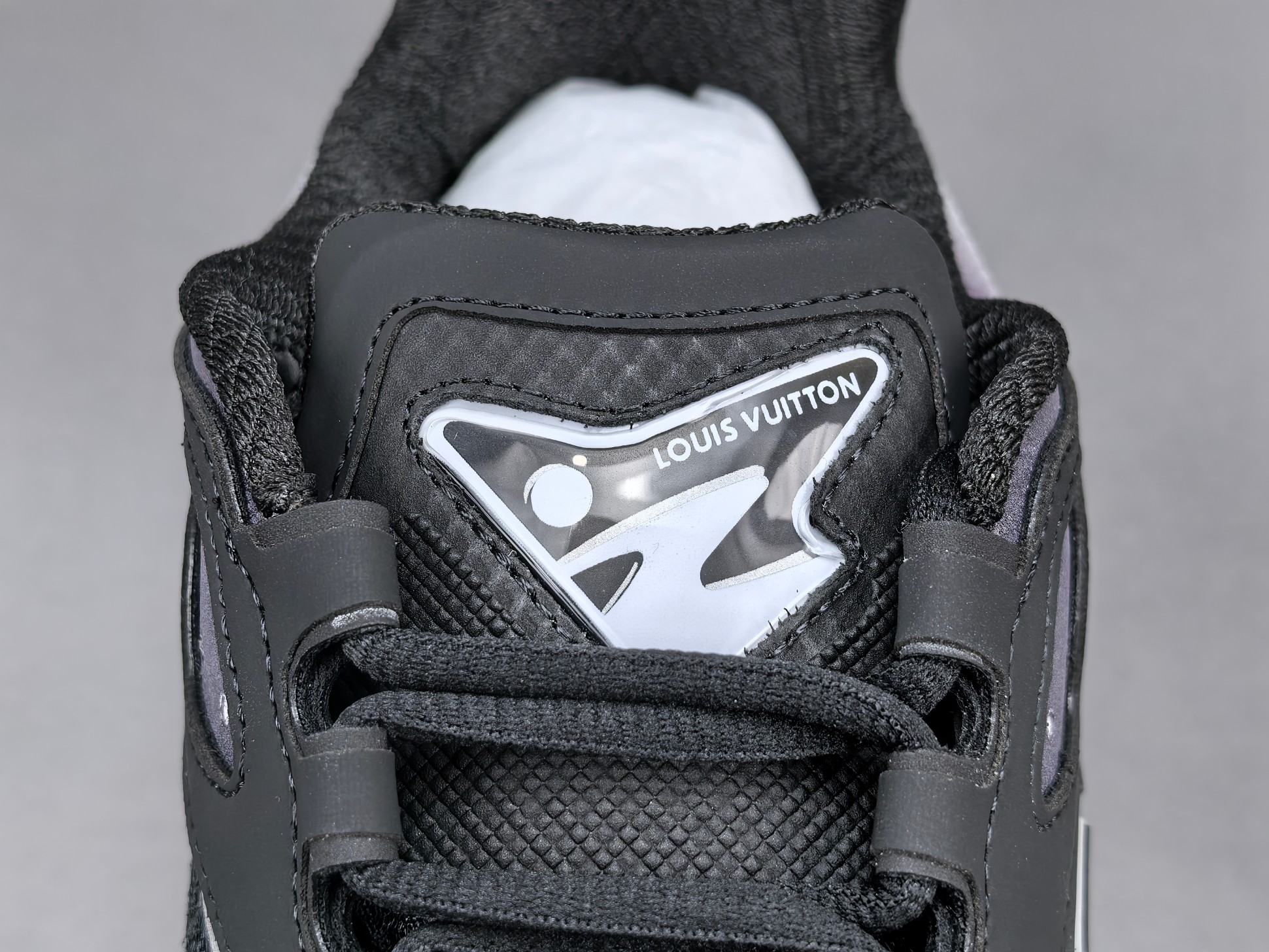 La semelle intermédiaire est conçue pour offrir un amorti optimal, garantissant un confort exceptionnel lors de la marche ou de la course. La semelle extérieure, quant à elle, est dotée d’un motif antidérapant qui assure une adhérence supérieure sur différentes surfaces. Les détails de finition, tels que le logo Louis Vuitton subtilement apposé et les coutures soignées, témoignent de l’attention portée aux détails et du luxe inhérent à la marque.
