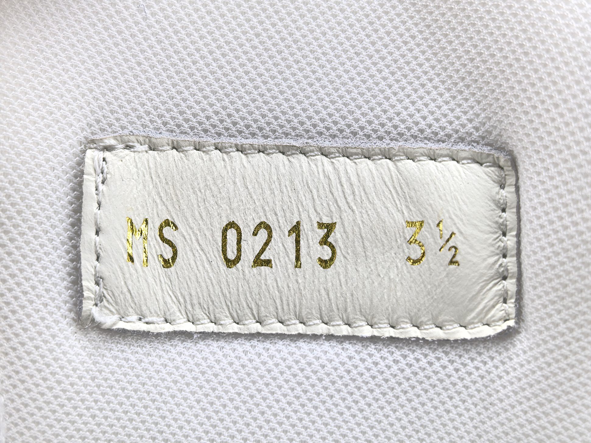 La chaussure est confectionnée en cuir de veau de haute qualité, offrant à la fois durabilité et confort. La teinte blanche immaculée sert de toile de fond parfaite pour les motifs floraux vibrants, qui ajoutent une touche artistique et contemporaine. Les détails minutieux, tels que les coutures précises et les finitions soignées, témoignent du savoir-faire exceptionnel de la maison Louis Vuitton.