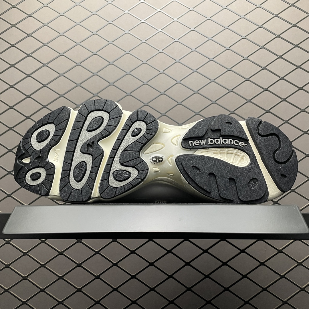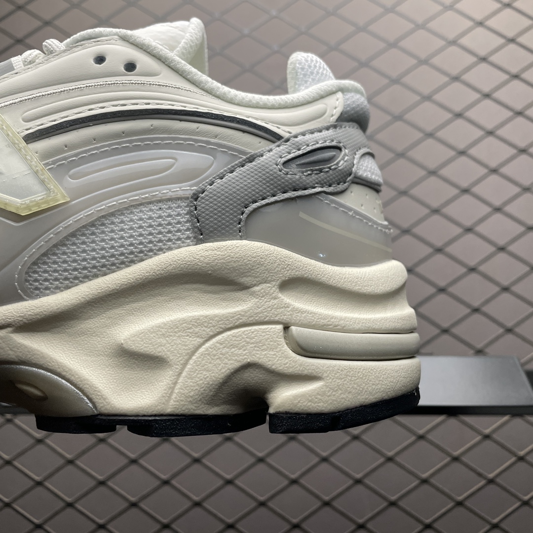 Le design global de la chaussure est à la fois rétro et moderne, avec des lignes épurées et une silhouette classique qui rend hommage aux modèles de course traditionnels de New Balance, tout en intégrant une touche contemporaine par ses finitions et détails soignés.