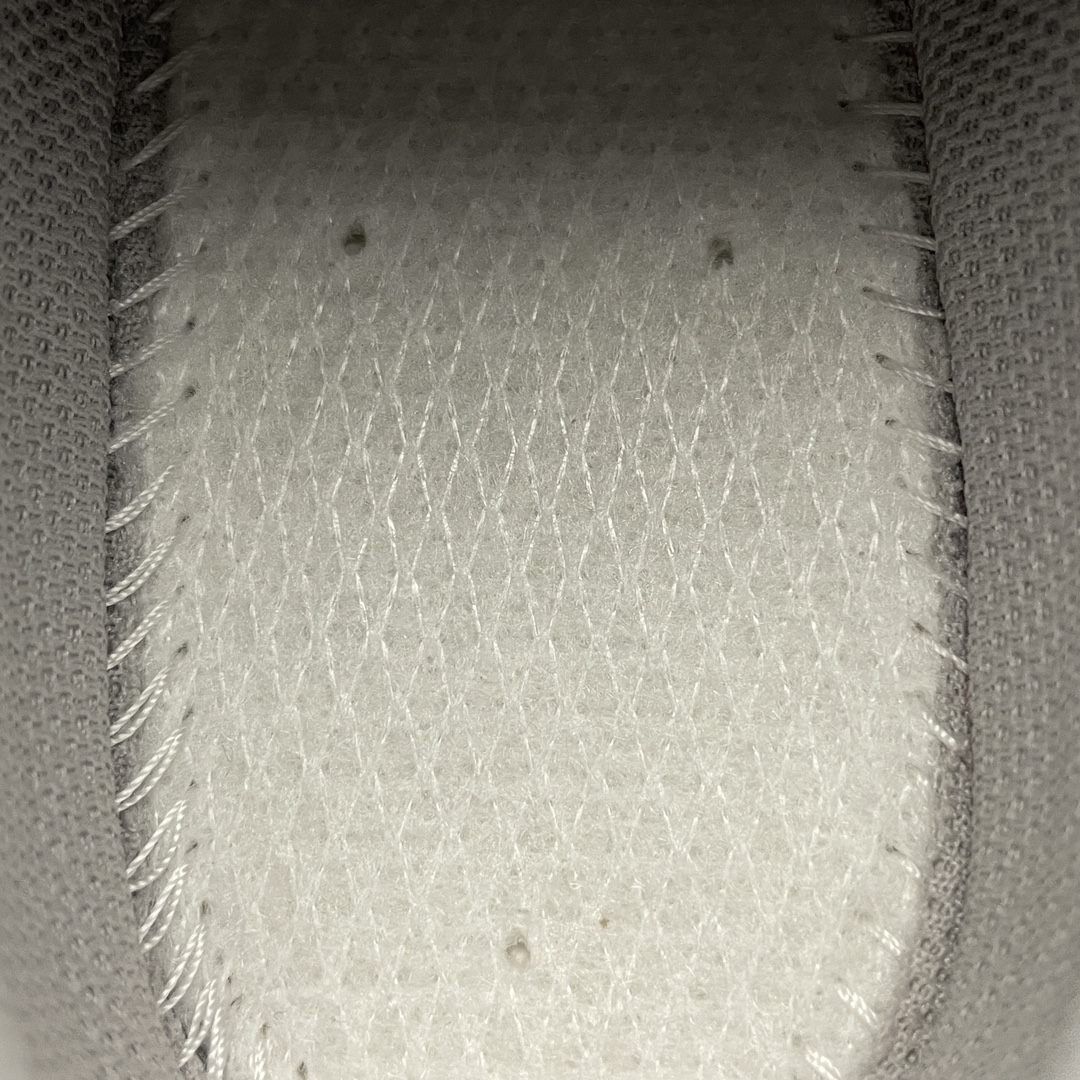 La tige de la chaussure est fabriquée en mesh et en cuir, offrant ainsi une bonne respirabilité tout en assurant une structure solide et durable. La couleur dominante est le blanc, accompagnée de nuances de gris (Rain Cloud) et de détails métalliques argentés (Silver Metallic), ce qui lui confère un look à la fois élégant et moderne.