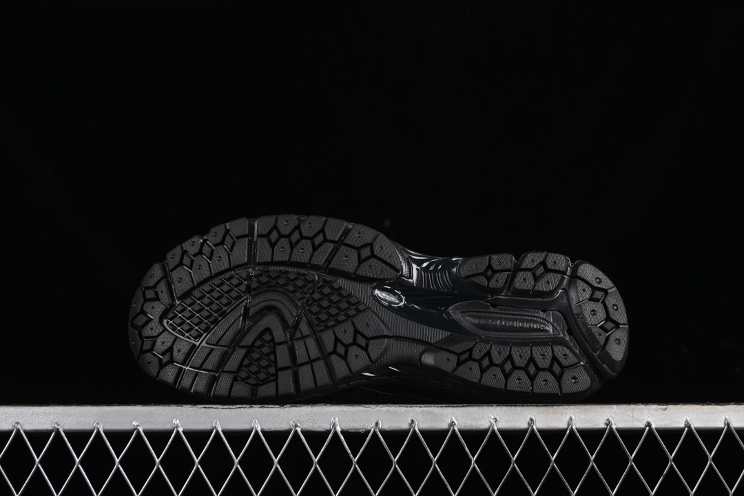 La chaussure est entièrement revêtue d’un noir profond, d’où le nom « Triple Black », ce qui lui confère un look versatile et facile à assortir avec diverses tenues. La tige est fabriquée à partir de matériaux de haute qualité, combinant du mesh respirant et des renforts en cuir synthétique, offrant à la fois durabilité et confort.