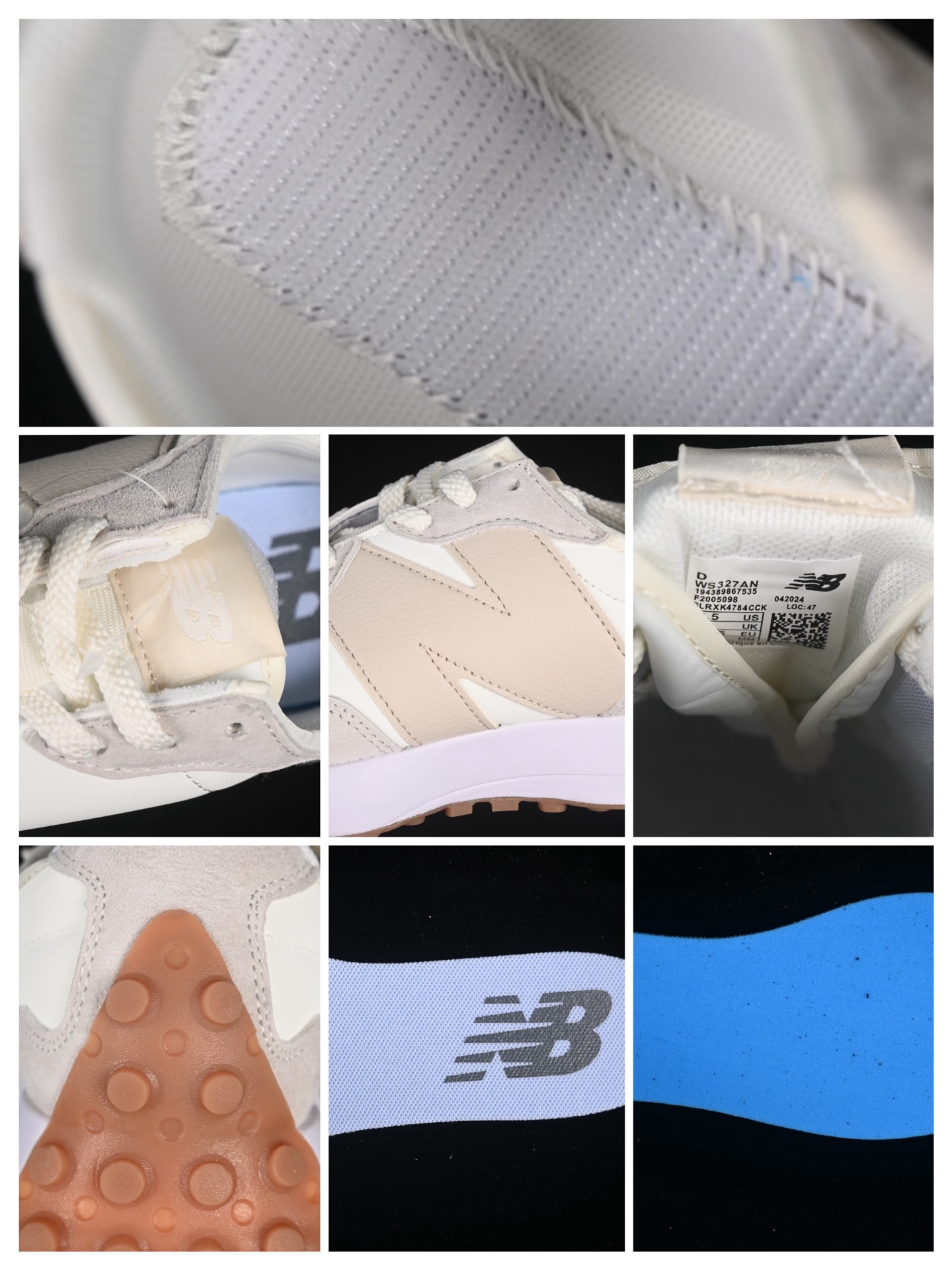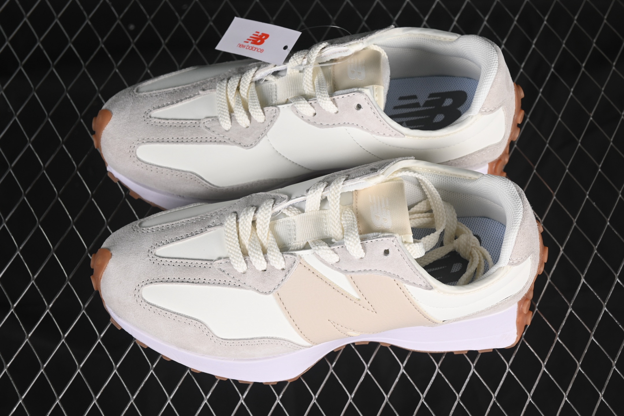 Le logo « N » surdimensionné, signature de la marque, est apposé sur les côtés, renforçant l’identité visuelle de la chaussure. La semelle intermédiaire en EVA garantit un confort et un amorti exceptionnels, rendant cette sneaker idéale pour un usage quotidien. La New Balance 327 Beige White Gum Pink WS327AN est parfaite pour ceux qui recherchent une chaussure à la fois tendance et confortable, capable de s’adapter à diverses tenues et occasions.