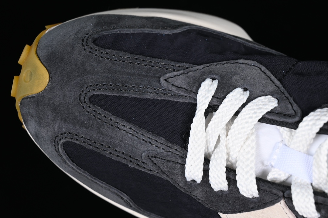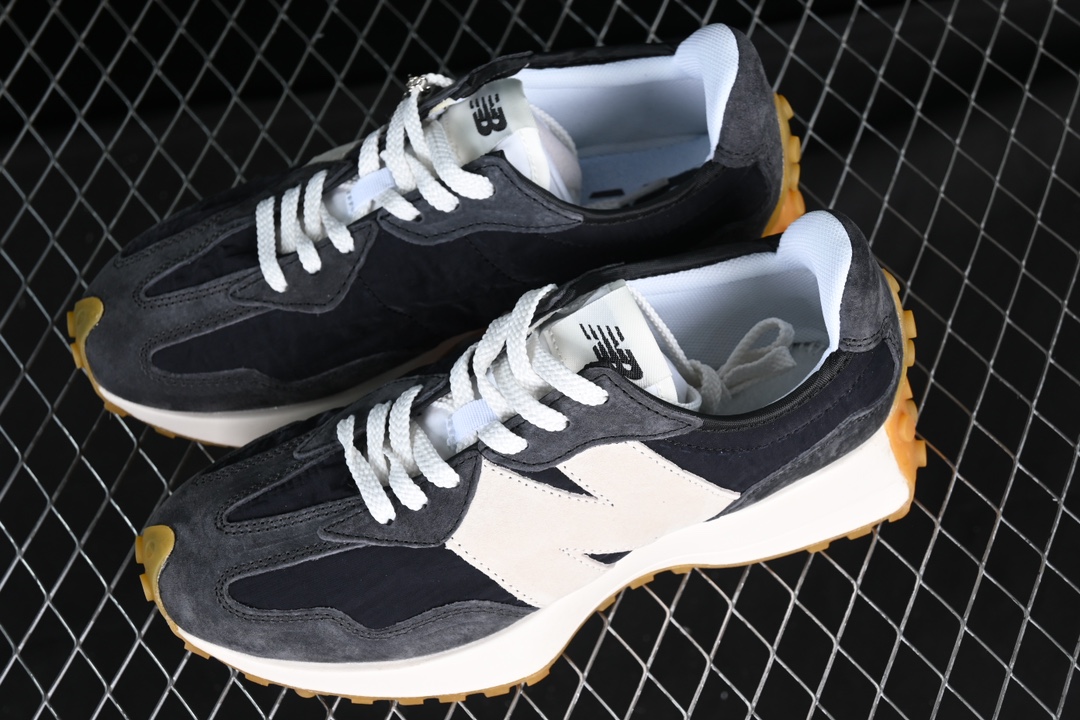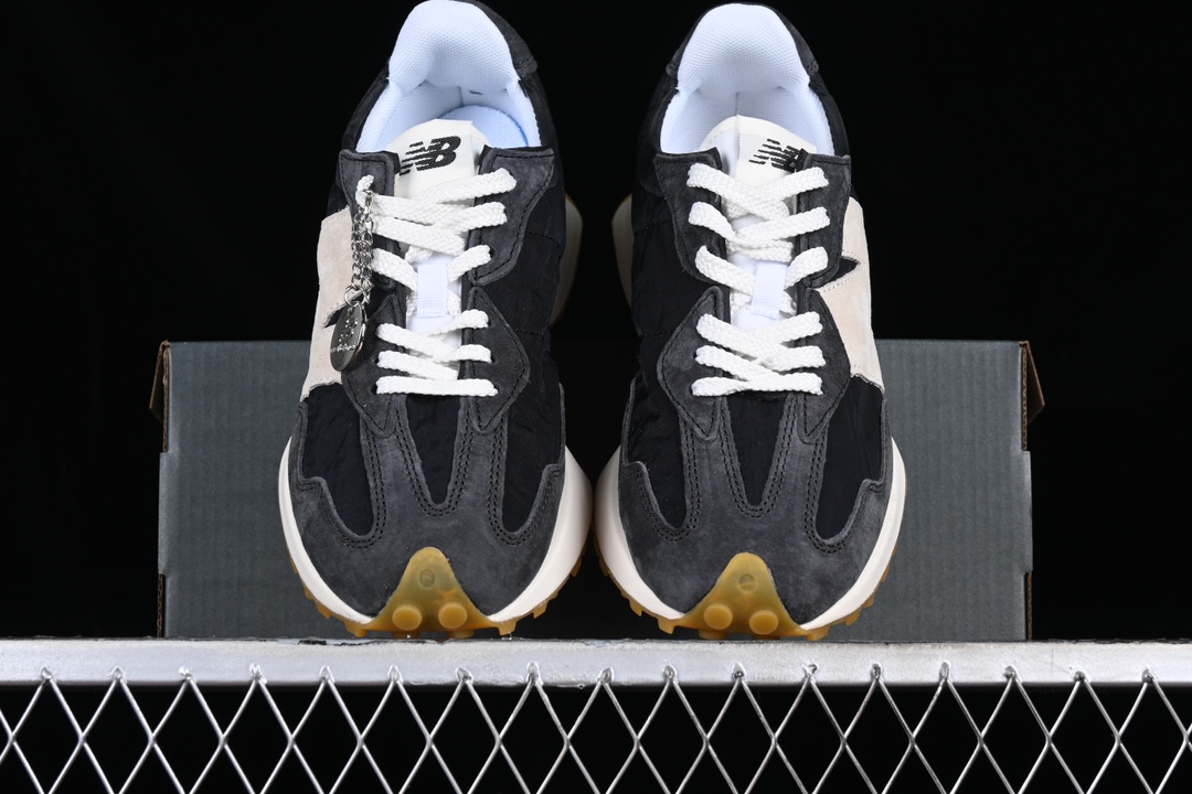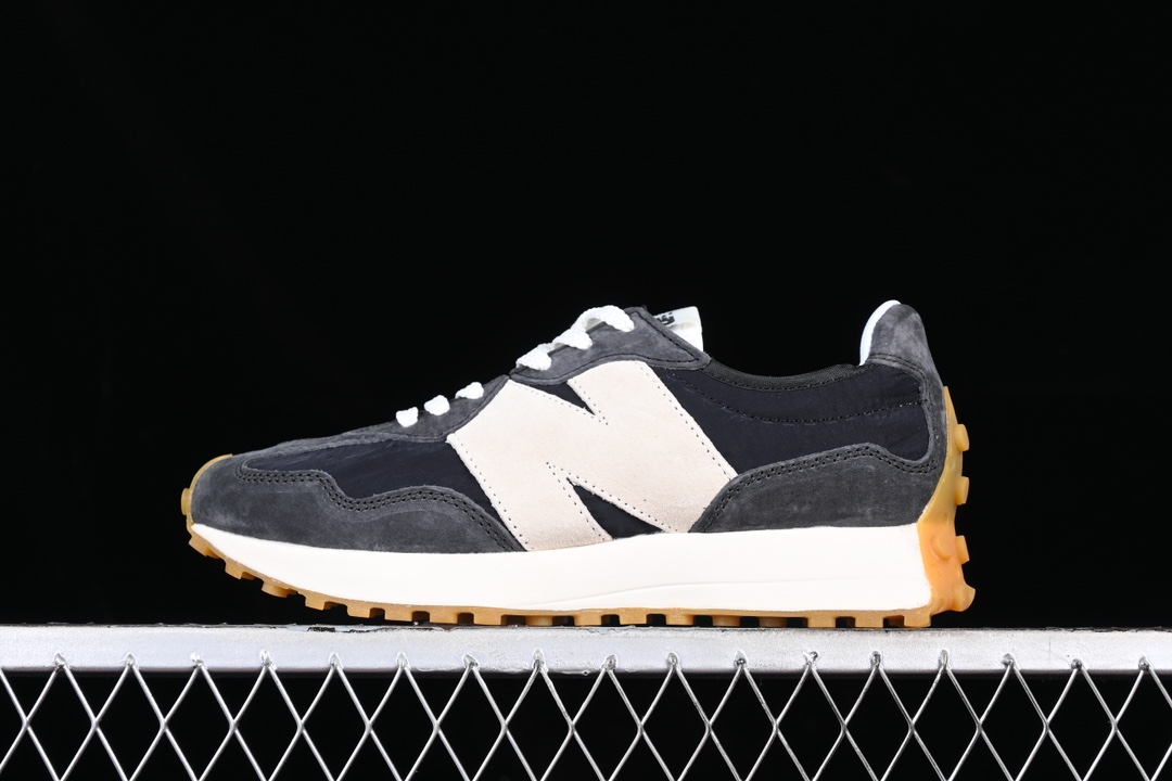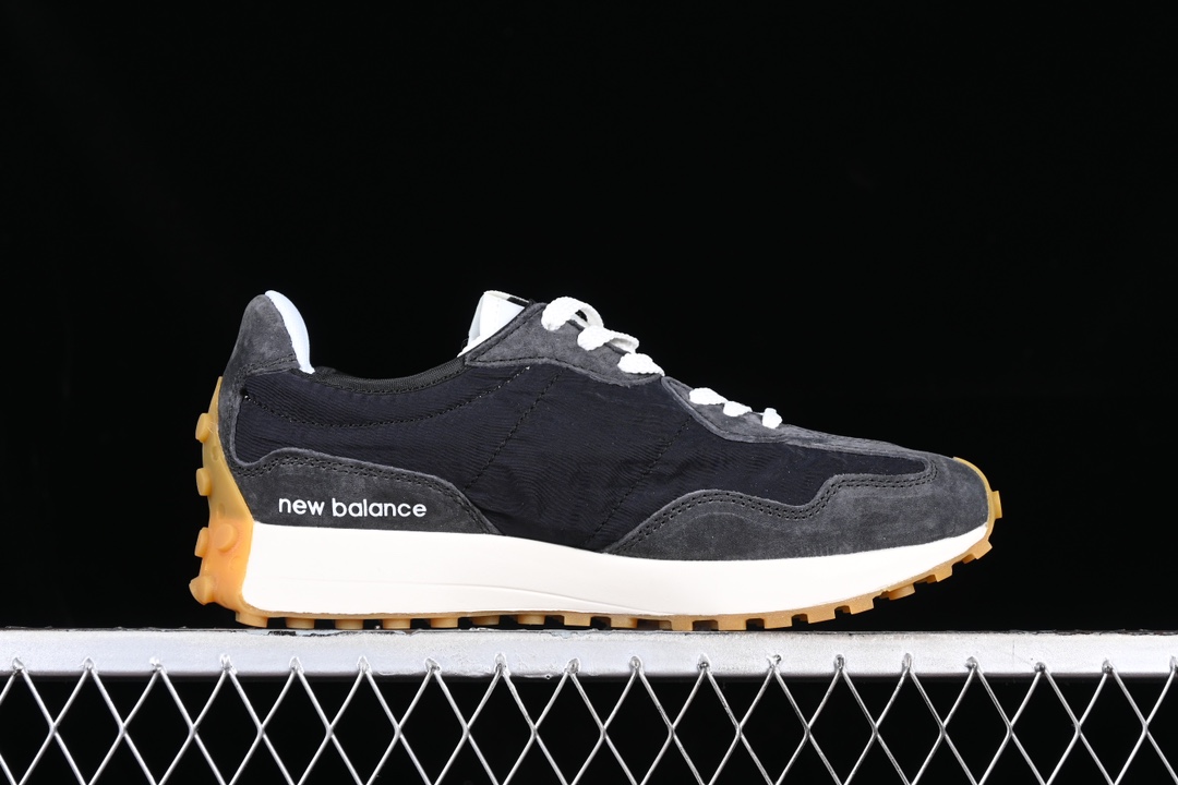 La New Balance 327 Clean Vintage Black MS327KB1 est une chaussure de sport pour hommes au design rétro et élégant. Elle présente une empeigne en nylon et en daim de haute qualité, avec des détails en cuir pour une durabilité accrue. La combinaison de ces matériaux confère à la chaussure un aspect vintage et intemporel.