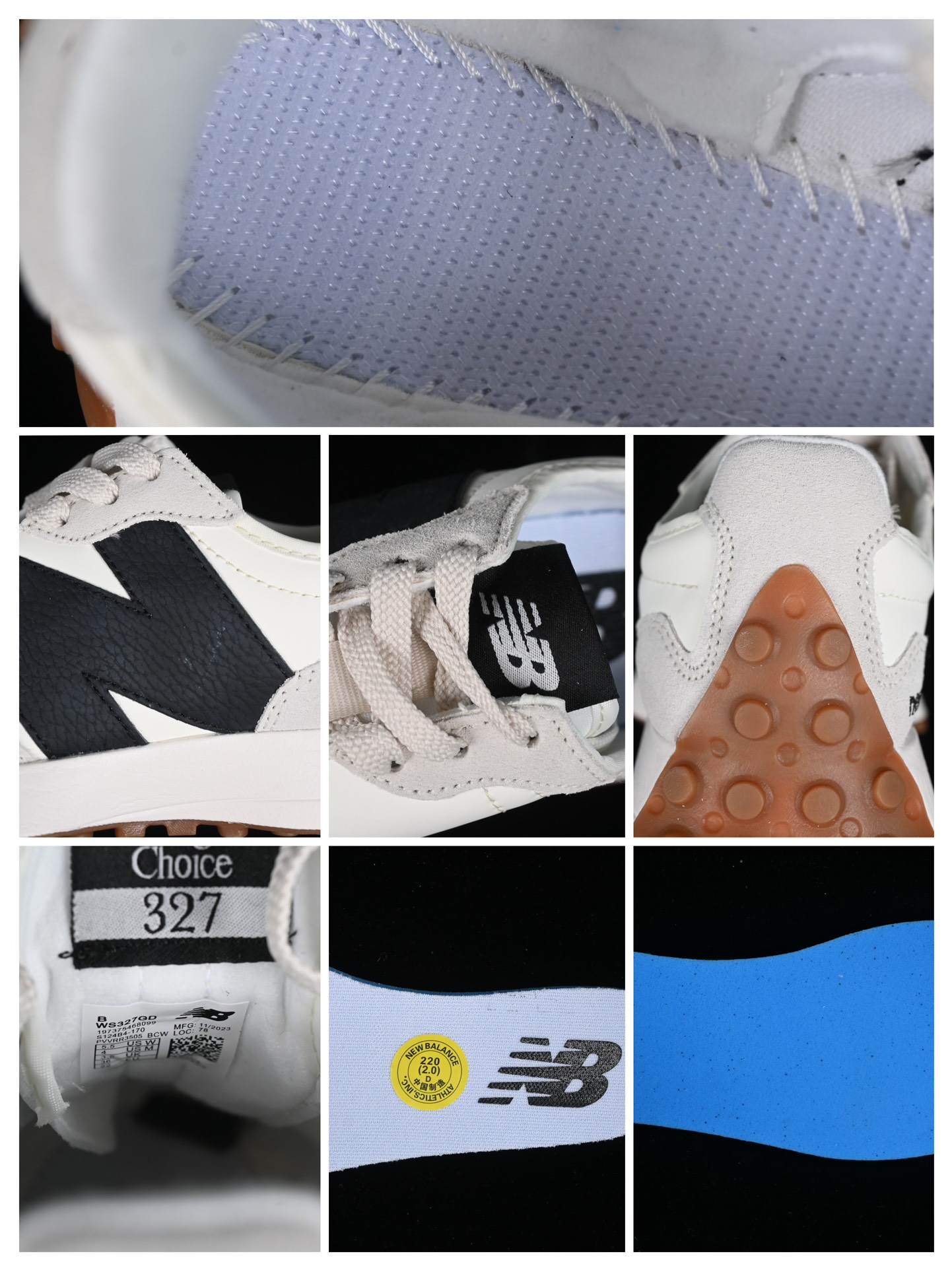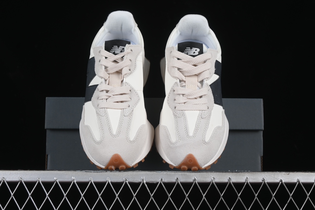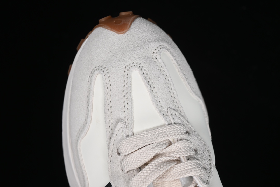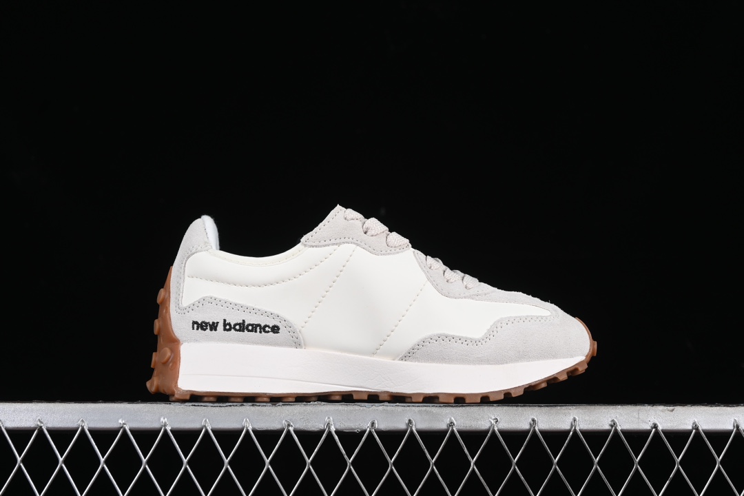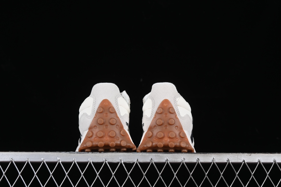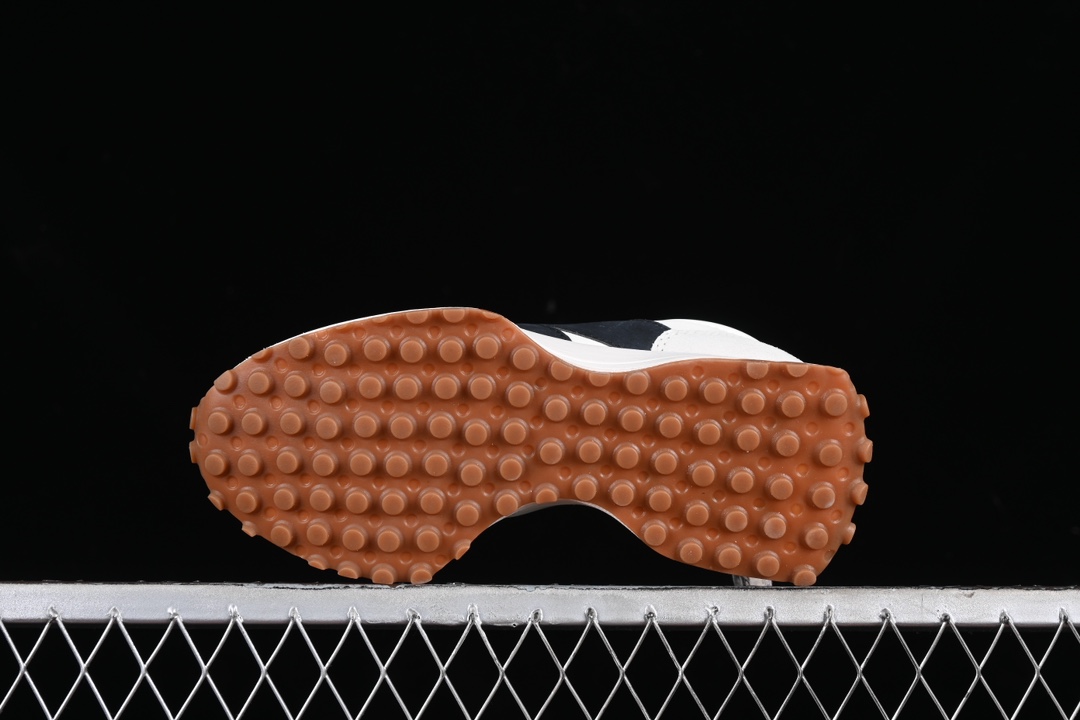 Le design s’inspire des modèles emblématiques des années 70, avec une silhouette épurée et une semelle extérieure qui remonte sur le talon, caractéristique distinctive de la 327. Cette semelle extérieure est en caoutchouc gomme, connue pour sa résistance et son adhérence, ce qui rend la chaussure adaptée à diverses surfaces.