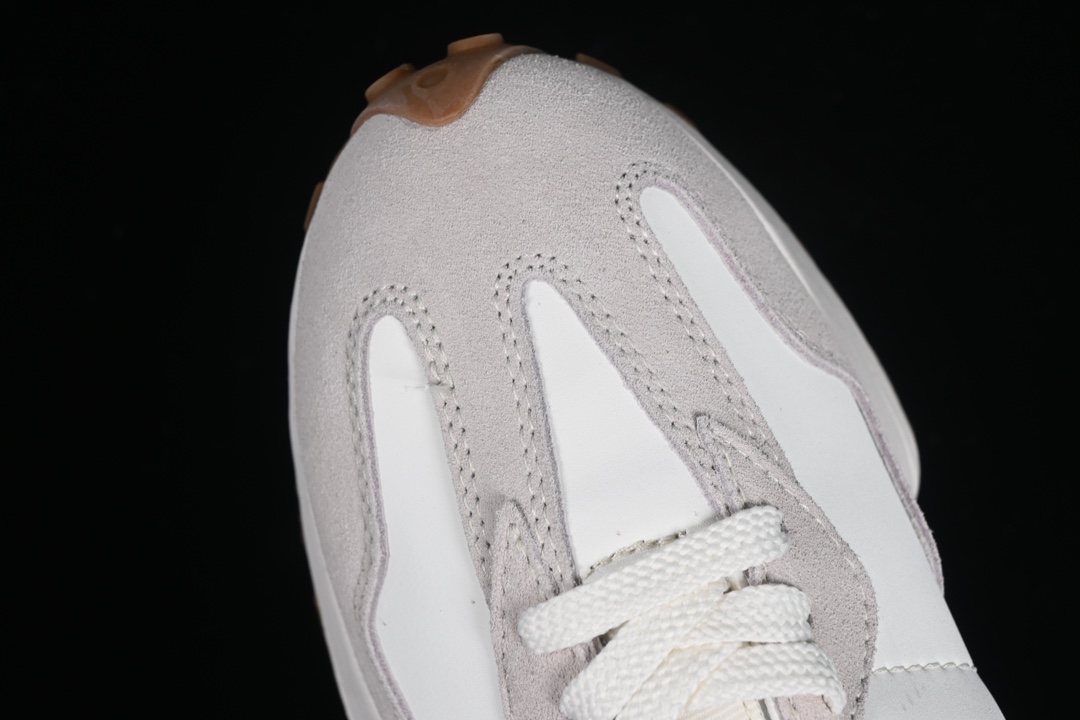 La New Balance 327 Moonbeam Classic Burgundy WS327KA est une chaussure de sport pour femmes. Elle présente une combinaison de couleurs élégante avec une tige en daim de couleur beige clair, également appelée « moonbeam », et des accents de couleur bordeaux. La silhouette de la chaussure est inspirée des modèles de course rétro des années 70, ce qui lui confère un look vintage et tendance.
