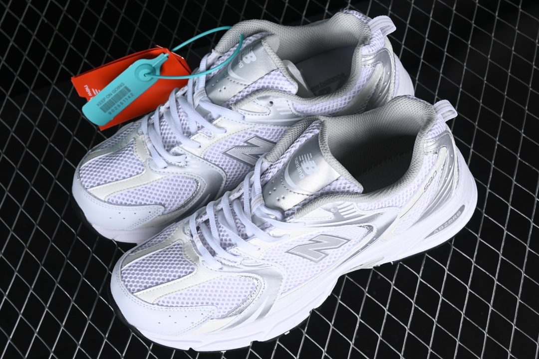La New Balance 530 Munsell White MR530EMA est une chaussure de sport qui allie style rétro et performance moderne. Inspirée des modèles de course des années 90, cette sneaker arbore un design classique avec une touche contemporaine. La tige est fabriquée en mesh respirant, complétée par des empiècements en cuir synthétique, offrant à la fois durabilité et confort. La couleur Munsell White confère à la chaussure une esthétique épurée et polyvalente, idéale pour s’adapter à diverses tenues.