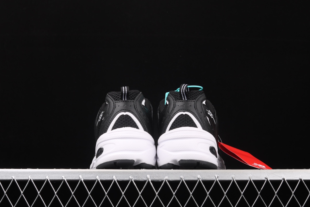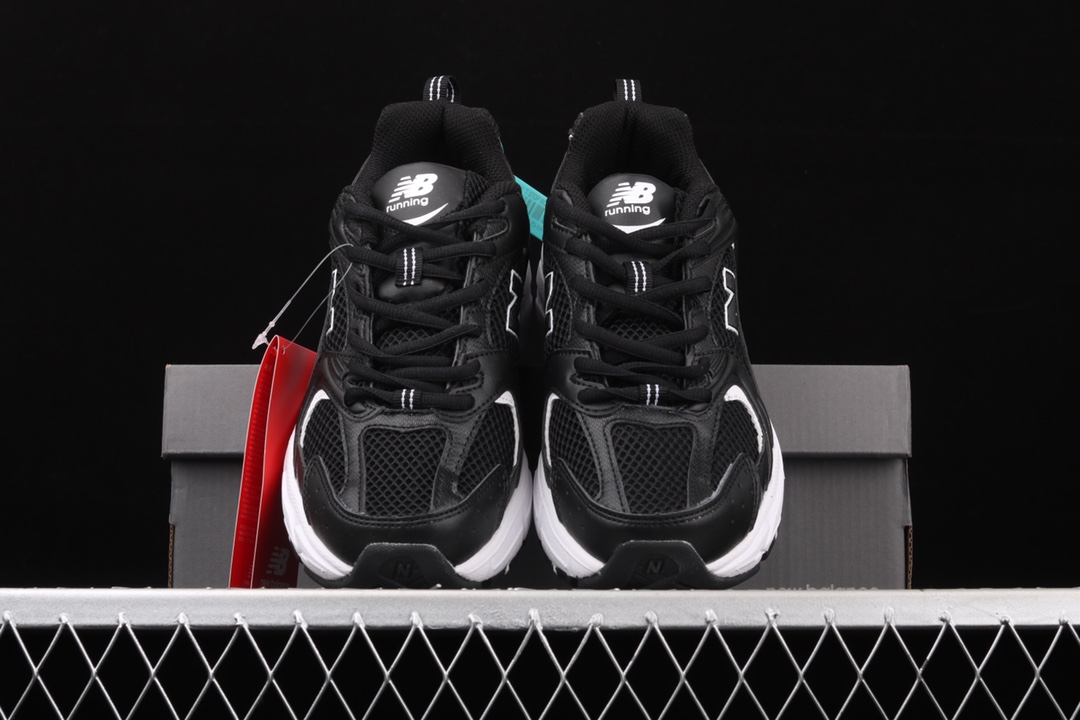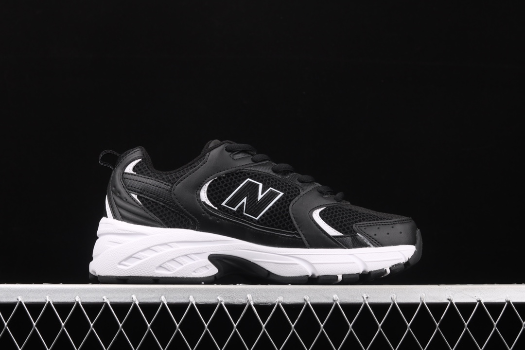 La New Balance 530v2 Black White MR530SD est une chaussure de sport qui combine style et confort. Elle arbore une esthétique rétro avec une silhouette moderne, ce qui la rend adaptée tant pour le sport que pour un usage quotidien. La tige est fabriquée en matériaux mixtes, incluant du cuir et du textile, ce qui offre à la fois durabilité et respirabilité. La chaussure est principalement de couleur noire avec des accents blancs, notamment le logo « N » de New Balance sur les côtés, ce qui lui donne un look classique et épuré.