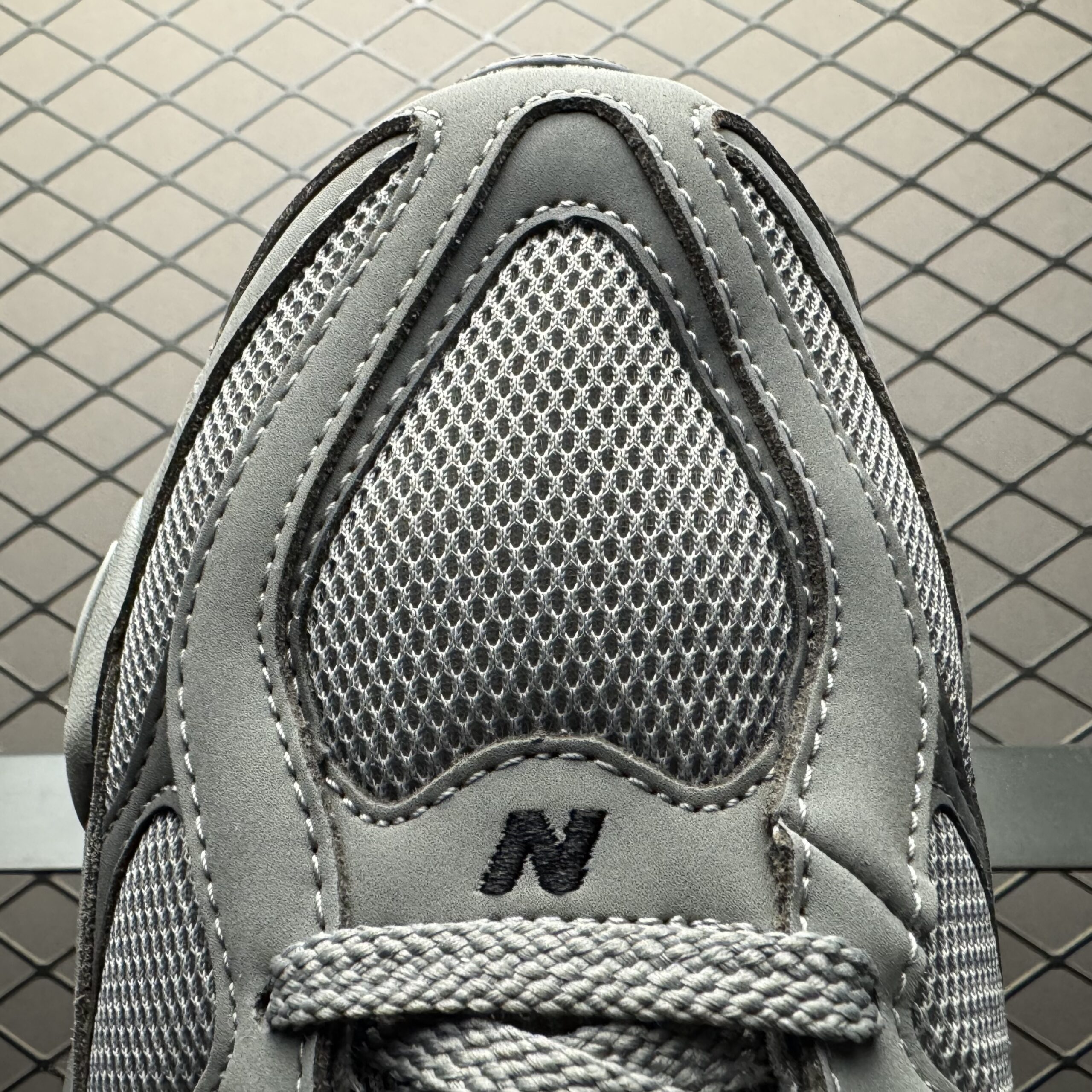 La tige de la chaussure est fabriquée à partir d’un mélange de daim et de mesh, offrant à la fois durabilité et respirabilité. La couleur principale, un gris ombragé, est subtilement contrastée par des nuances de gris plus claires, créant un effet visuel élégant et sophistiqué. Le logo emblématique « N » de New Balance est apposé sur les côtés, ajoutant une touche de reconnaissance instantanée.