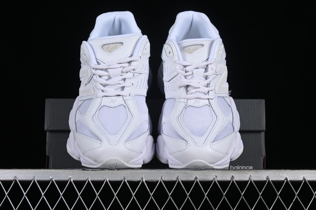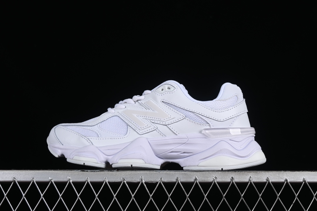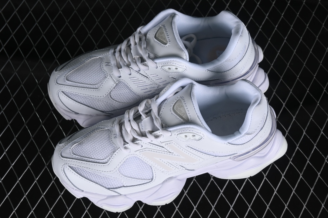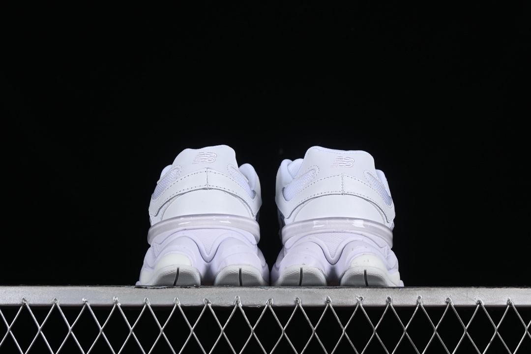 La tige de la chaussure est confectionnée à partir d’un mélange de matériaux de haute qualité, incluant du cuir lisse et du mesh respirant, ce qui assure à la fois durabilité et confort. Les superpositions en cuir ajoutent une touche d’élégance et de structure à la chaussure, tandis que le mesh permet une bonne ventilation, rendant la 9060 Triple White adaptée à une utilisation quotidienne.
