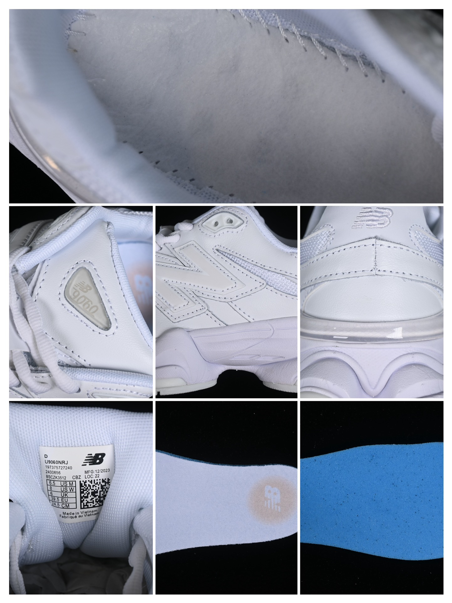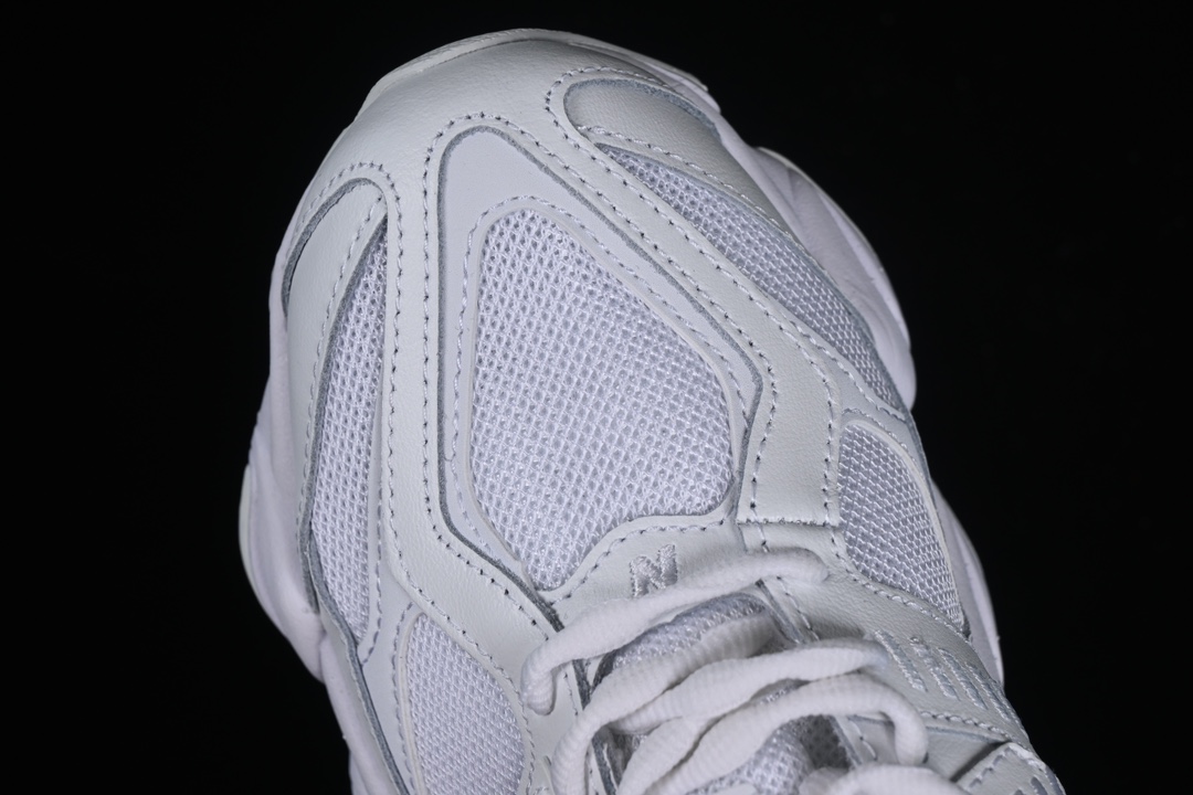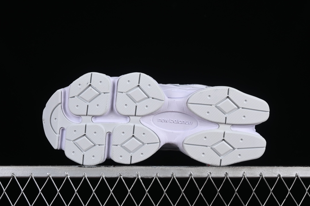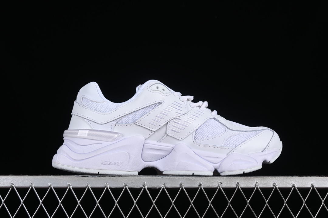 La tige de la chaussure est confectionnée à partir d’un mélange de matériaux de haute qualité, incluant du cuir lisse et du mesh respirant, ce qui assure à la fois durabilité et confort. Les superpositions en cuir ajoutent une touche d’élégance et de structure à la chaussure, tandis que le mesh permet une bonne ventilation, rendant la 9060 Triple White adaptée à une utilisation quotidienne.