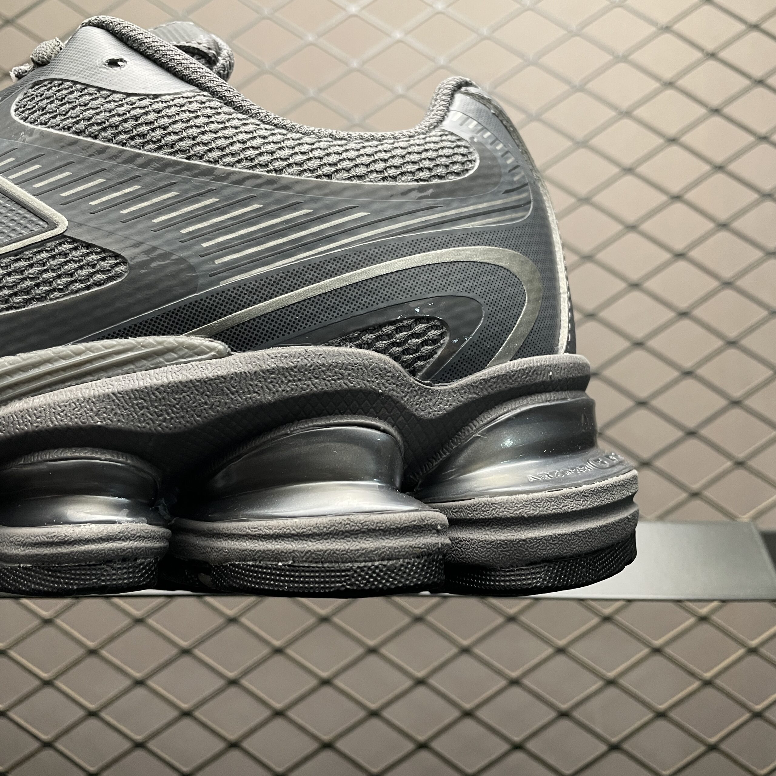 Le dessus en cuir et en mesh de ces chaussures offre une combinaison parfaite de durabilité et de respirabilité. Le cuir robuste résiste à l’usure, tandis que le mesh permet à l’air de circuler pour garder vos pieds au frais et au sec. De plus, la couleur gris foncé offre un look saisissant qui est sûr de faire tourner les têtes.