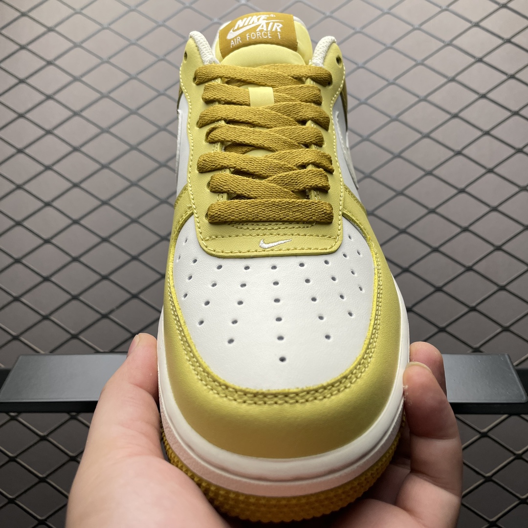 Le design inclut également les caractéristiques emblématiques de l’Air Force 1, comme le perforé sur le bout pour une meilleure aération, le logo « AIR » sur la semelle intermédiaire, et le logo classique de Nike Air sur le talon.
