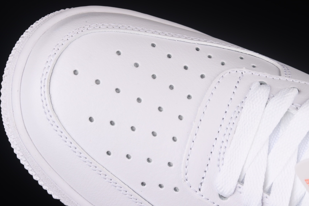 La tige de la chaussure est principalement blanche, avec des détails en cuir lisse et perforé pour une meilleure respirabilité. Le logo Nike Swoosh est découpé sur les côtés de la chaussure, ce qui lui donne un aspect unique et distinctif.