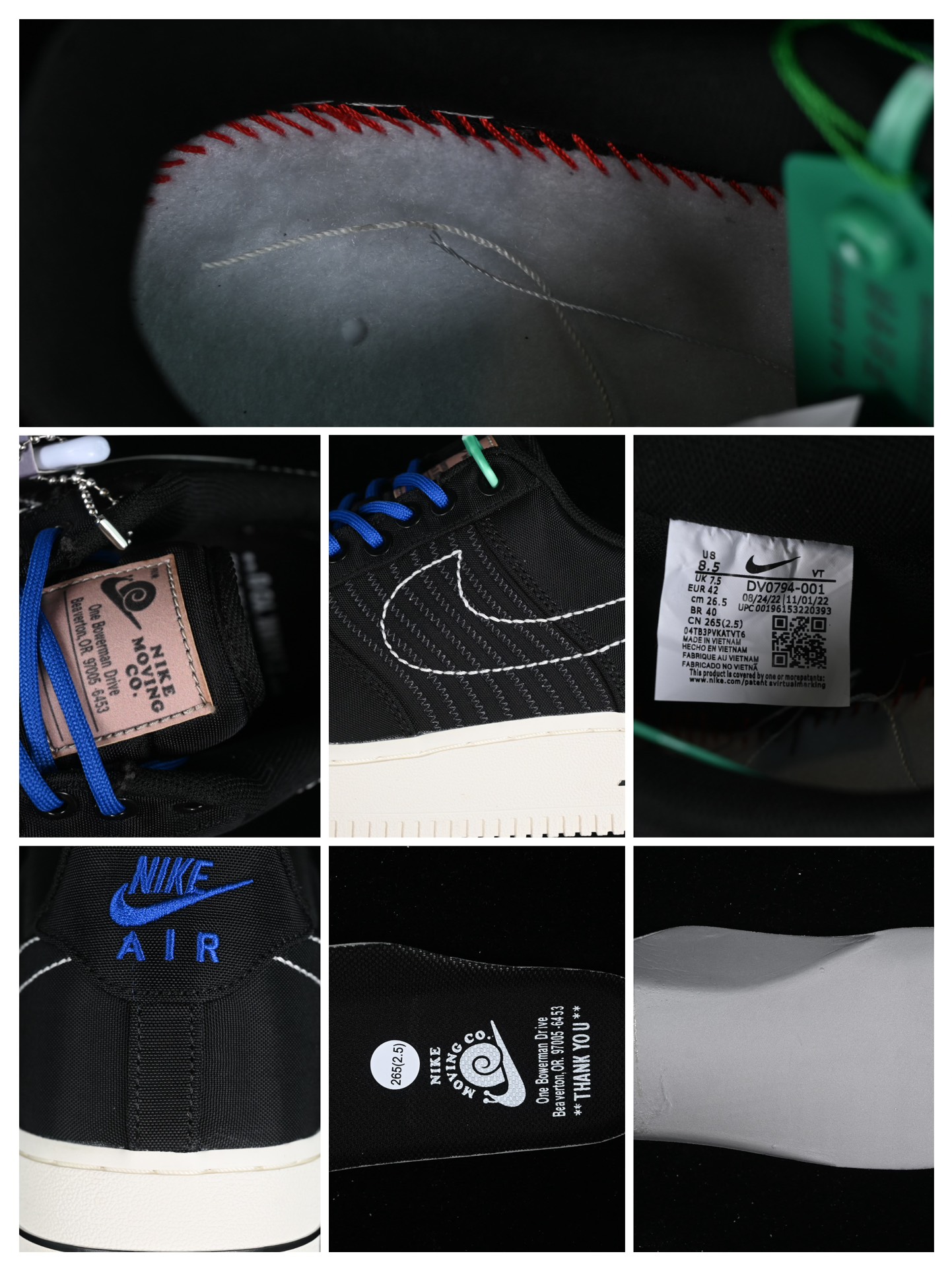 Les détails supplémentaires incluent des perforations sur le devant de la chaussure pour une meilleure respirabilité, ainsi qu’une étiquette de languette classique avec le logo Nike Air. Le design est complété par des lacets noirs qui se fondent harmonieusement avec le reste de la chaussure.