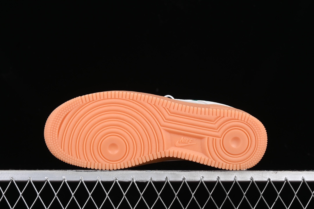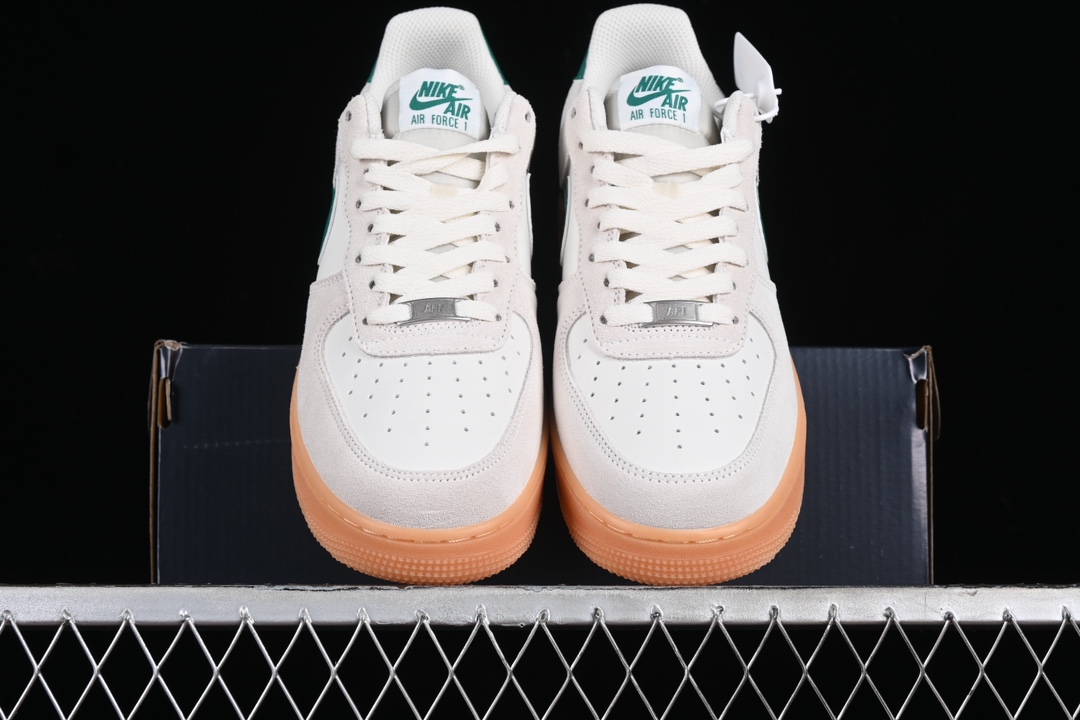 La semelle intermédiaire est équipée de la technologie Nike Air, caractéristique des Air Force 1, assurant un amorti léger et une protection contre les chocs tout au long de la journée. La semelle extérieure en gomme, d’une couleur marron clair, non seulement complète l’esthétique générale avec un look vintage, mais offre également une excellente traction et durabilité.