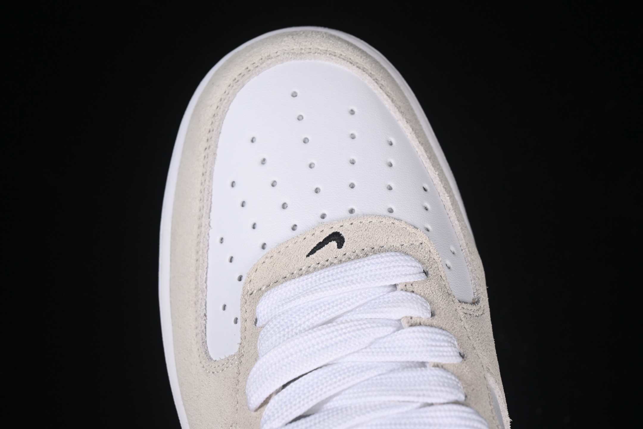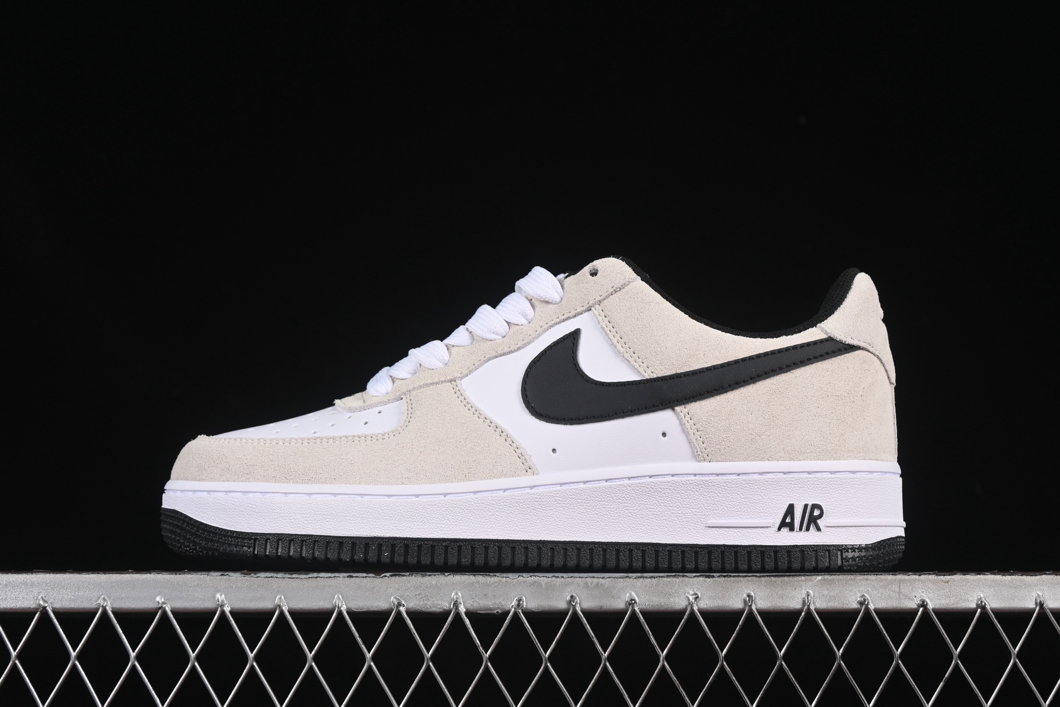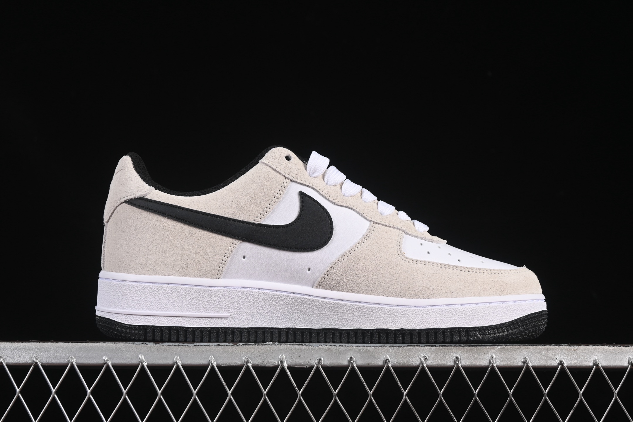Le style emblématique de l’Air Force 1 est rehaussé par le logo Swoosh de Nike en noir, qui se détache magnifiquement contre le cuir blanc. Le logo AF1 sur la languette et l’étiquette de talon ajoute une touche supplémentaire d’authenticité.