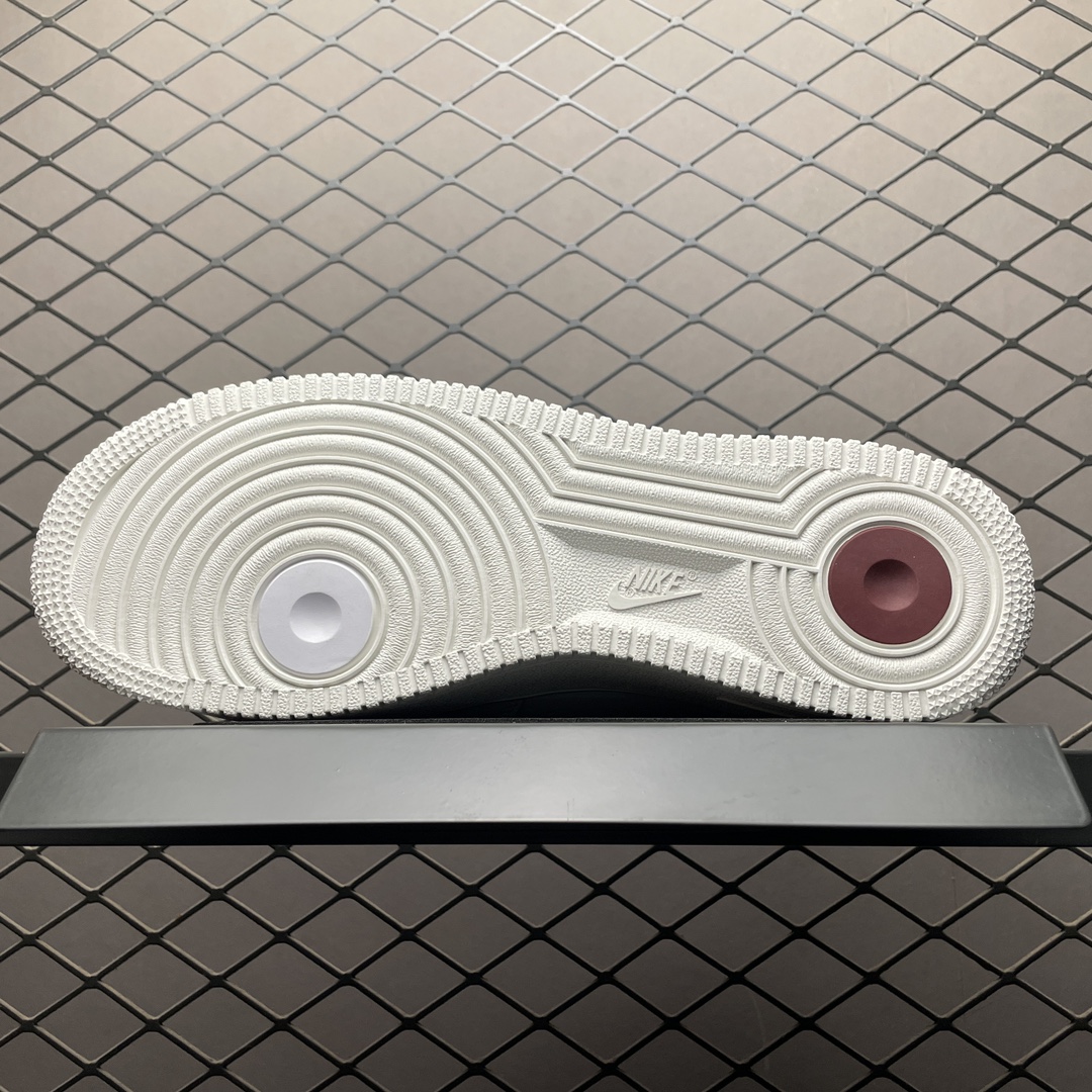 La chaussure présente une combinaison de différents logos Nike, y compris le célèbre Swoosh dans diverses interprétations qui ont marqué l’histoire de la marque. Ces logos sont appliqués de manière subtile en ton sur ton ou avec un léger contraste, créant un effet visuel captivant tout en conservant une esthétique relativement sobre.