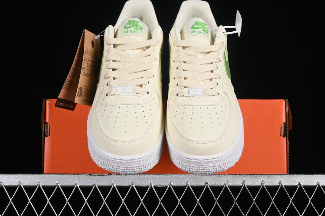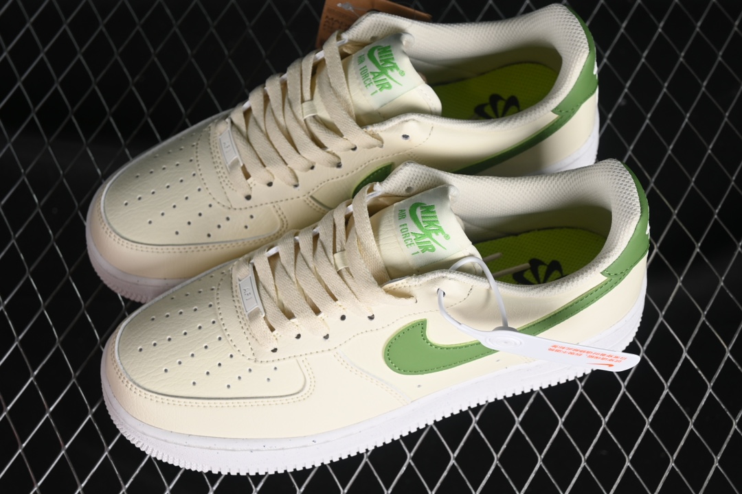 La Nike Air Force 1 Low ’07 SE Coconut Milk Chlorophyll DV3808-102 est une version spéciale et stylisée de la célèbre sneaker Air Force 1 de Nike. Ce modèle particulier présente une combinaison de couleurs douces et naturelles, dominée par une teinte « Coconut Milk » qui couvre la majorité de la chaussure. Cette couleur crème est complétée par des accents de « Chlorophyll », un vert vif, qui ajoutent une touche de contraste et de fraîcheur au design.
