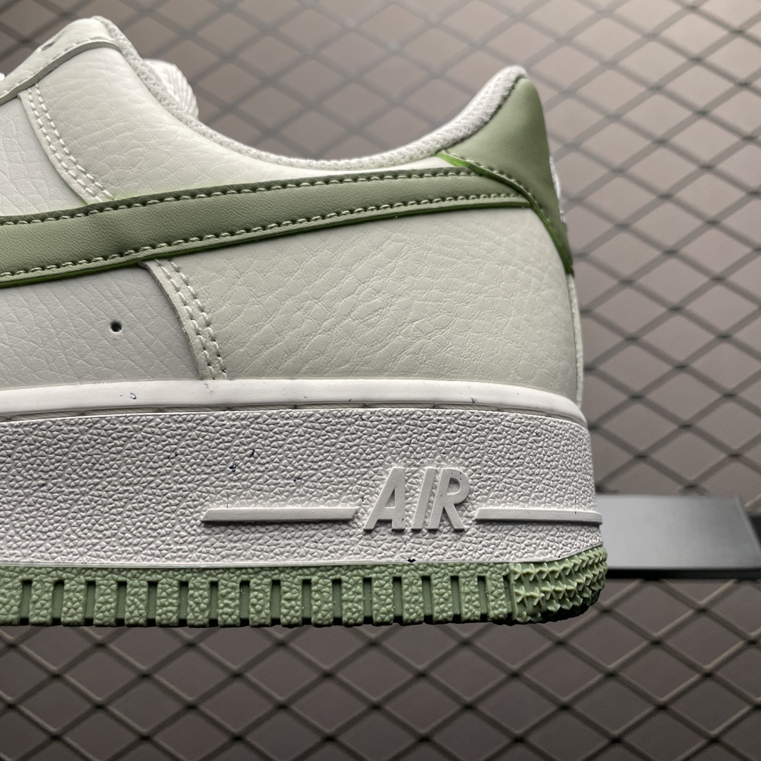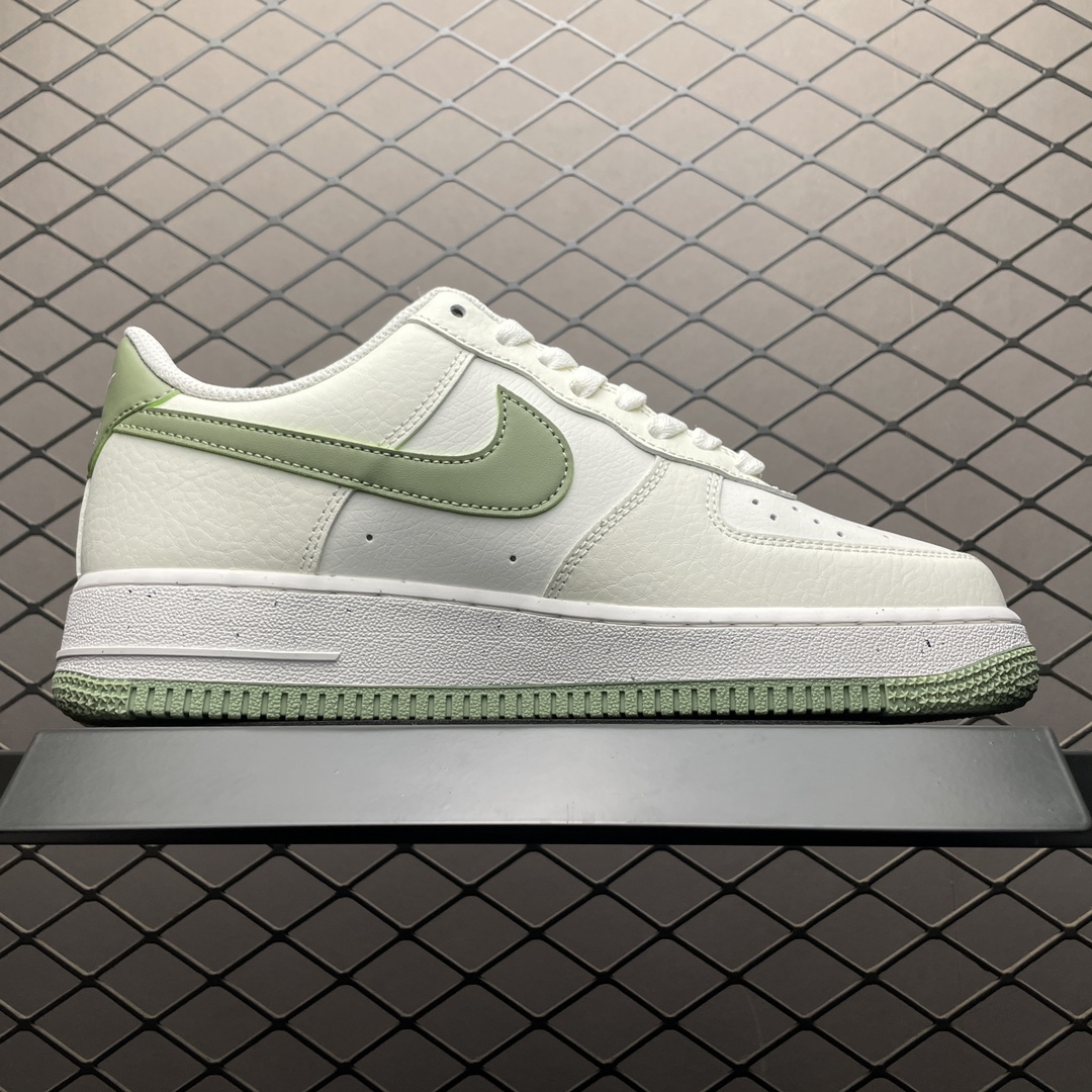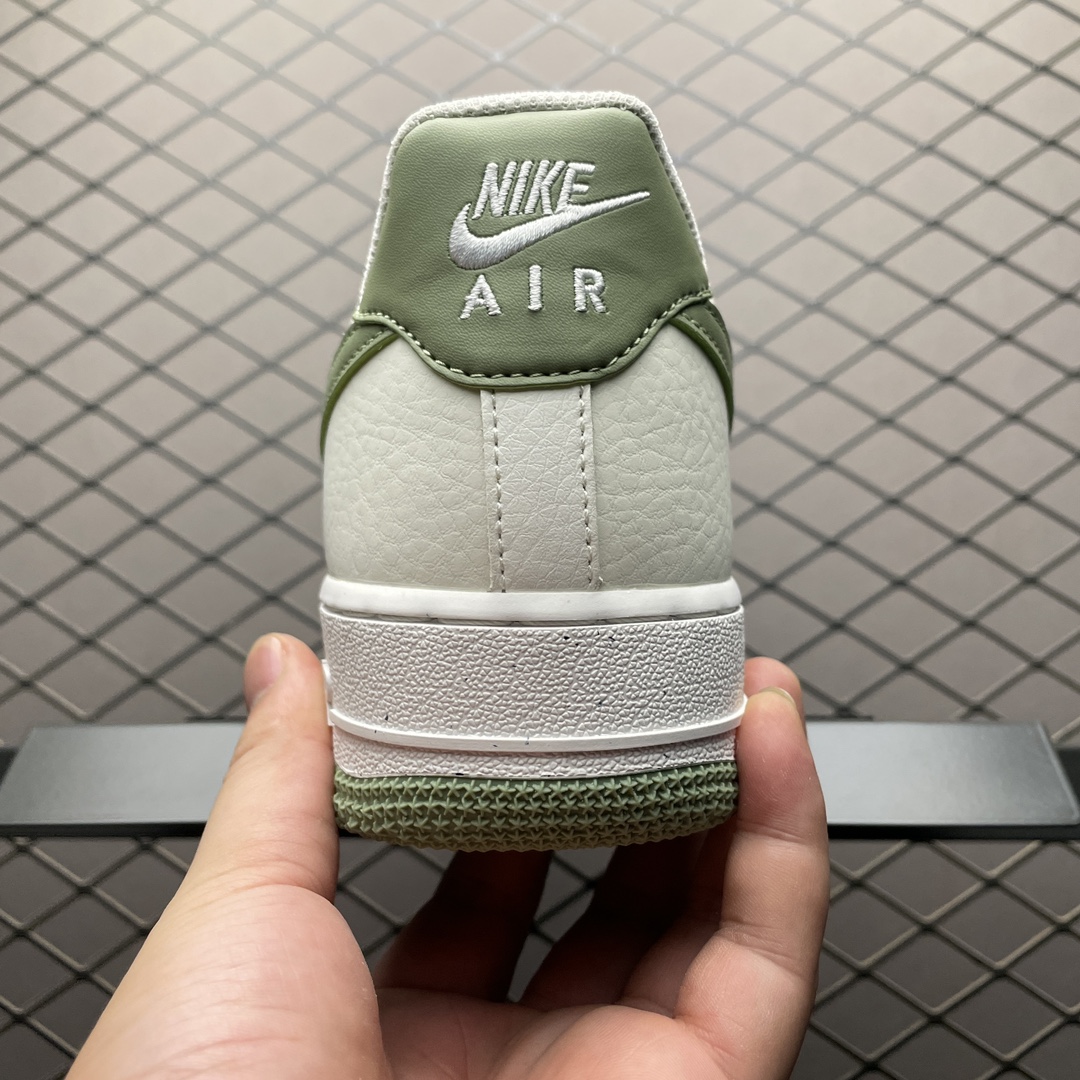 Le design de la Nike Air Force 1 Low ’07 SE Next Nature Oil Green conserve l’esthétique emblématique de l’Air Force 1, tout en intégrant des innovations durables. La tige est fabriquée à partir de cuir synthétique de haute qualité, avec des éléments en matériaux recyclés, offrant à la fois durabilité et style. La couleur « Oil Green » domine la chaussure, accompagnée de détails blancs qui contrastent élégamment avec le vert profond.