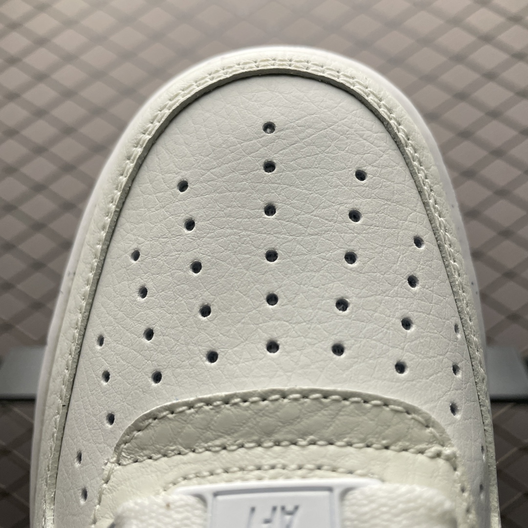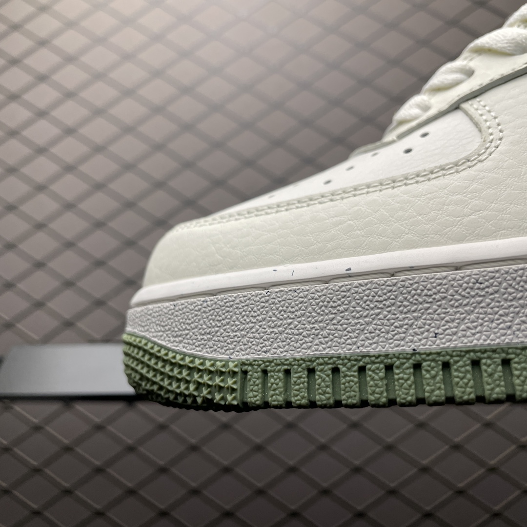 Les détails supplémentaires incluent le logo Nike Swoosh sur les côtés, une étiquette « Nike Air » sur la languette et le logo « AF1 » sur la boucle de talon, tous contribuant à l’aspect distinctif de la chaussure. Le modèle DV3808-106 combine ainsi style classique et engagement envers la durabilité, ce qui en fait un choix populaire pour les amateurs de mode consciente de l’environnement.