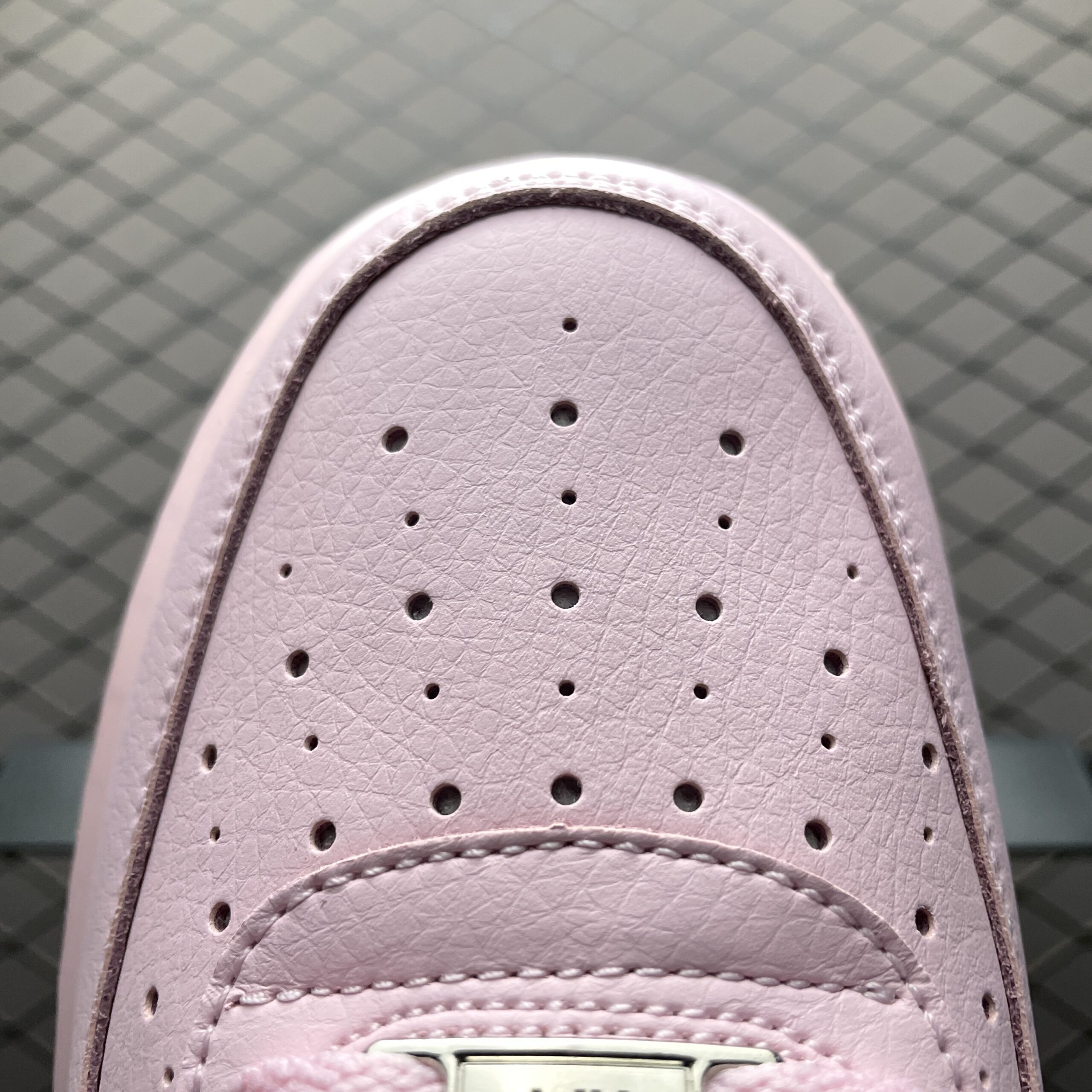 La chaussure arbore une teinte « Pink Foam » douce et subtile qui recouvre l’ensemble de l’empeigne, offrant un look à la fois moderne et élégant. Le cuir de haute qualité utilisé pour la construction de l’empeigne assure durabilité et confort, tout en ajoutant une touche de luxe à l’ensemble. Les perforations classiques sur la toebox garantissent une bonne respirabilité.