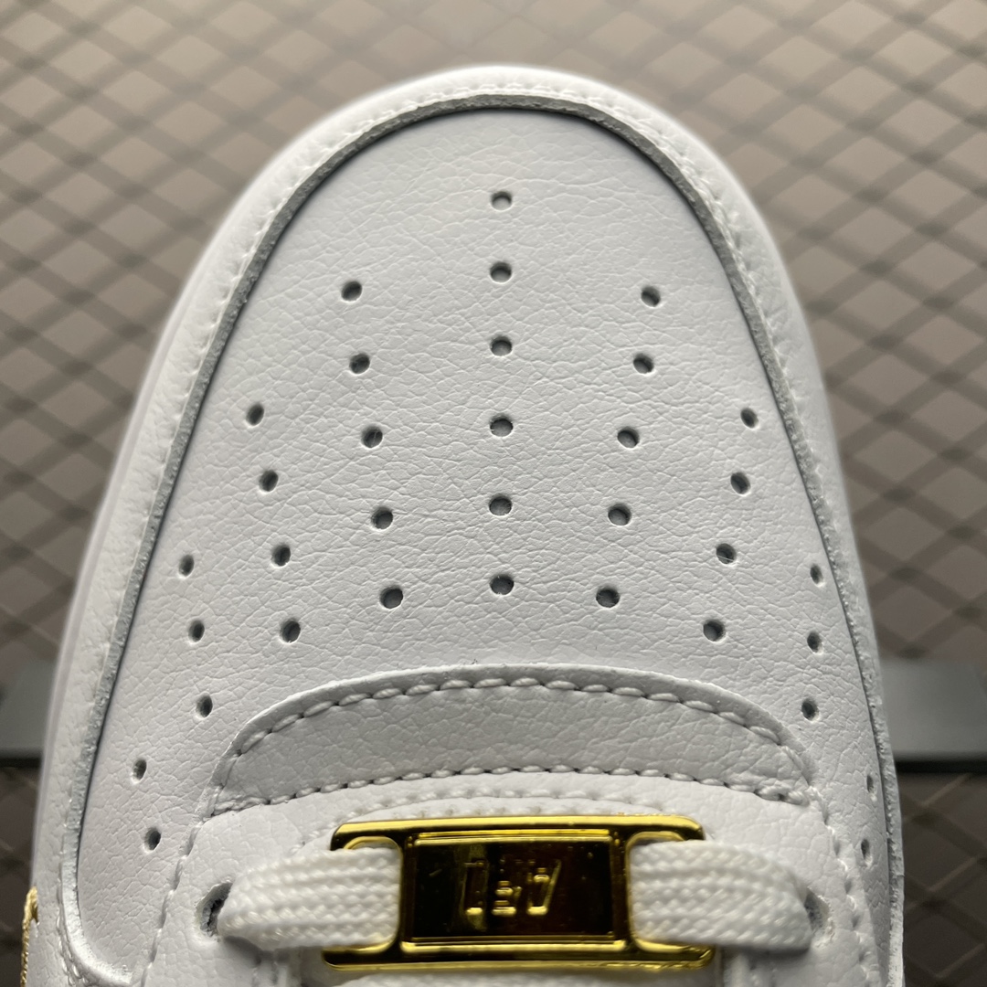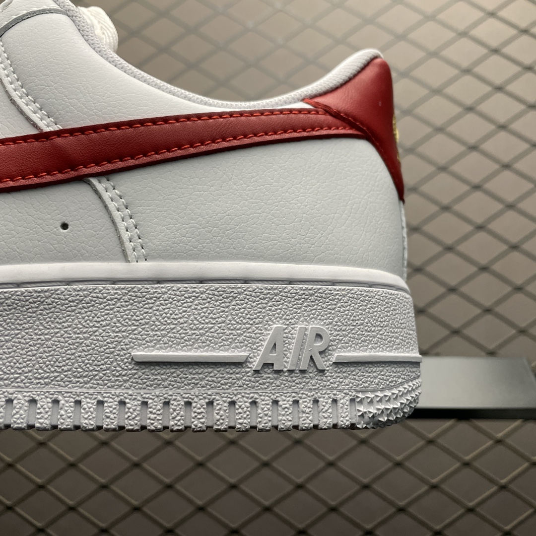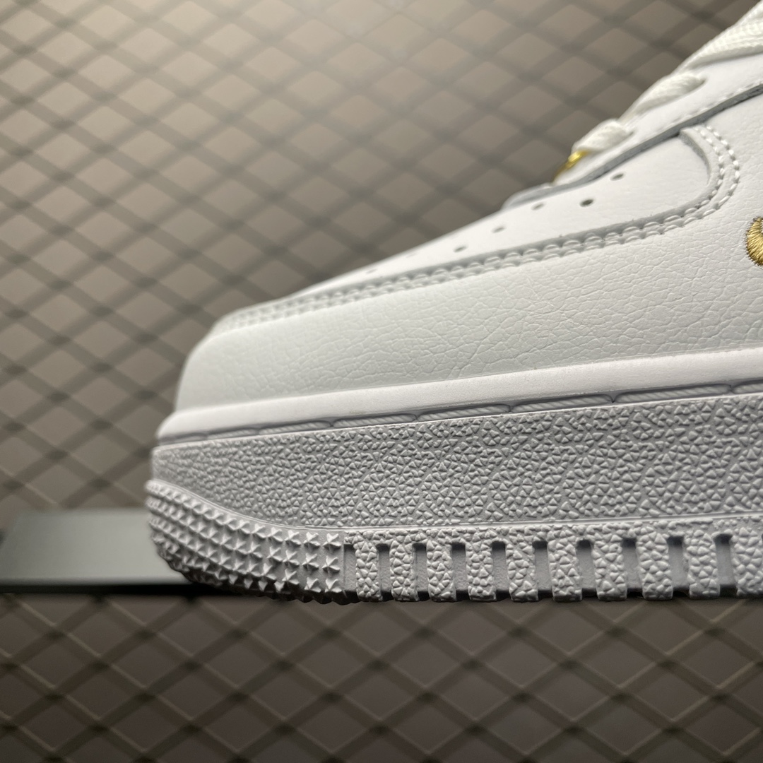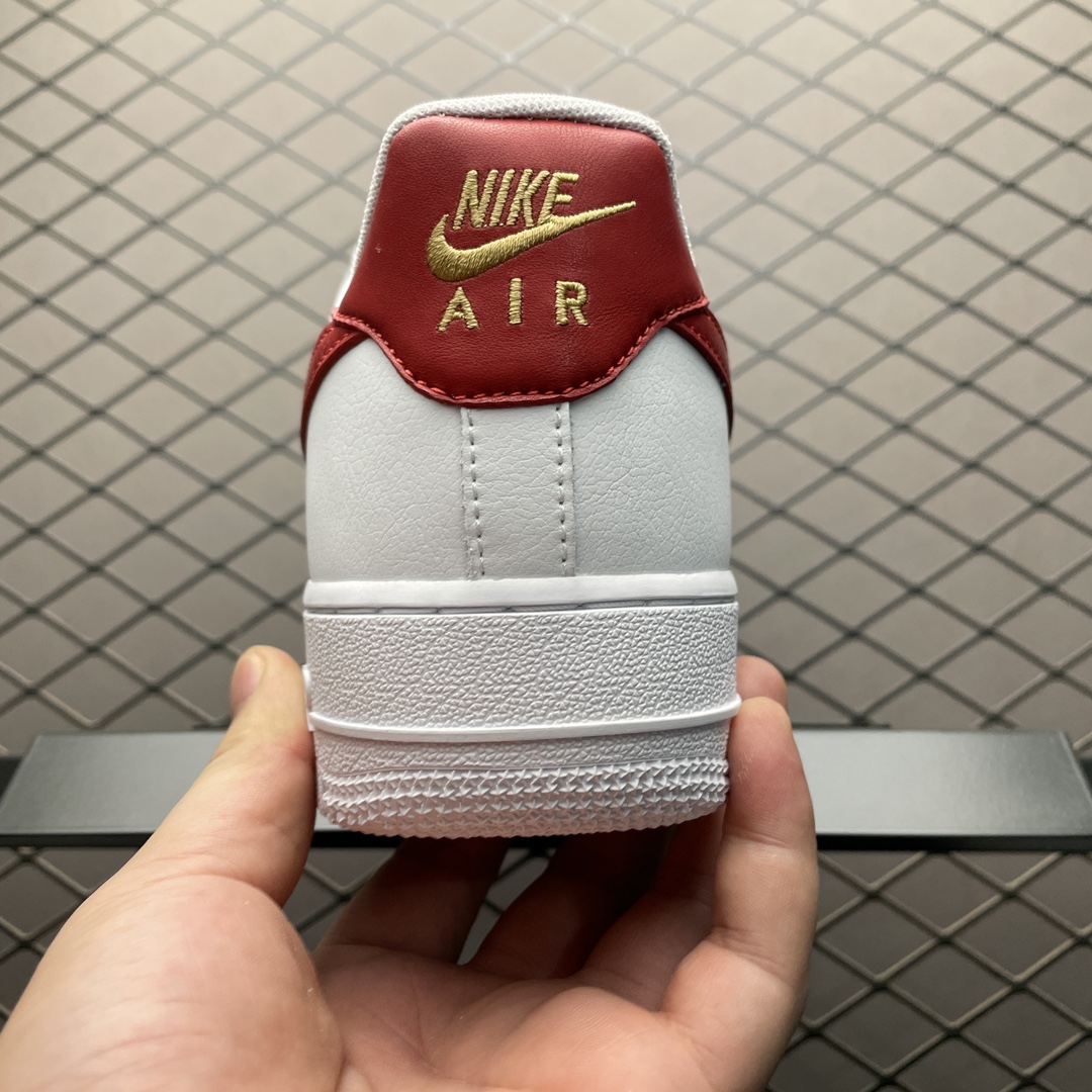 Les perforations sur le devant de la chaussure assurent une bonne ventilation, tandis que le col rembourré offre un soutien supplémentaire pour la cheville. Le logo Nike Air est visible sur le talon, affirmant l’identité de la marque et le lien avec la ligne Air Force 1.