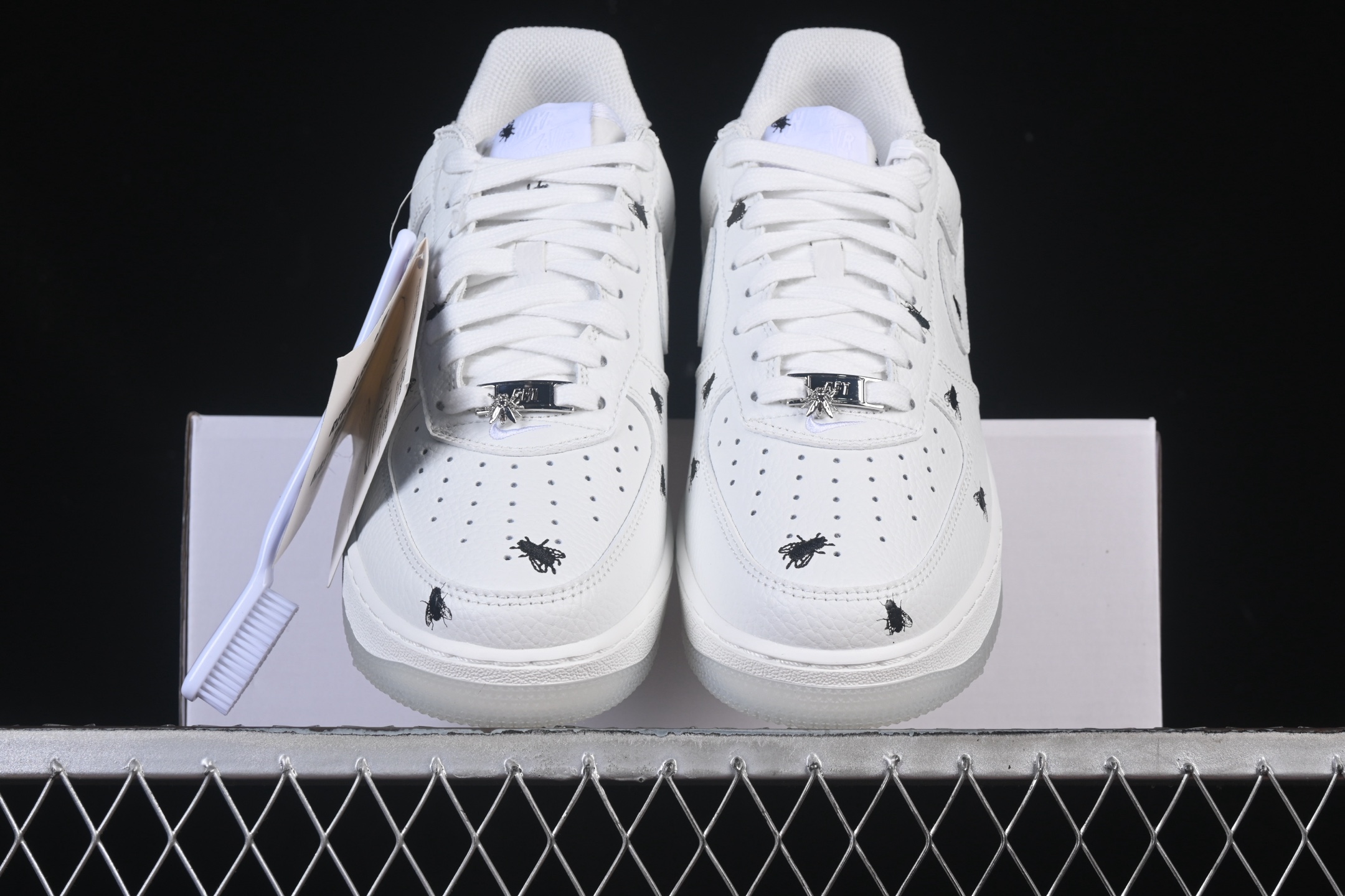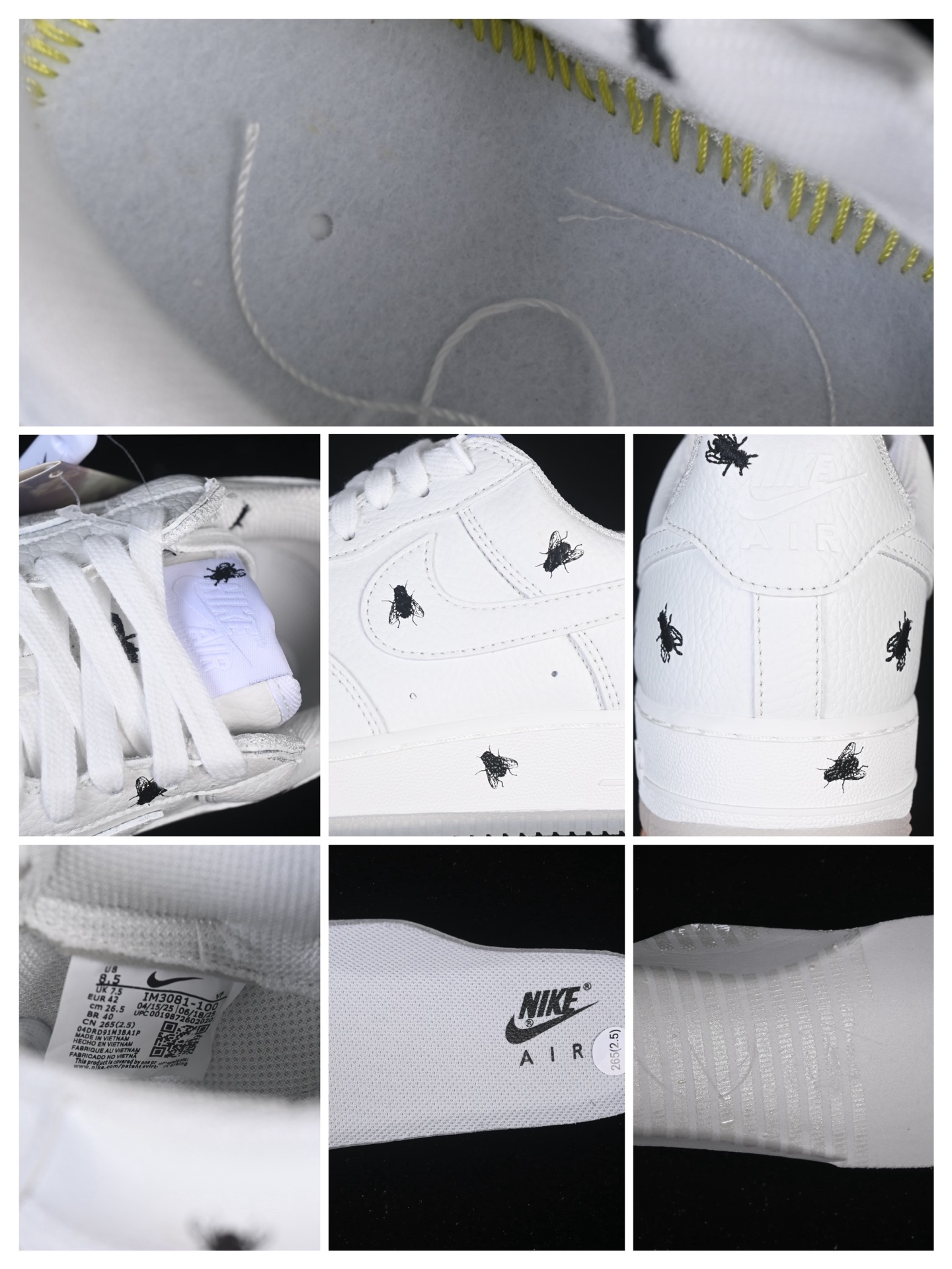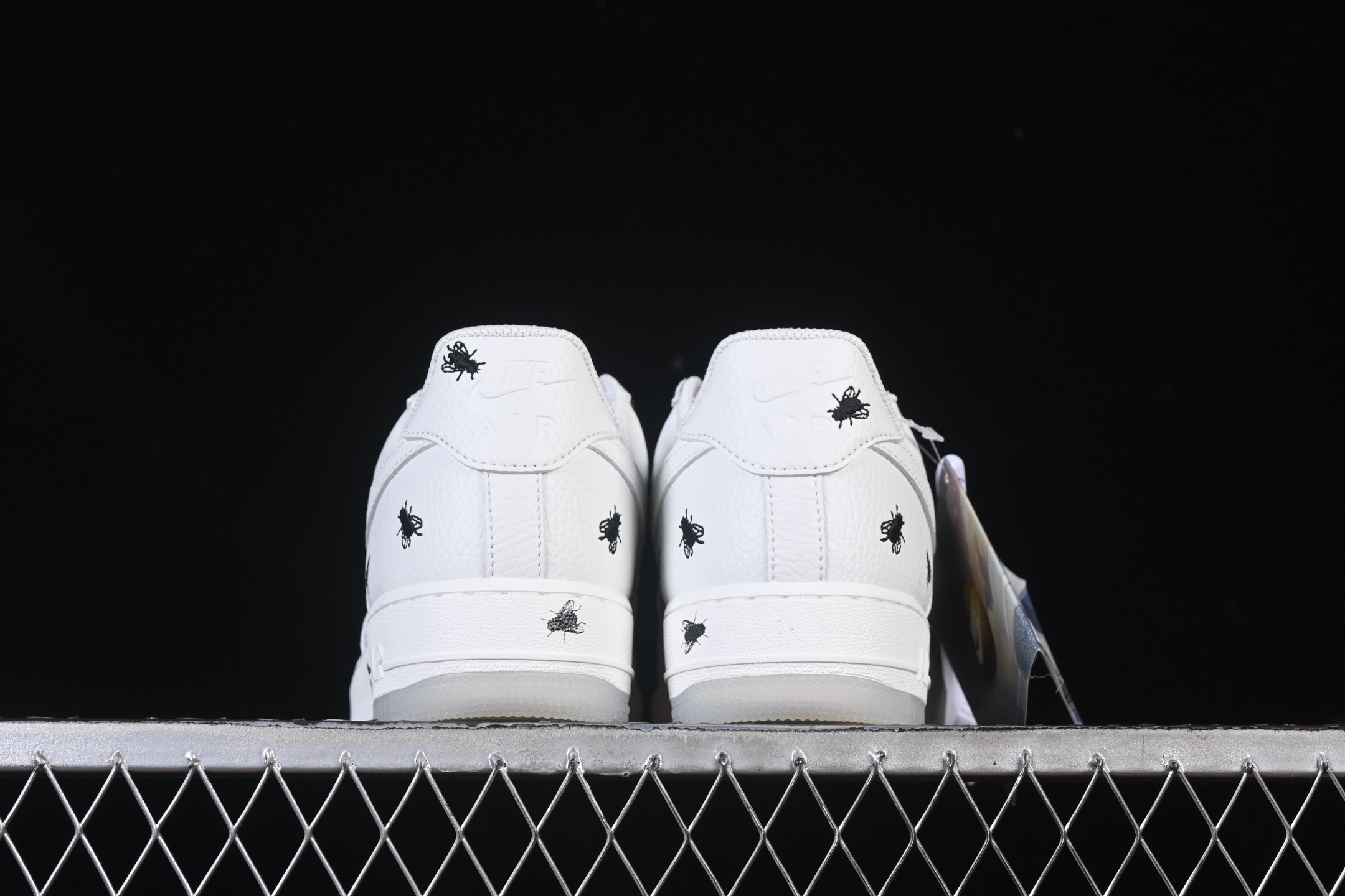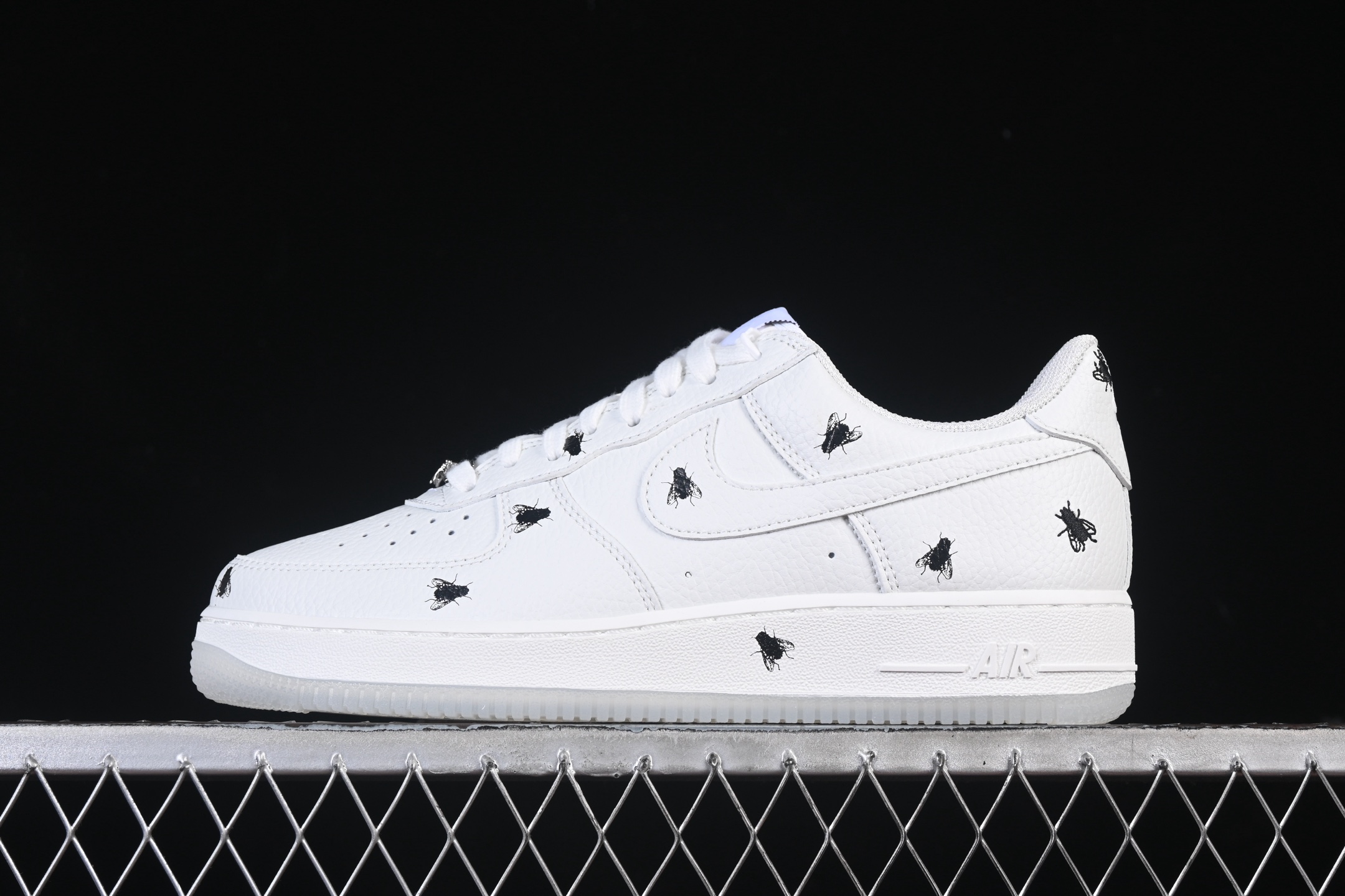 Mais ce qui distingue vraiment cette sneaker, ce sont les détails uniques qui font honneur à son nom. Les détails inspirés des mouches, comme les motifs d’oeil de mouche sur la languette et le swoosh en cuir verni qui rappelle les ailes d’insecte, donnent à cette chaussure une personnalité distincte.