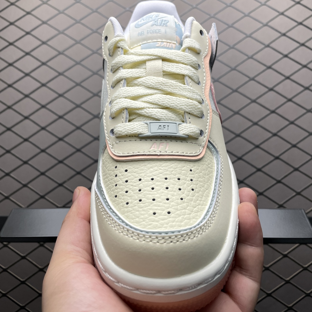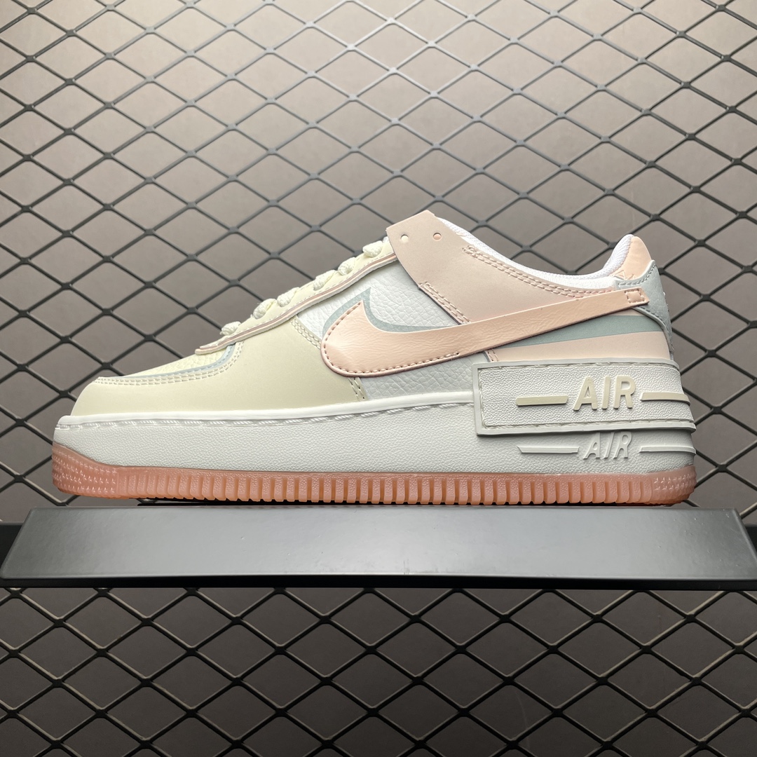 La Nike Air Force 1 Low Shadow Coconut Milk Crimson Tint DZ1847-105 est une version stylisée et contemporaine de la classique Air Force 1, conçue principalement pour un public féminin. Ce modèle se distingue par ses couleurs douces et ses détails multiples qui ajoutent une touche de modernité à la silhouette iconique.