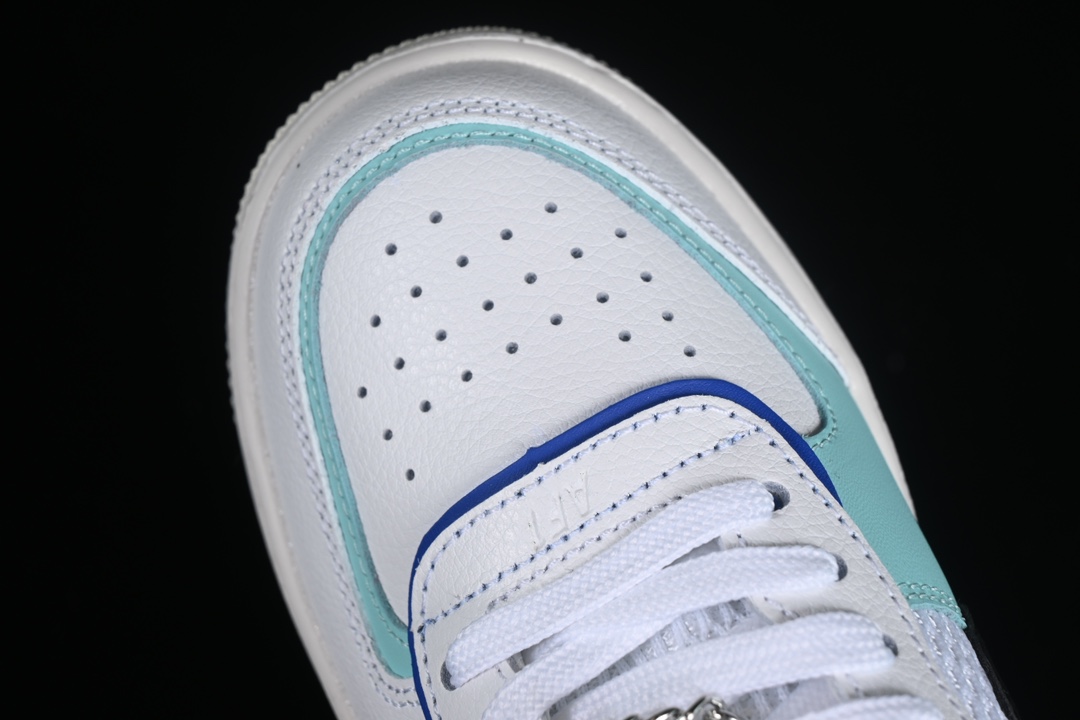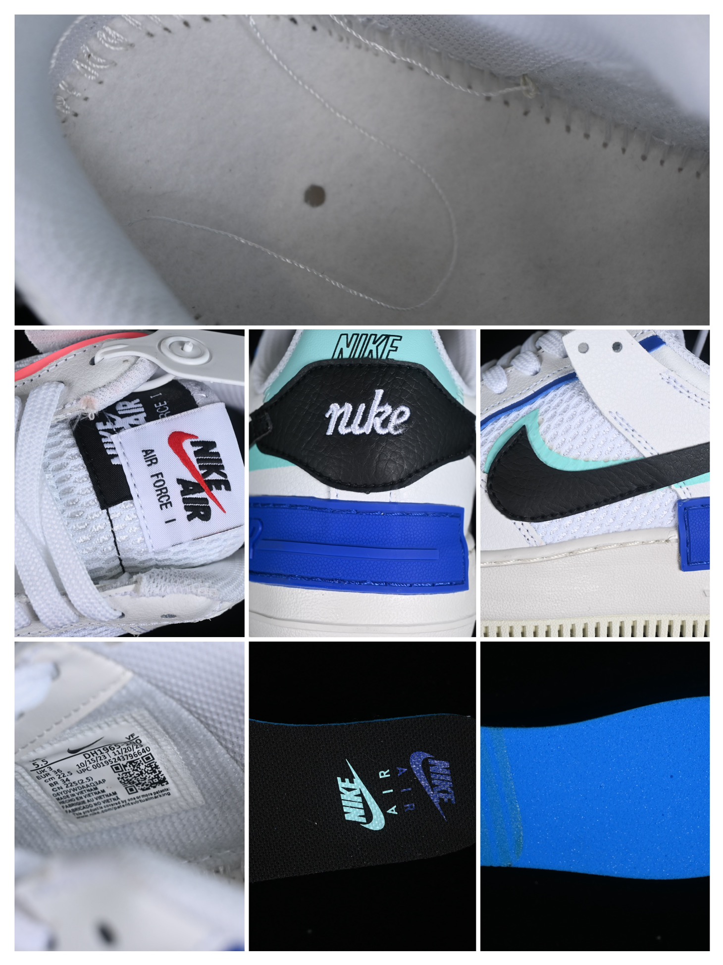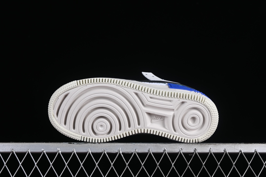 La Nike Air Force 1 Low Shadow White Blue Black DH1965-100 présente également un design unique avec des superpositions en cuir qui ajoutent une touche de sophistication. Les détails en bleu et noir apportent une touche de couleur subtile, ce qui en fait une chaussure polyvalente qui peut être portée avec n’importe quelle tenue.
