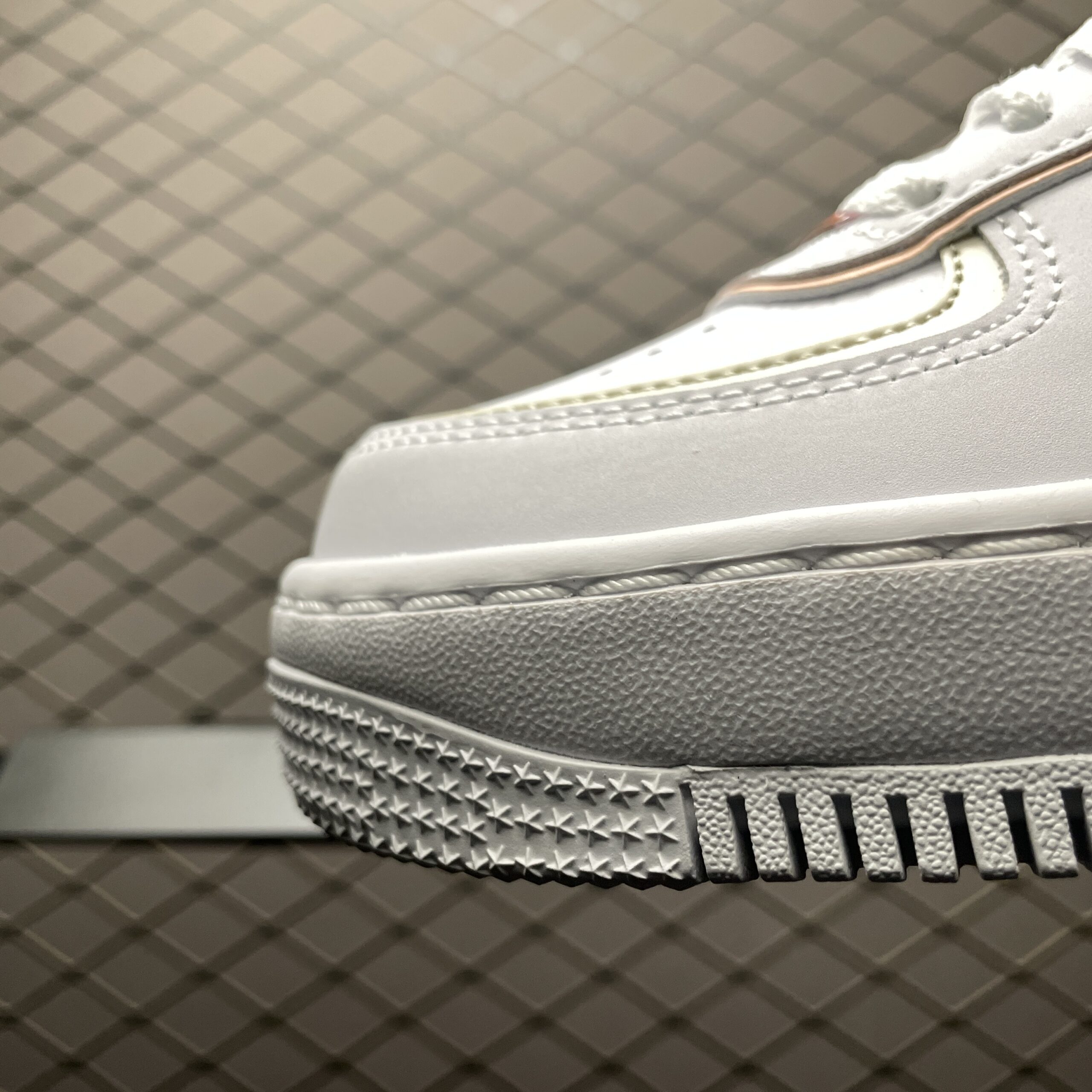 La Nike Air Force 1 Low Shadow White Light Orewood Brown Washed Coral CI0919-121 est une sneaker qui réinvente l’iconique modèle Air Force 1 avec une touche moderne et audacieuse. Cette version « Shadow » se distingue par son design multicouche qui ajoute de la profondeur et du caractère à la silhouette classique.