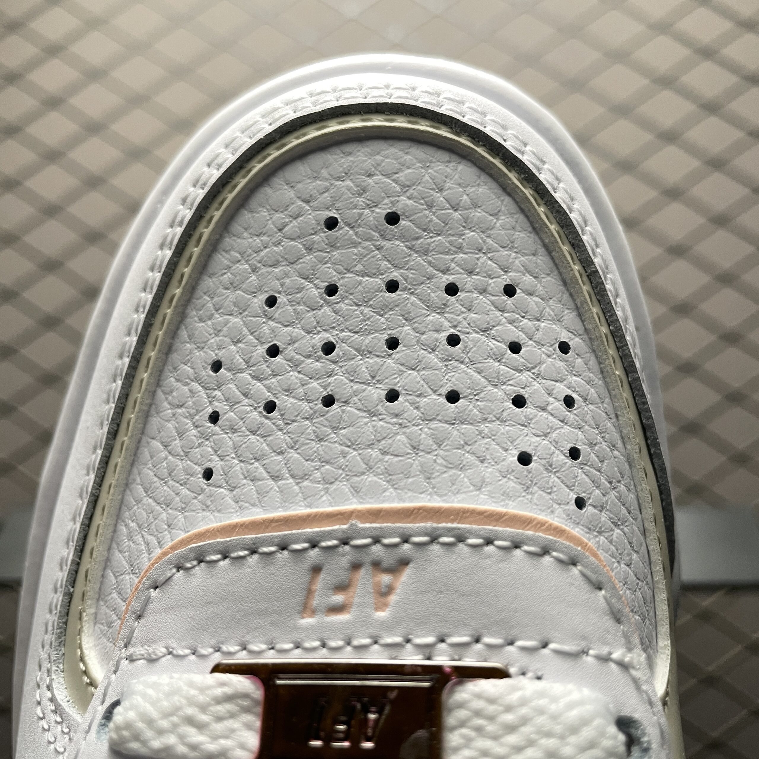 La chaussure conserve les caractéristiques emblématiques de l’Air Force 1, telles que la semelle intermédiaire épaisse et la semelle extérieure en caoutchouc, qui assurent un confort optimal et une adhérence durable. Le logo Swoosh, doublé pour un effet d’ombre, renforce l’esthétique unique de cette version.