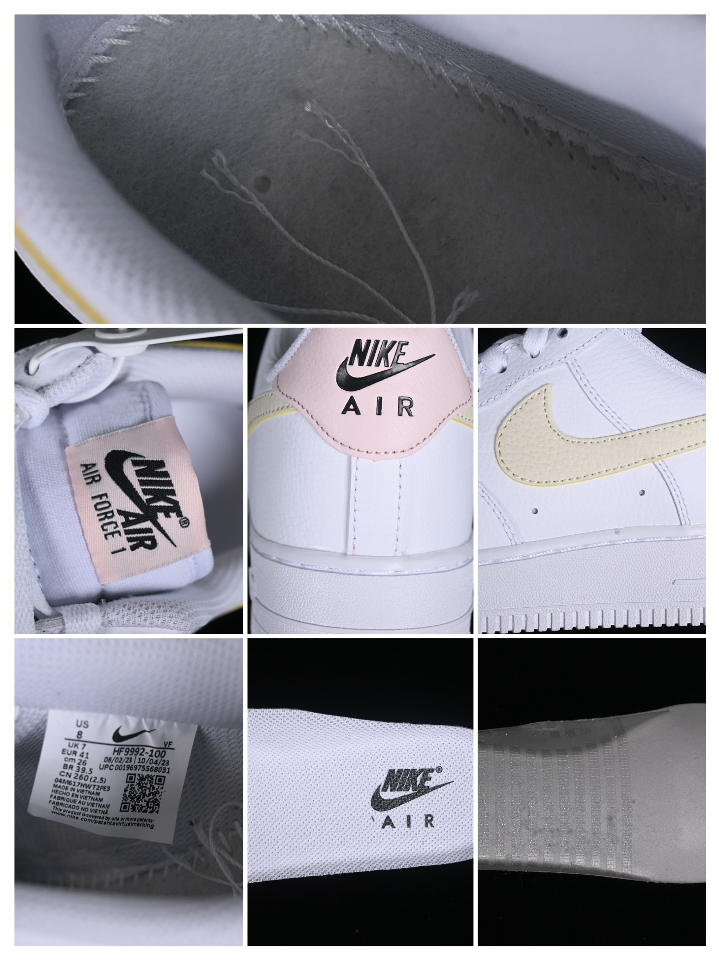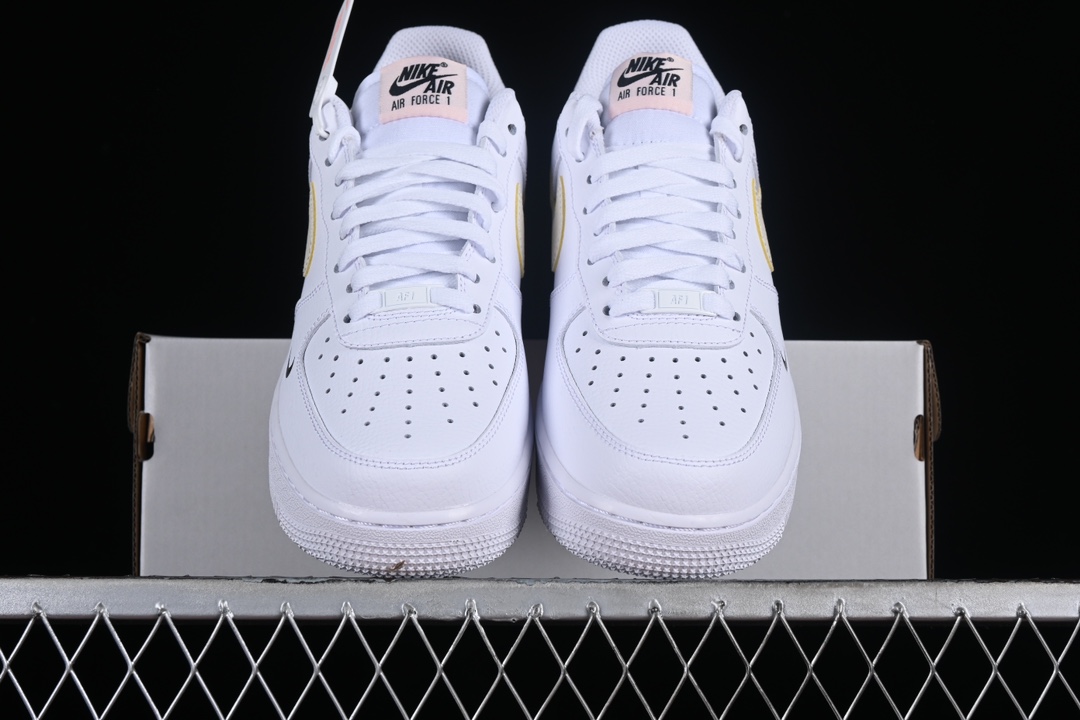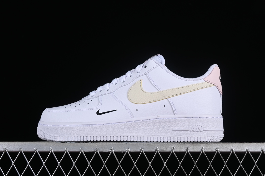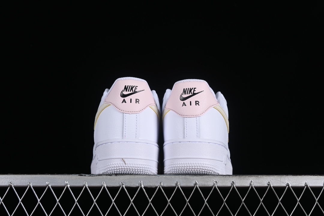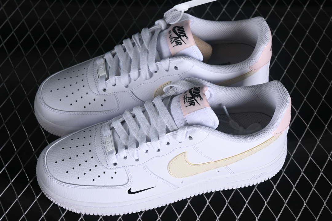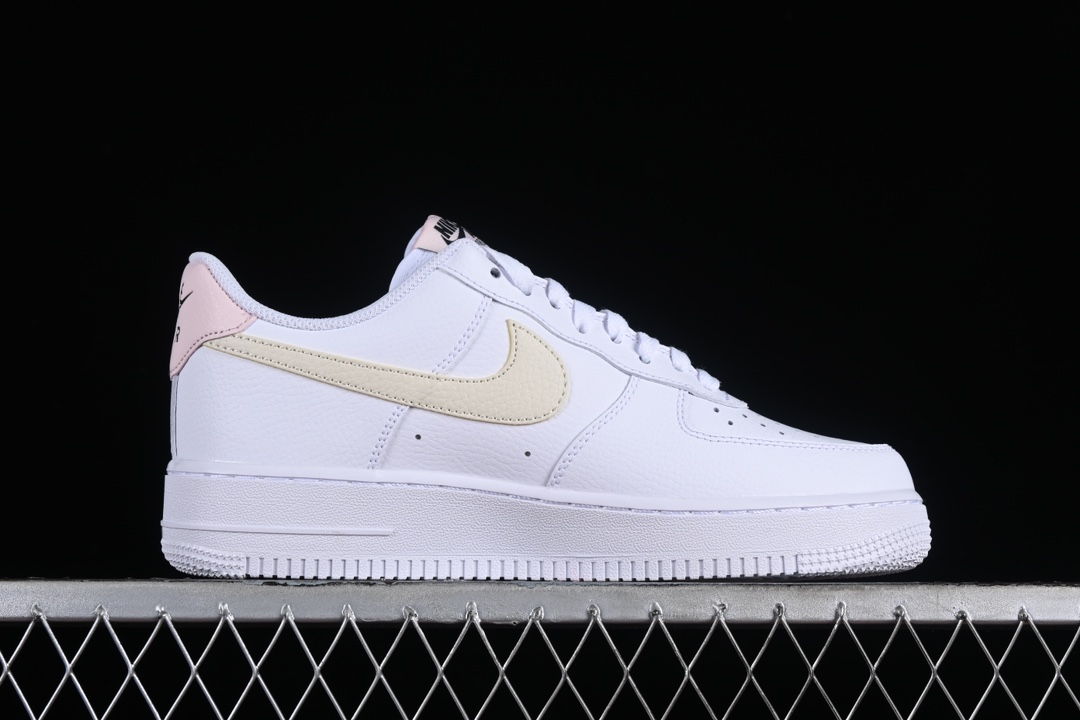 – **Détails**: Le logo Swoosh de Nike apparaît sur les côtés dans une couleur rose contrastante, tandis que le nom « AIR » est gravé sur la semelle intermédiaire, fidèle à l’héritage de la ligne Air Force 1. Des perforations sur le devant de la chaussure garantissent une bonne ventilation, améliorant ainsi le confort.