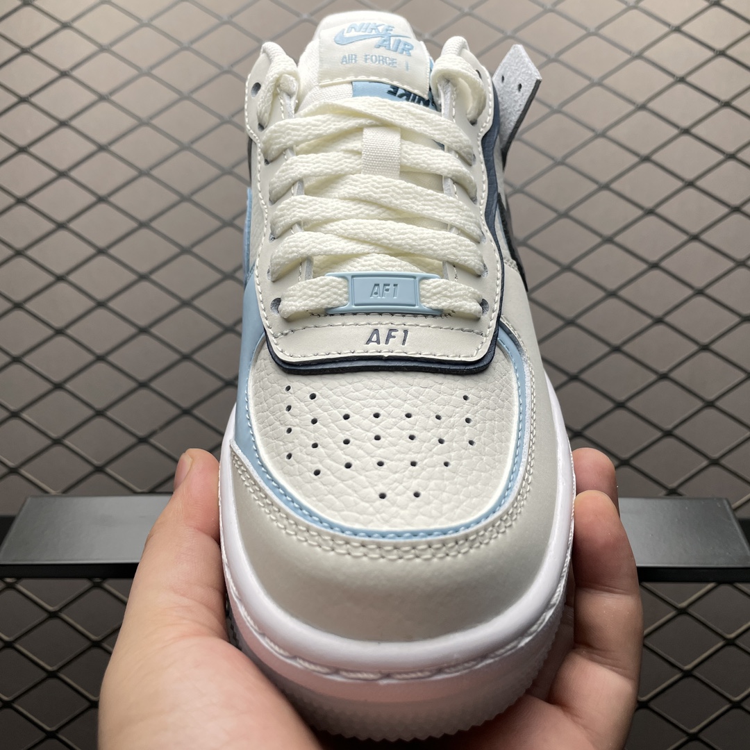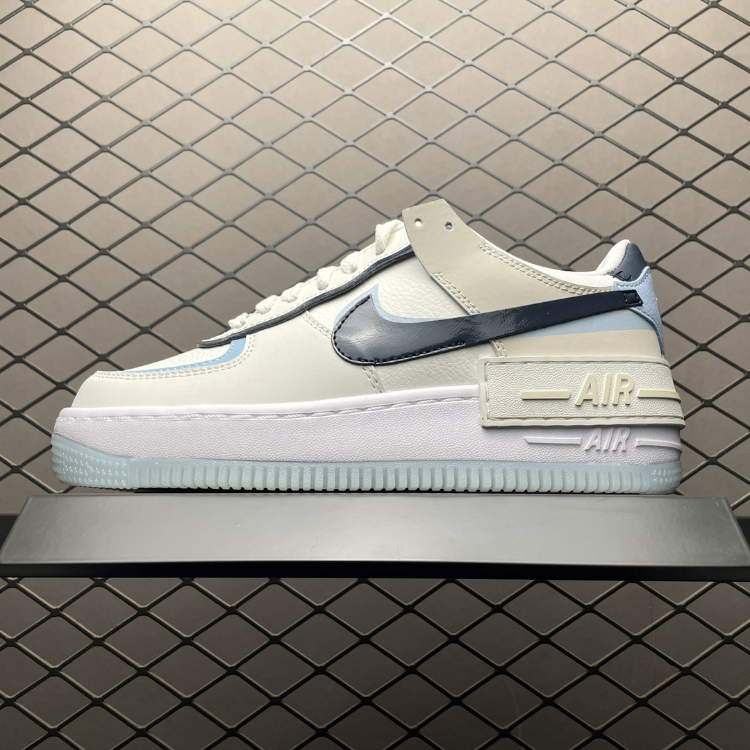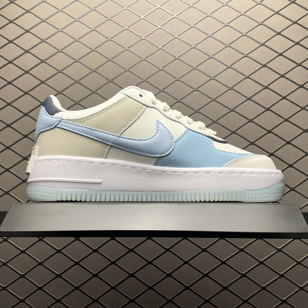 En résumé, la Nike Air Force 1 Shadow Glacier Blue DZ1847-107 est une sneaker stylée et fonctionnelle, conçue pour celles qui recherchent à la fois confort et style dans leur garde-robe quotidienne.