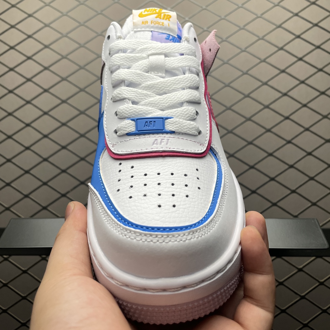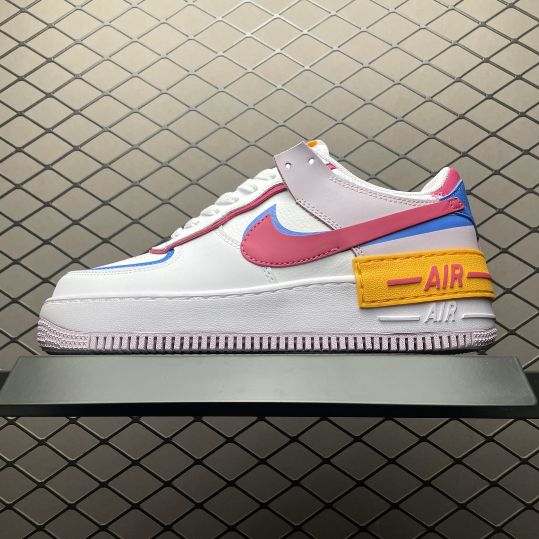 La Nike Air Force 1 Shadow « 90s Multicolor » HF5064-100 est une sneaker pour femmes qui revisite le design classique de la Air Force 1 avec une touche moderne et dynamique. Ce modèle se distingue par son esthétique audacieuse et colorée, inspirée des années 90.