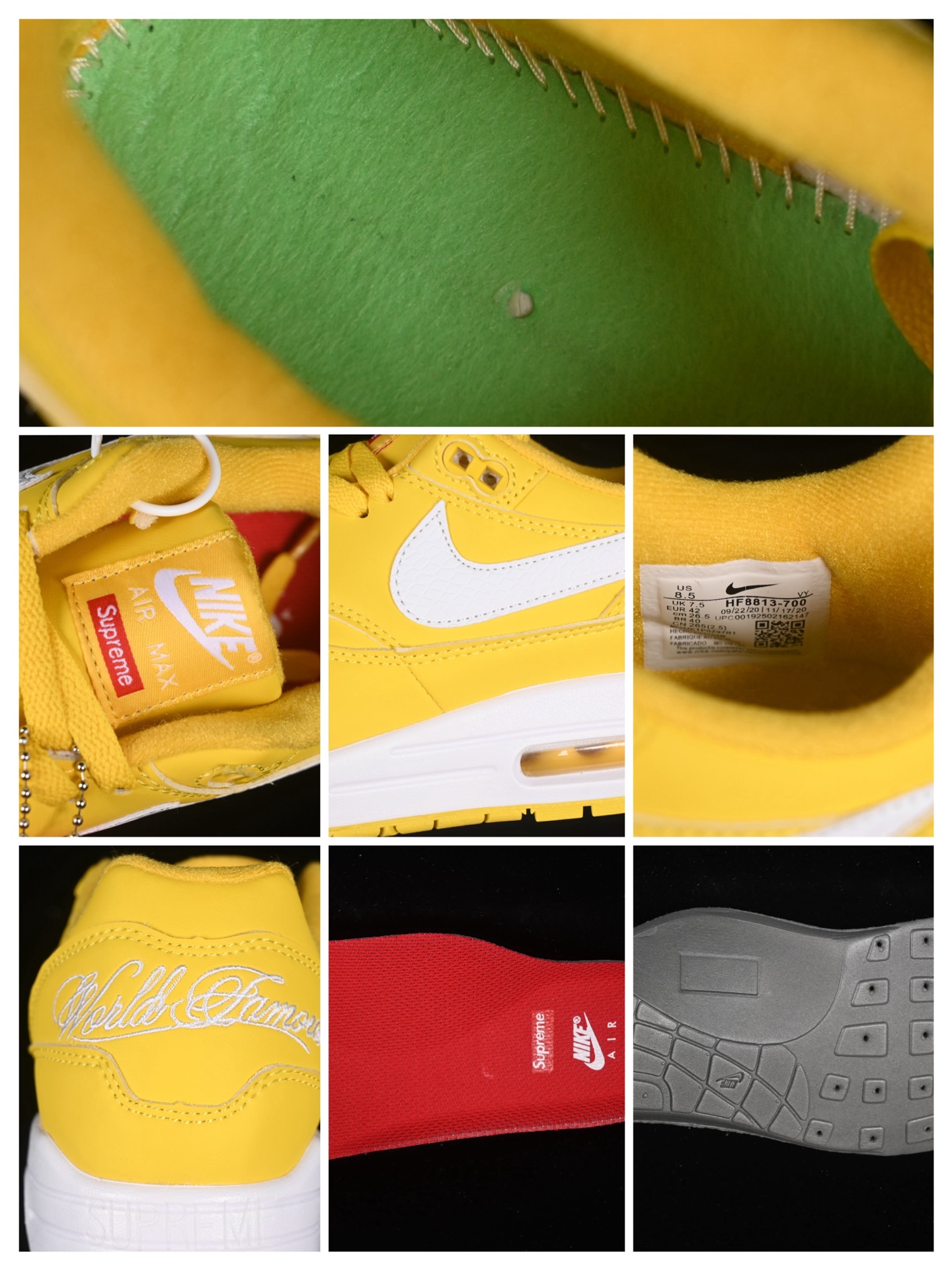 En résumé, la Nike Air Max 1 ’87 SP Supreme Speed Yellow HF8813-700 est une fusion parfaite de style, de performance et d’innovation, idéale pour les amateurs de sneakers et les collectionneurs à la recherche d’une pièce unique et audacieuse.