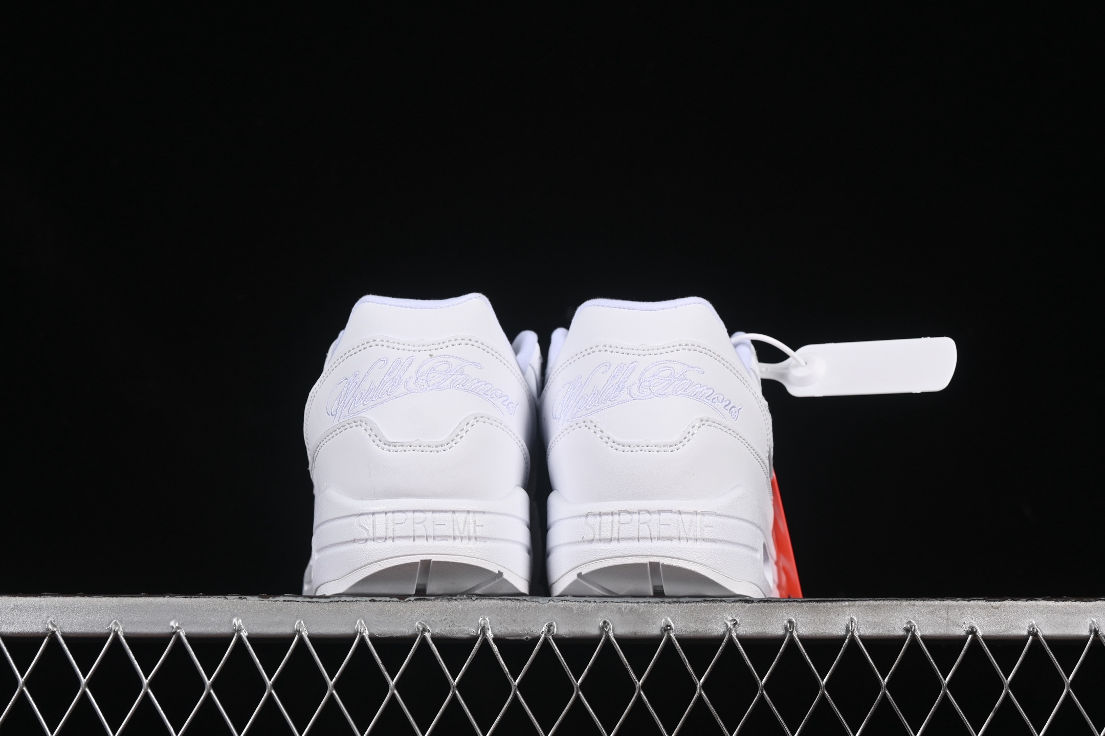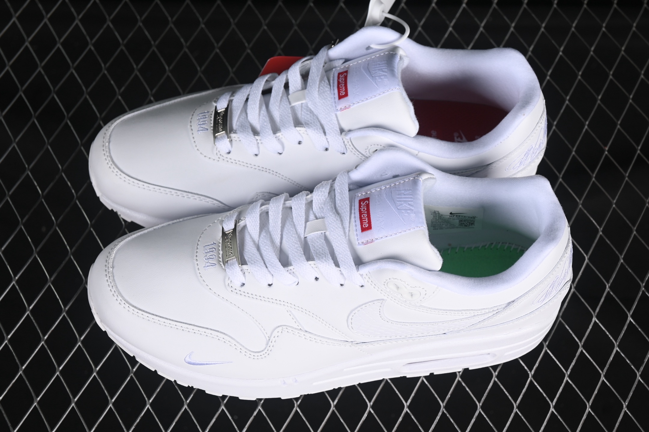 Les détails soignés, tels que les lacets ton sur ton et les finitions impeccables, complètent le design raffiné de cette chaussure. La Nike Air Max 1 ’87 SP Supreme Triple White est idéale pour ceux qui recherchent une paire de sneakers polyvalente, capable de s’adapter à toutes les tenues, tout en affirmant un style unique et sophistiqué.
