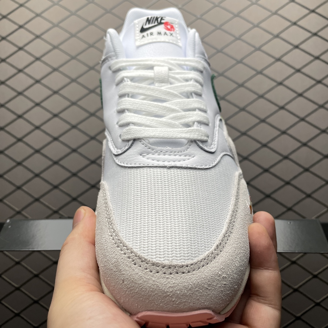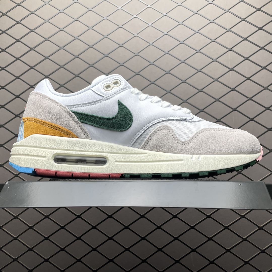 La Nike Air Max 1 « All Petals United » White/Fir-Light Bone FQ0256-131 est une chaussure de sport pour homme de la marque Nike. Elle présente une combinaison de couleurs blanche, verte et beige clair. La tige de la chaussure est principalement blanche, avec des accents de vert et de beige clair sur les côtés et à l’arrière. La semelle intermédiaire est blanche avec des détails verts et beige clair, tandis que la semelle extérieure est en caoutchouc pour une adhérence optimale. Cette chaussure est dotée de la technologie Air Max de Nike, qui offre un amorti et un confort exceptionnels. Elle est idéale pour la pratique du sport ou pour une utilisation quotidienne décontractée.