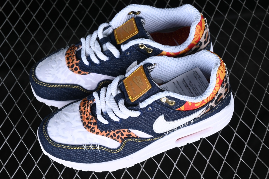 Le design de la Nike Air Max 1 Premium Denim Leopard FJ4452-432 est inspiré du léopard, avec des motifs imprimés sur le talon et la languette de la chaussure. Elle est également équipée d’un système de laçage traditionnel qui permet un ajustement parfait pour un confort optimal.
