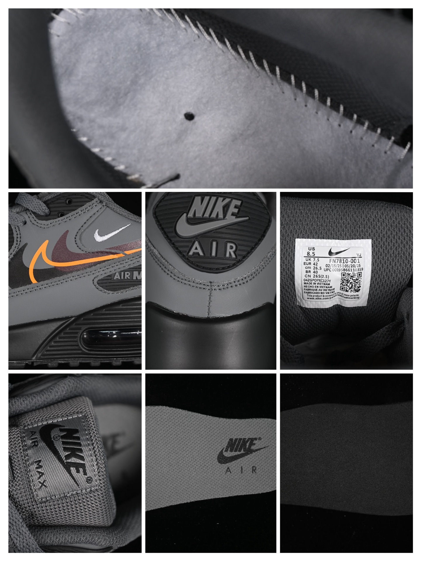 Les détails supplémentaires incluent des œillets en TPU, des lacets ton sur ton, et un col rembourré pour un ajustement confortable autour de la cheville. La Nike Air Max 90 Multi Swoosh Smoke Grey Mandarin FN7810-001 est une fusion parfaite entre héritage et innovation, idéale pour ceux qui souhaitent se démarquer avec une paire de sneakers à la fois tendance et fonctionnelle.