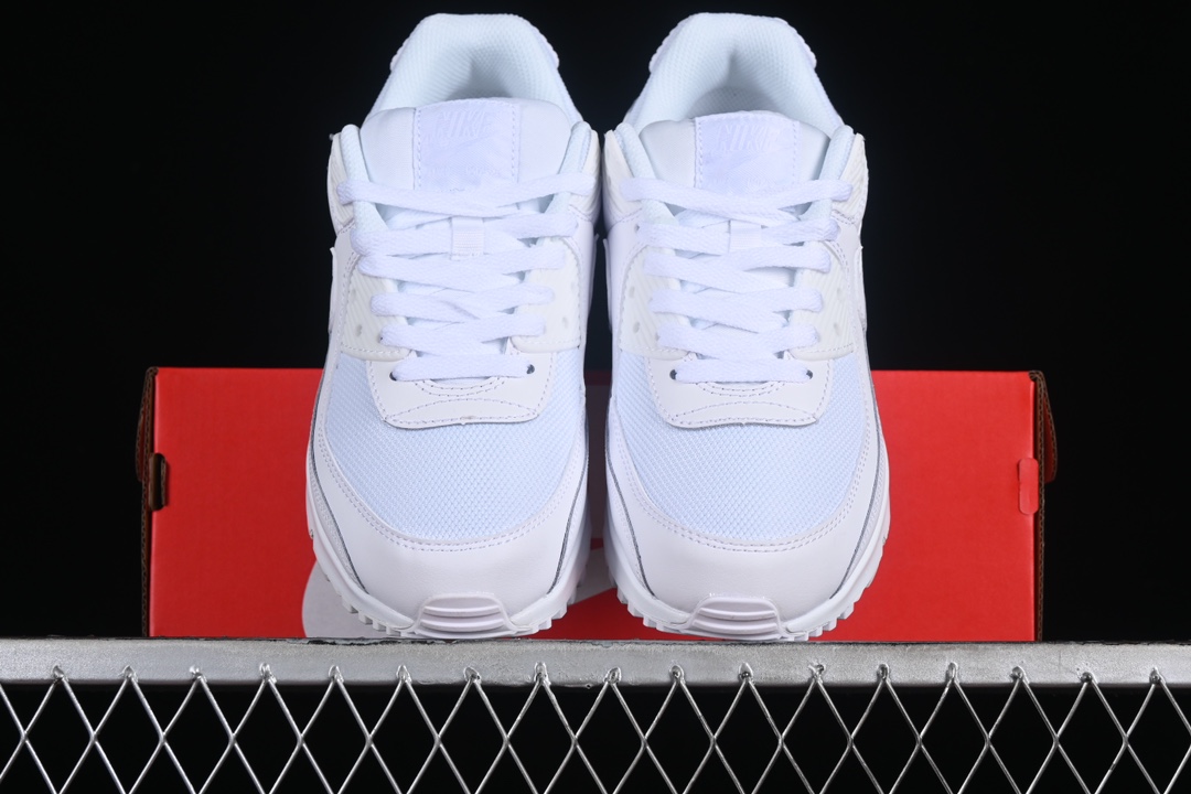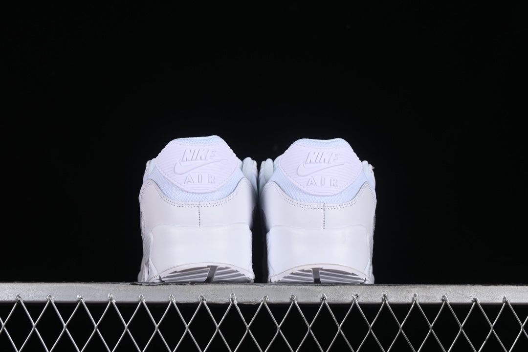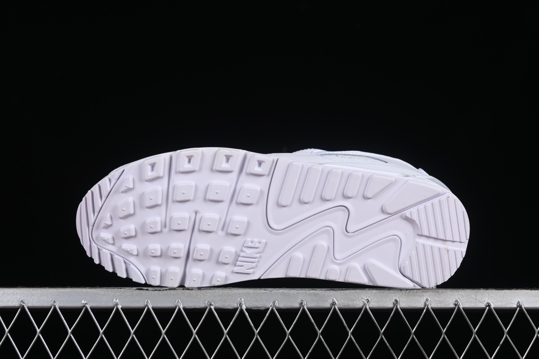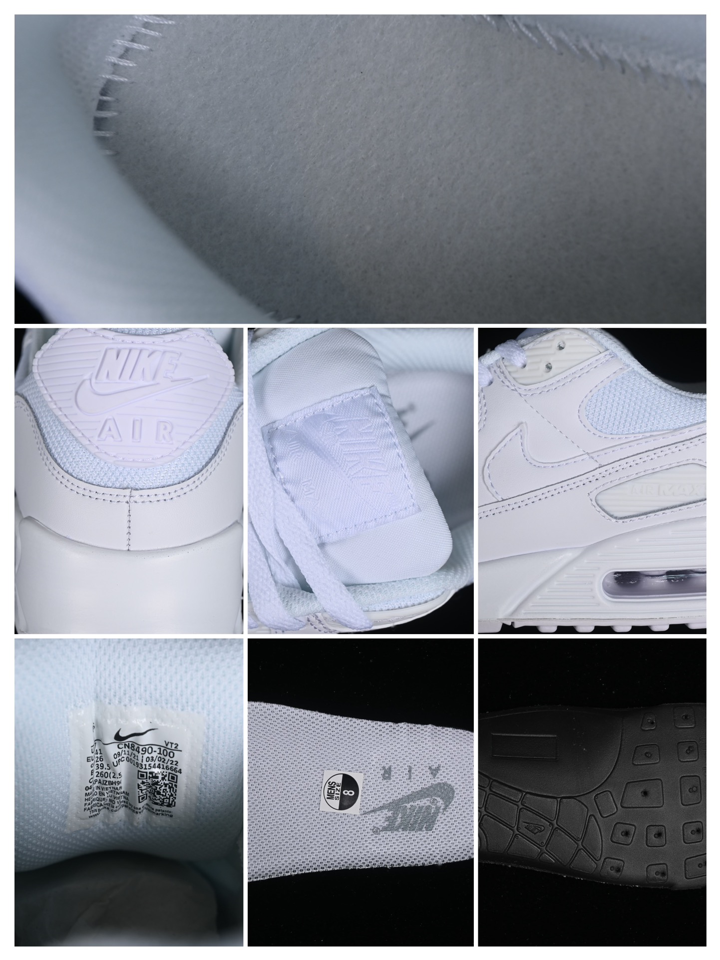 En termes de design, la Nike Air Max 90 Recraft Triple White présente des lignes épurées et un profil bas qui complètent son look minimaliste. Les détails incluent des lacets ton sur ton, une étiquette de langue avec le logo Nike, et des accents de marque sur le côté et au talon.